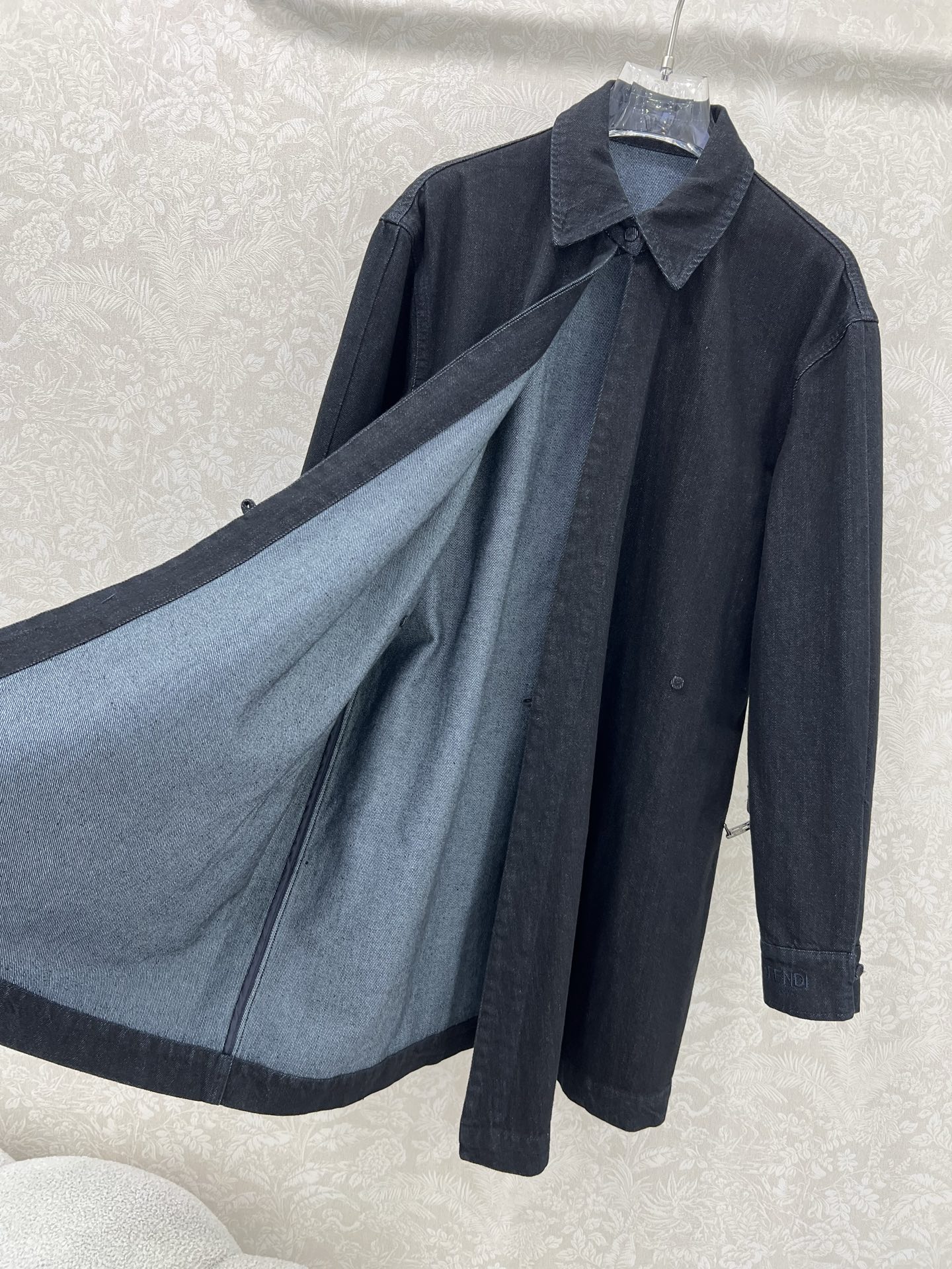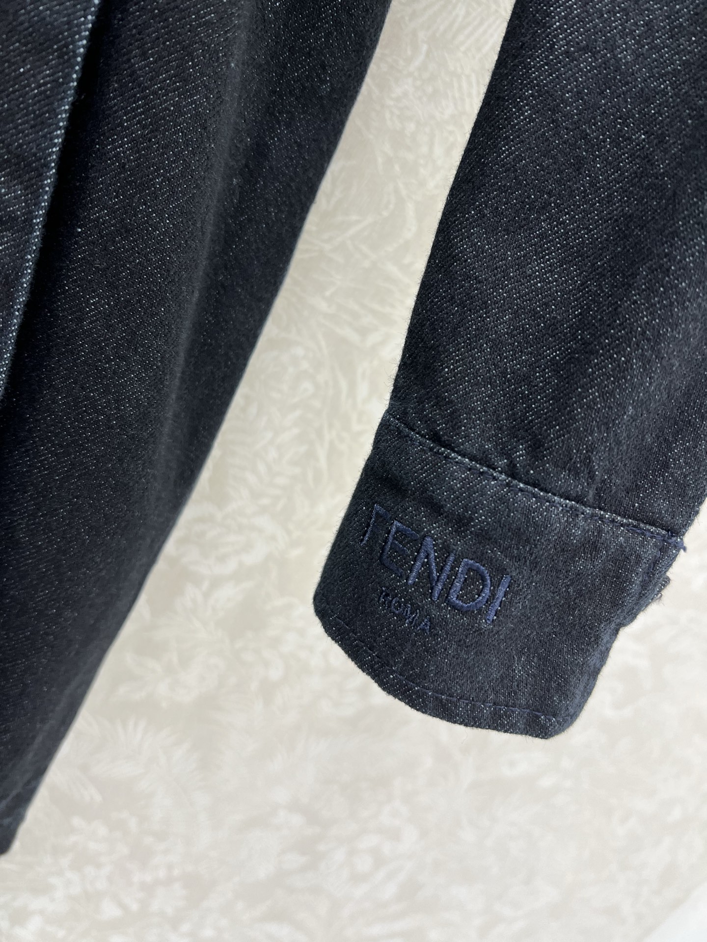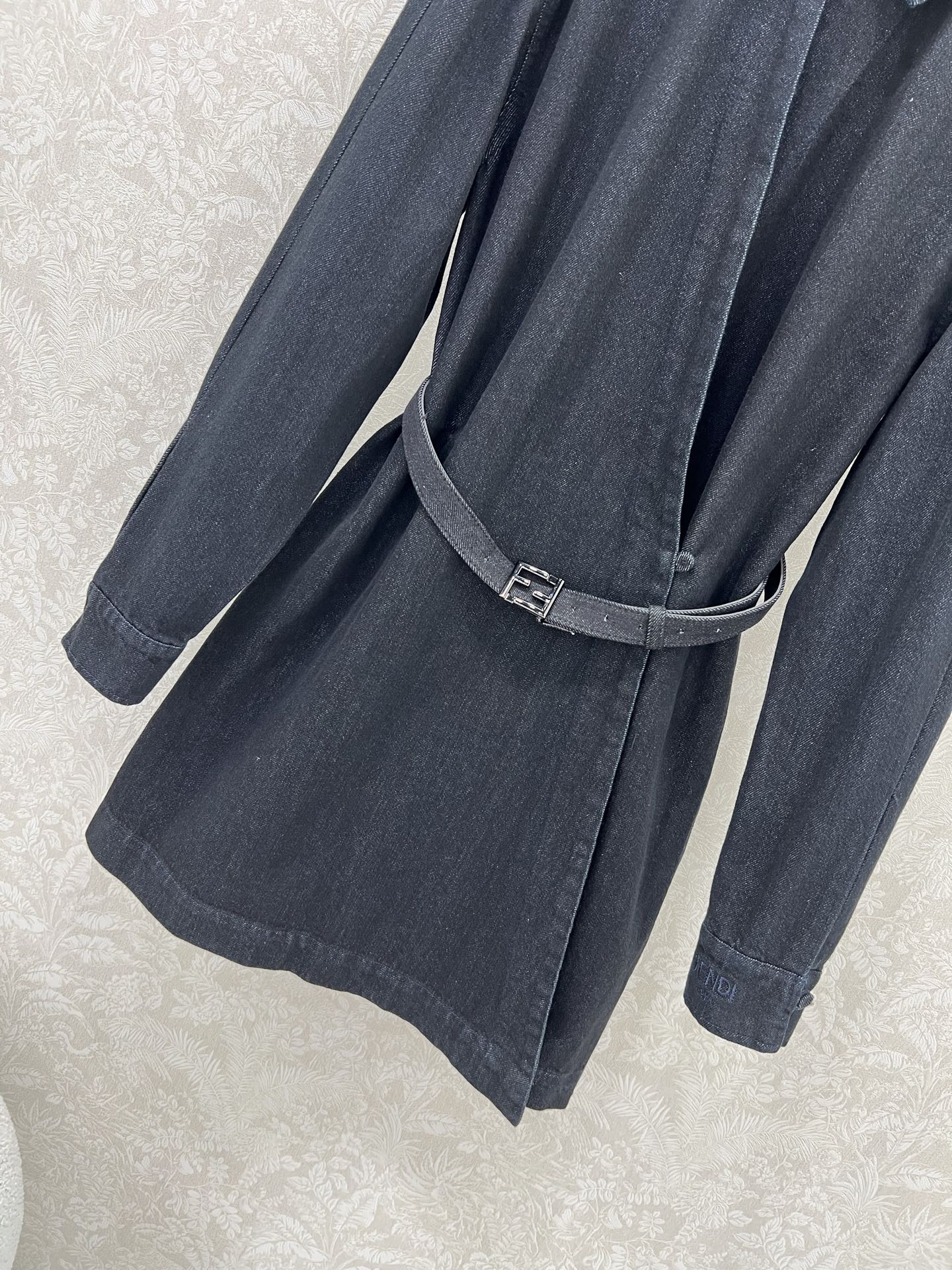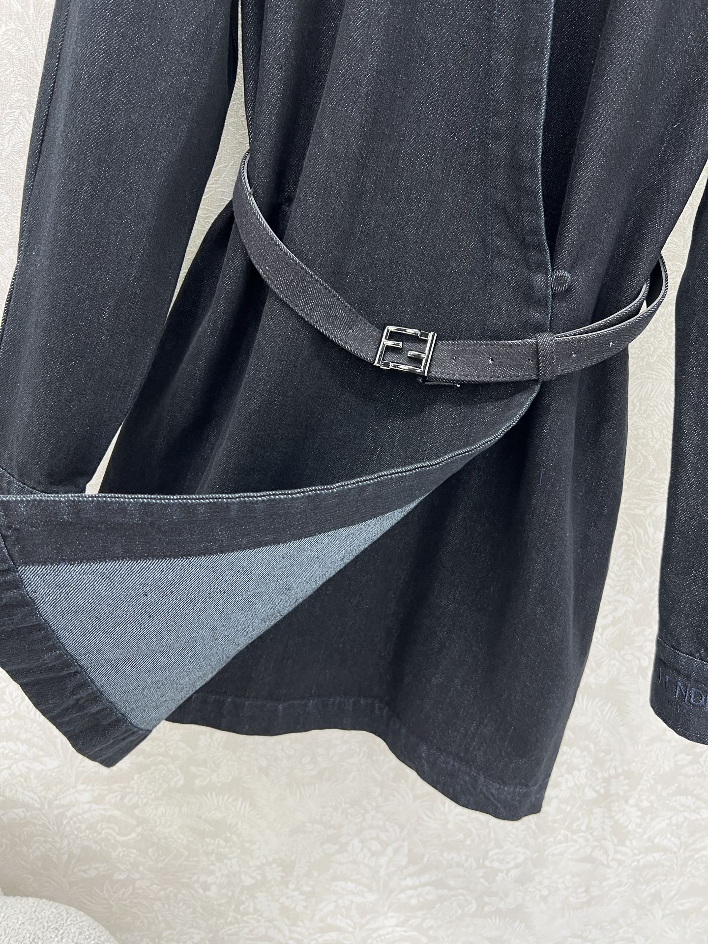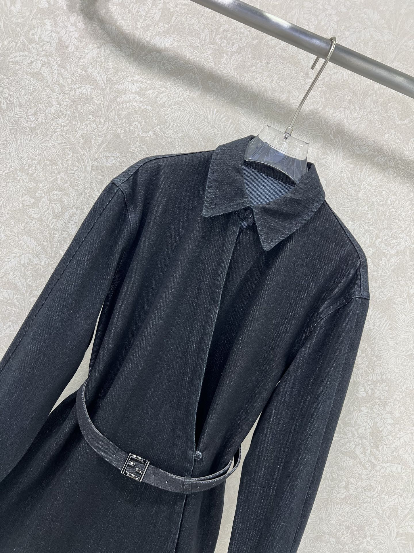 Details: Vintage collar denim shirt dress with a double F belt. Soft, comfortable, and high-end custom-made with exquisite craftsmanship, maintaining original quality.