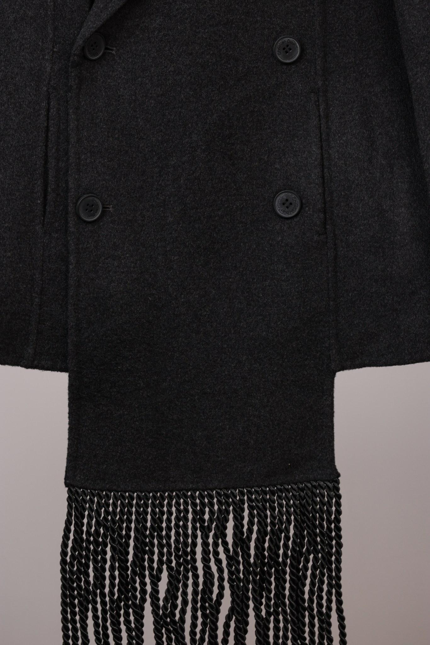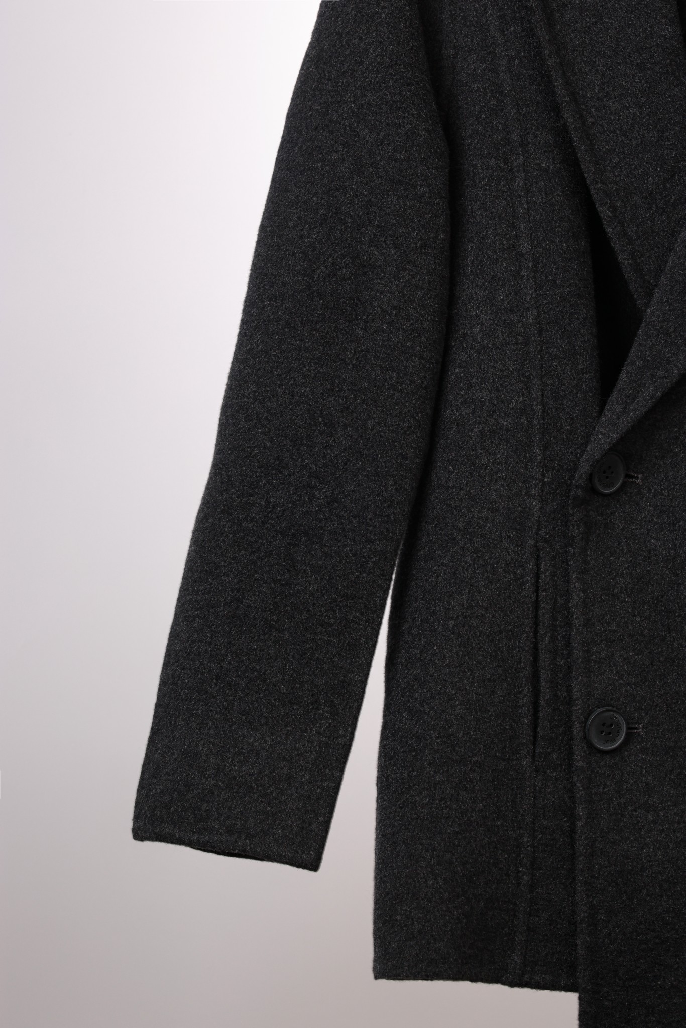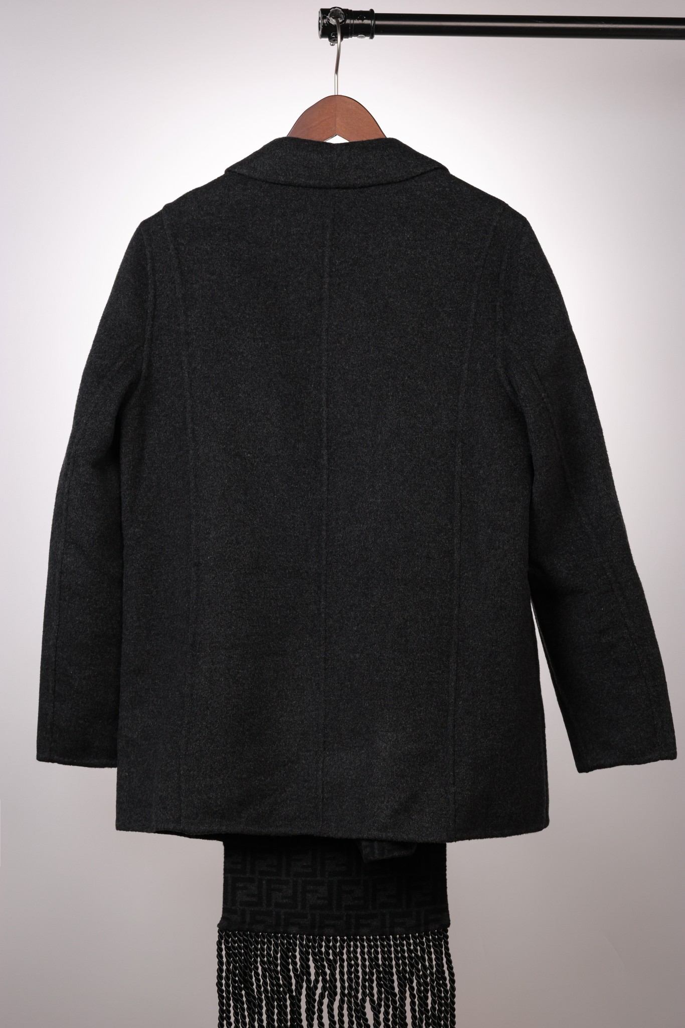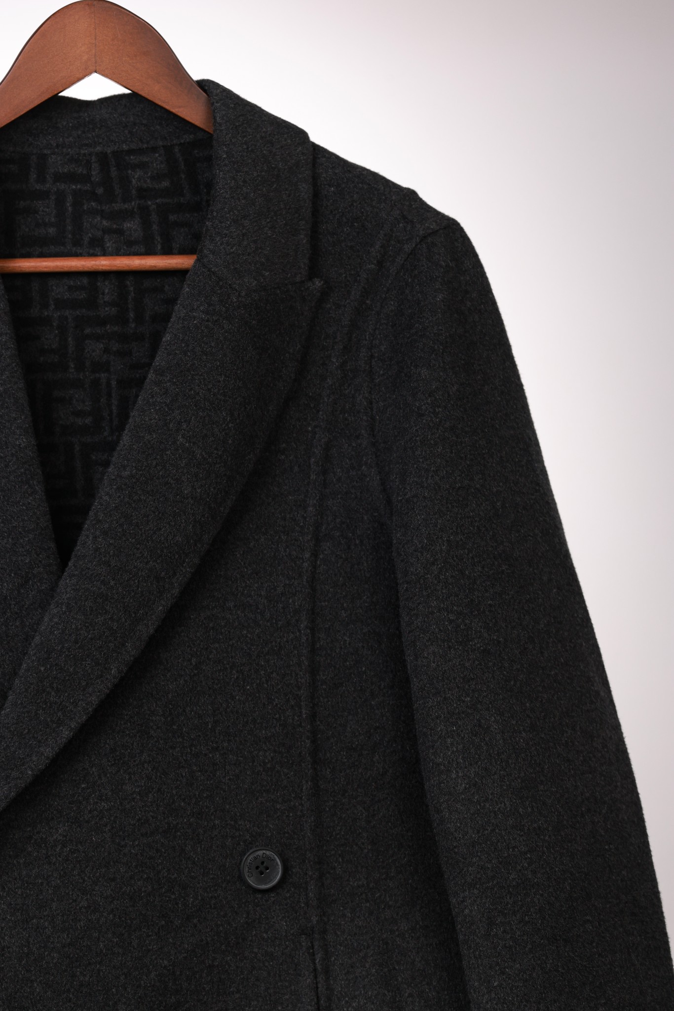 Details: Short dark grey jacquard coat, 30% cashmere, 70% wool, sizes S - L, color: dark grey. High-end customization with fine workmanship