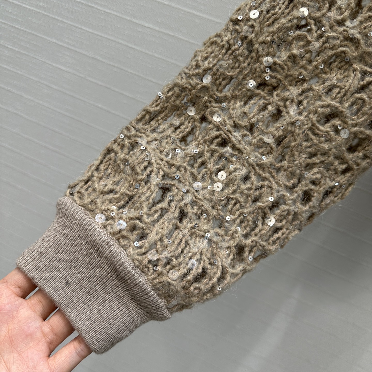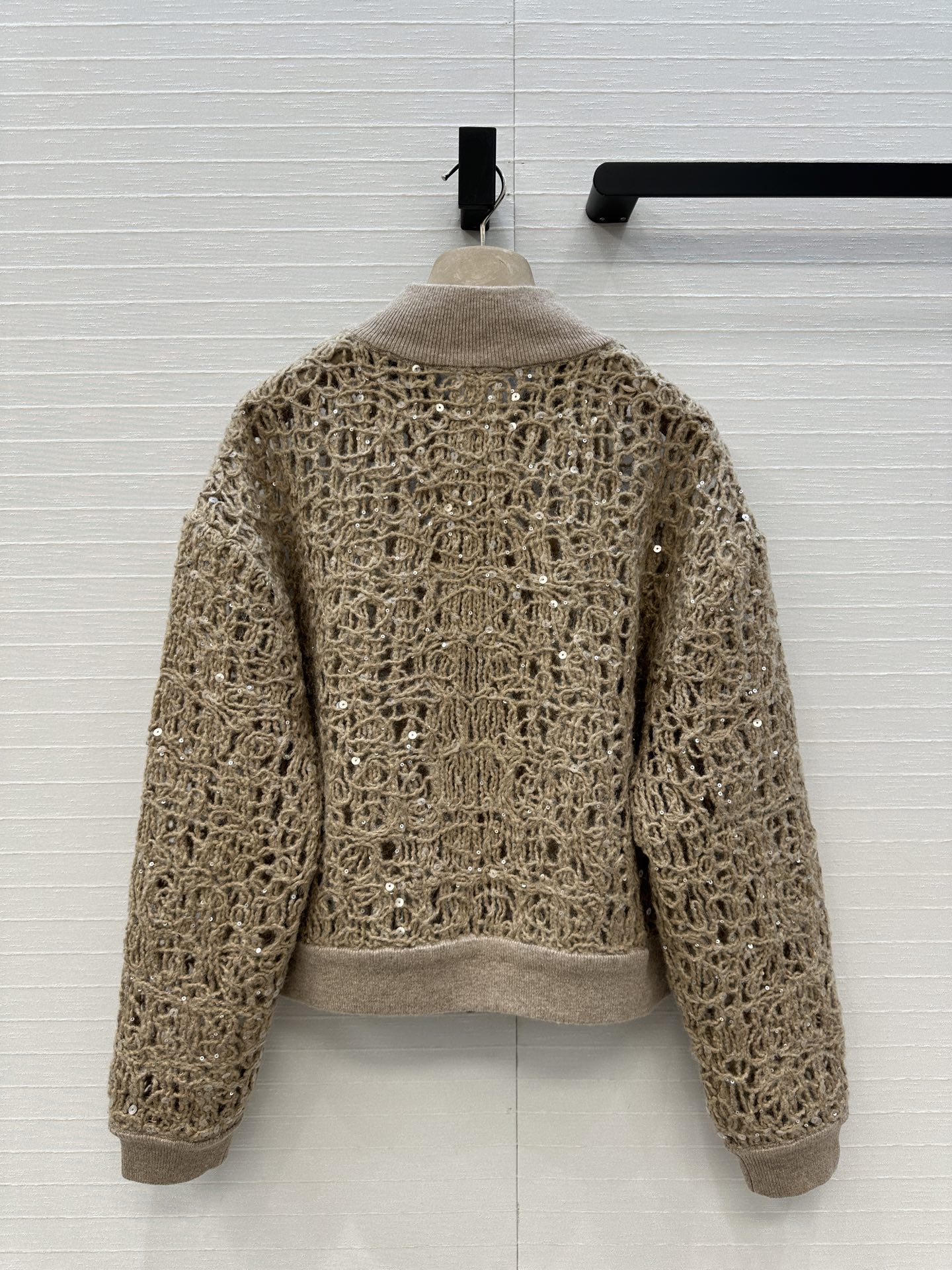 Details: Exclusive high-end cashmere baseball cardigan, multi-yarn, embroidery, hollow-out, elegant and slimming. High-end customization, fine workmanship