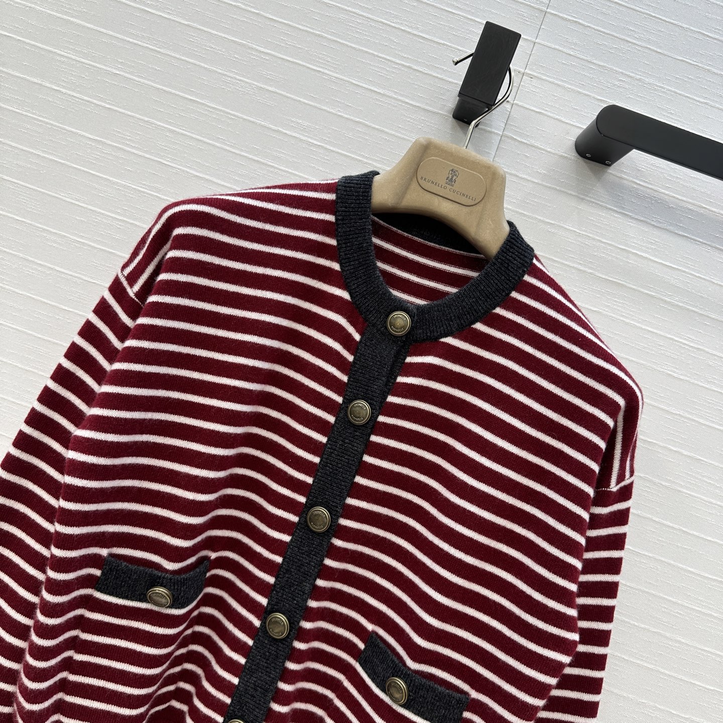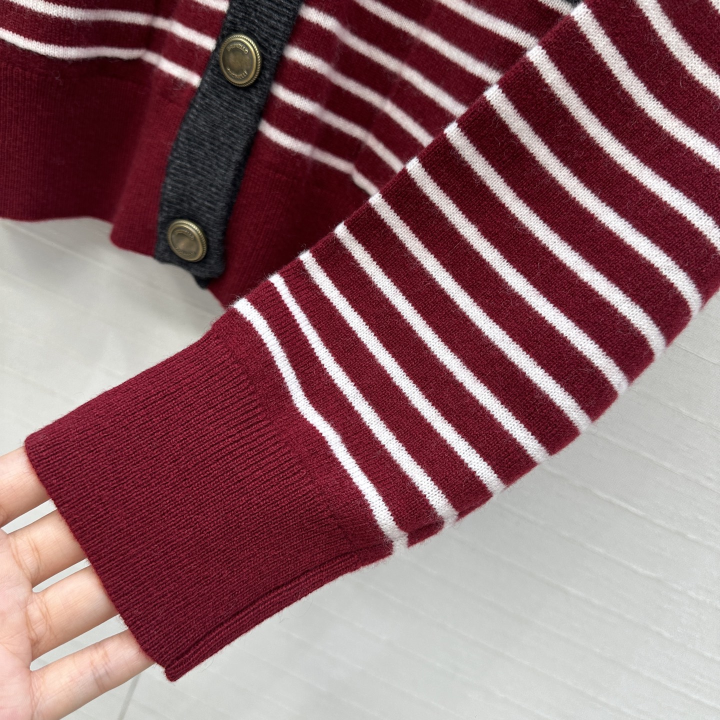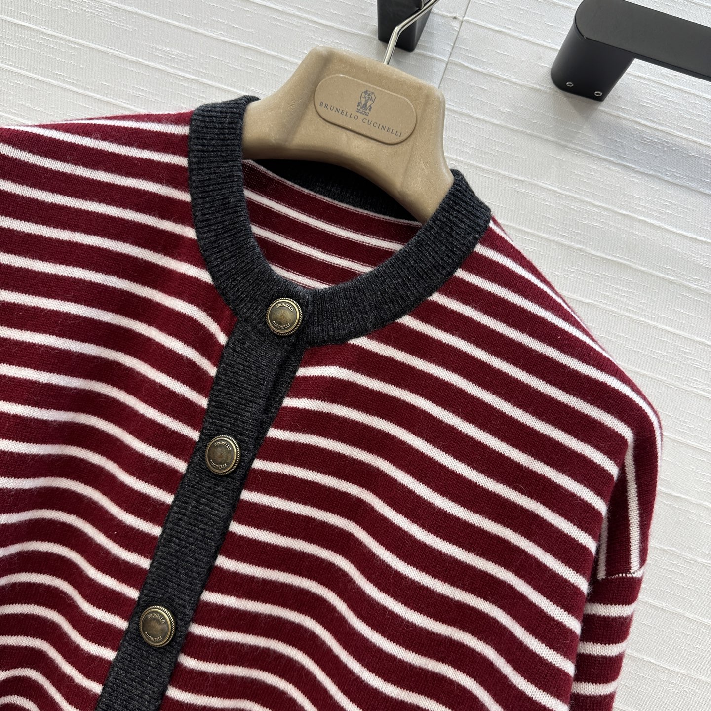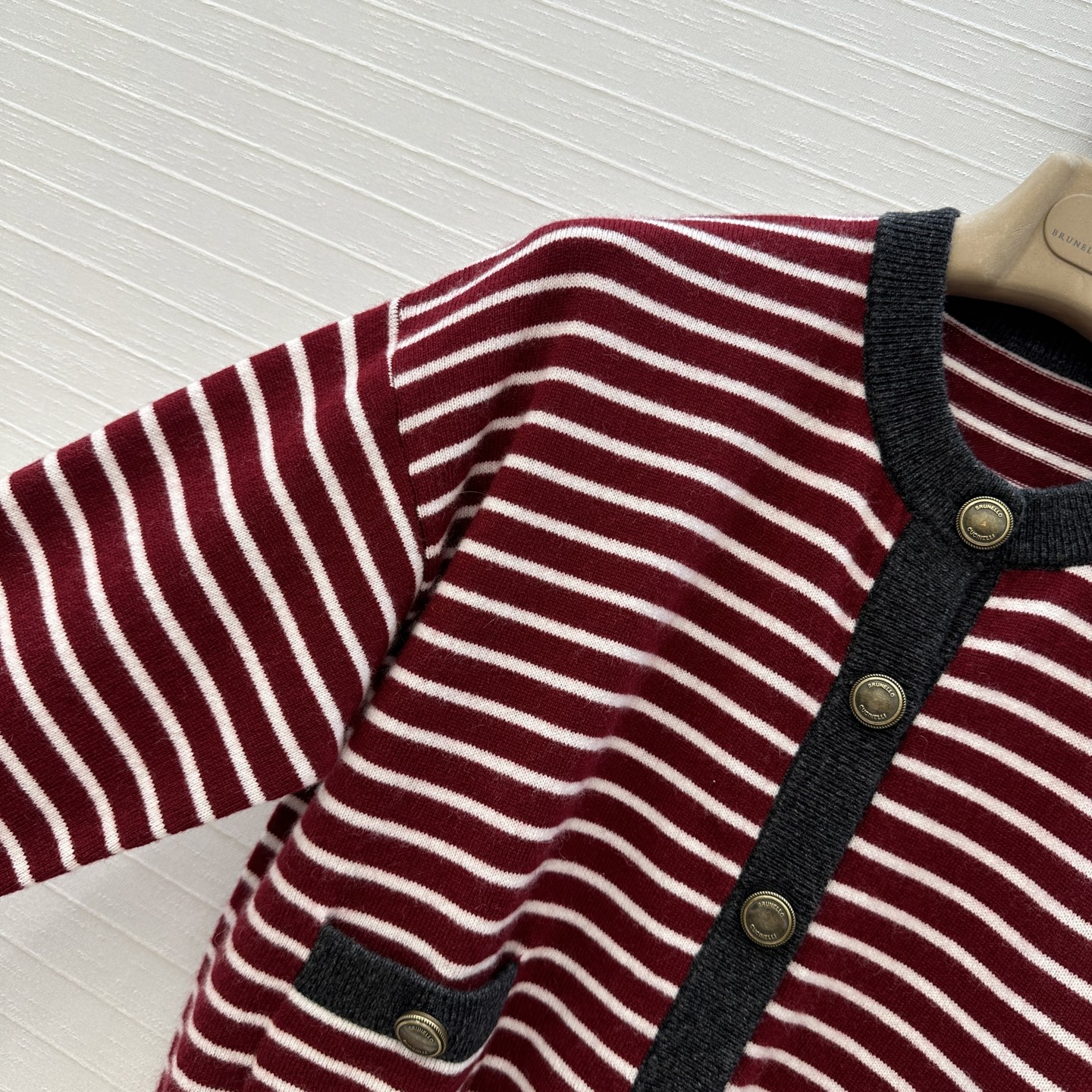 Details: Exclusive first launch of striped cashmere cardigan, minimalist style, round collar, vintage buttons.