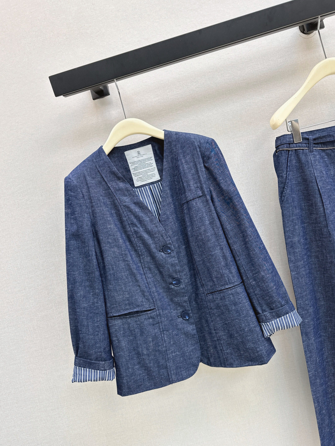 Details: Early autumn high-sense casual suit, striped lining, H-shaped cut, one color available
