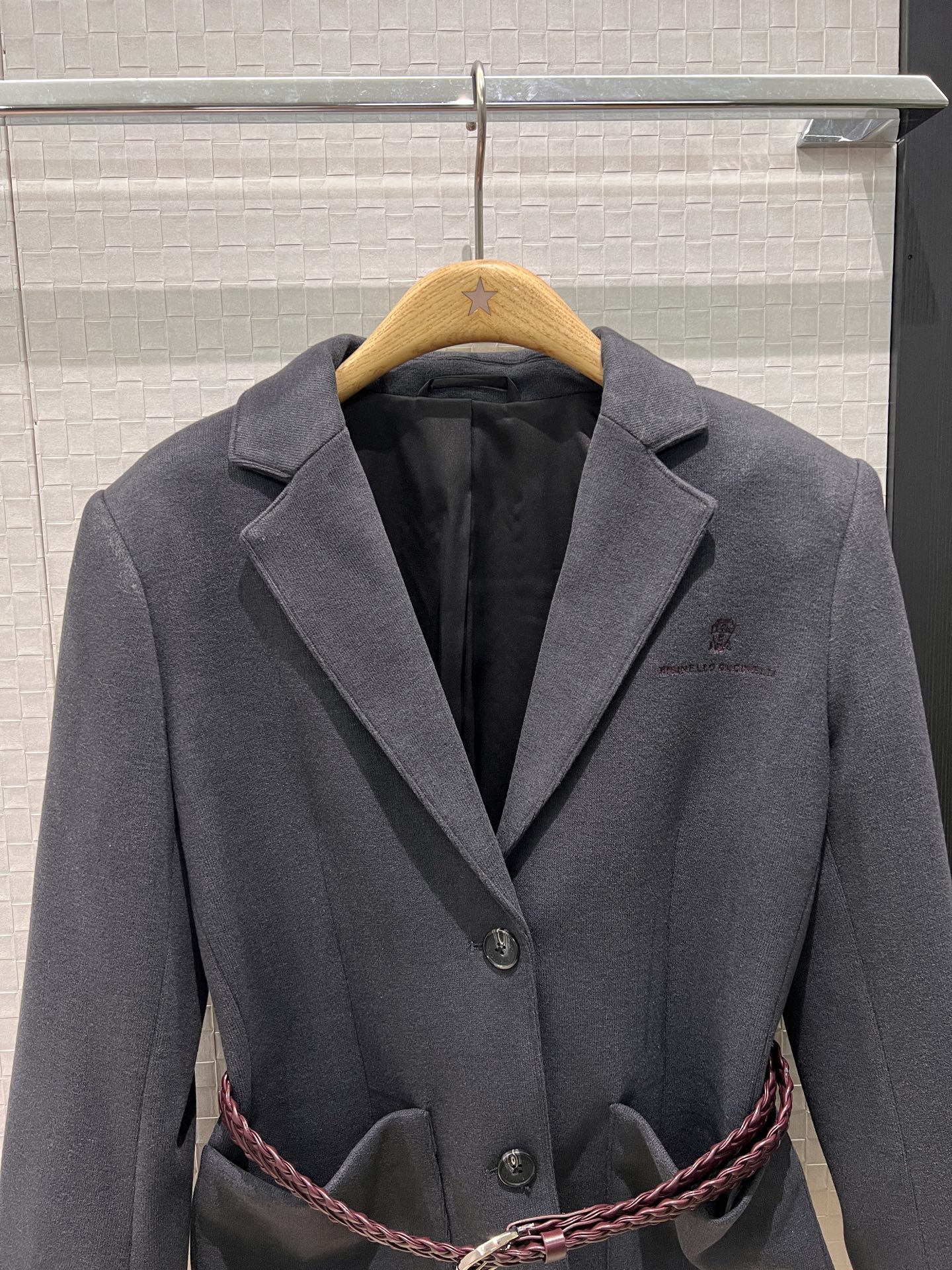 Details: New wool suit jacket featuring chest embroidery and bead chain, suitable for commuting and has a slimming effect.