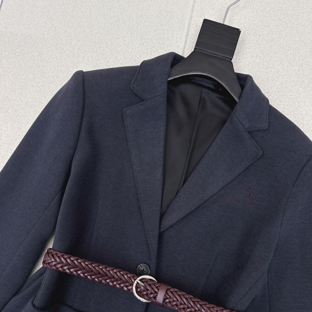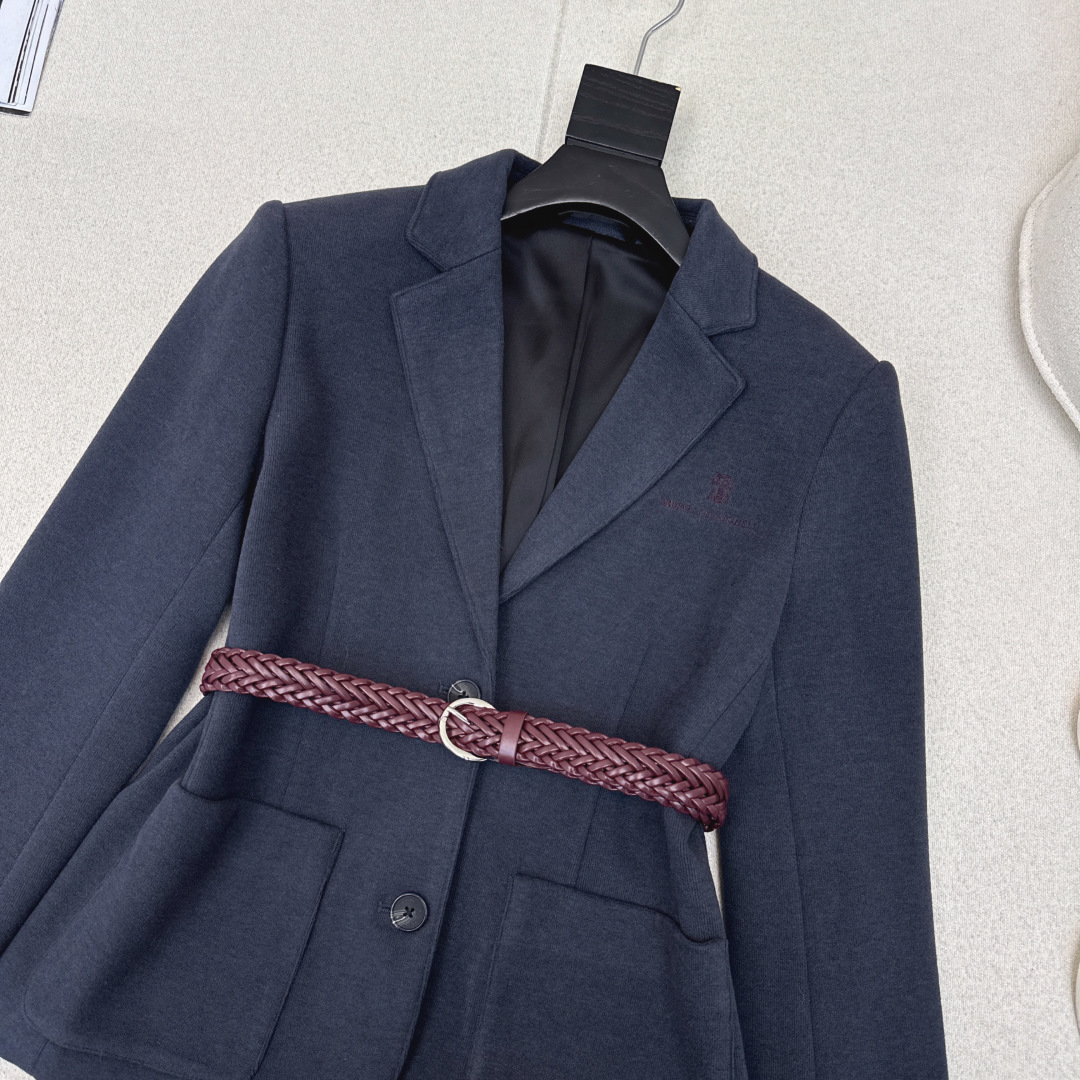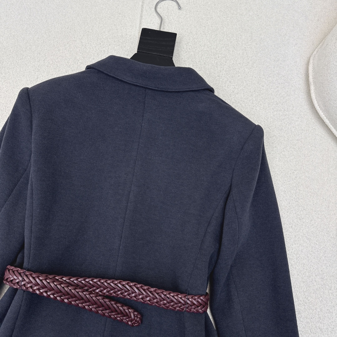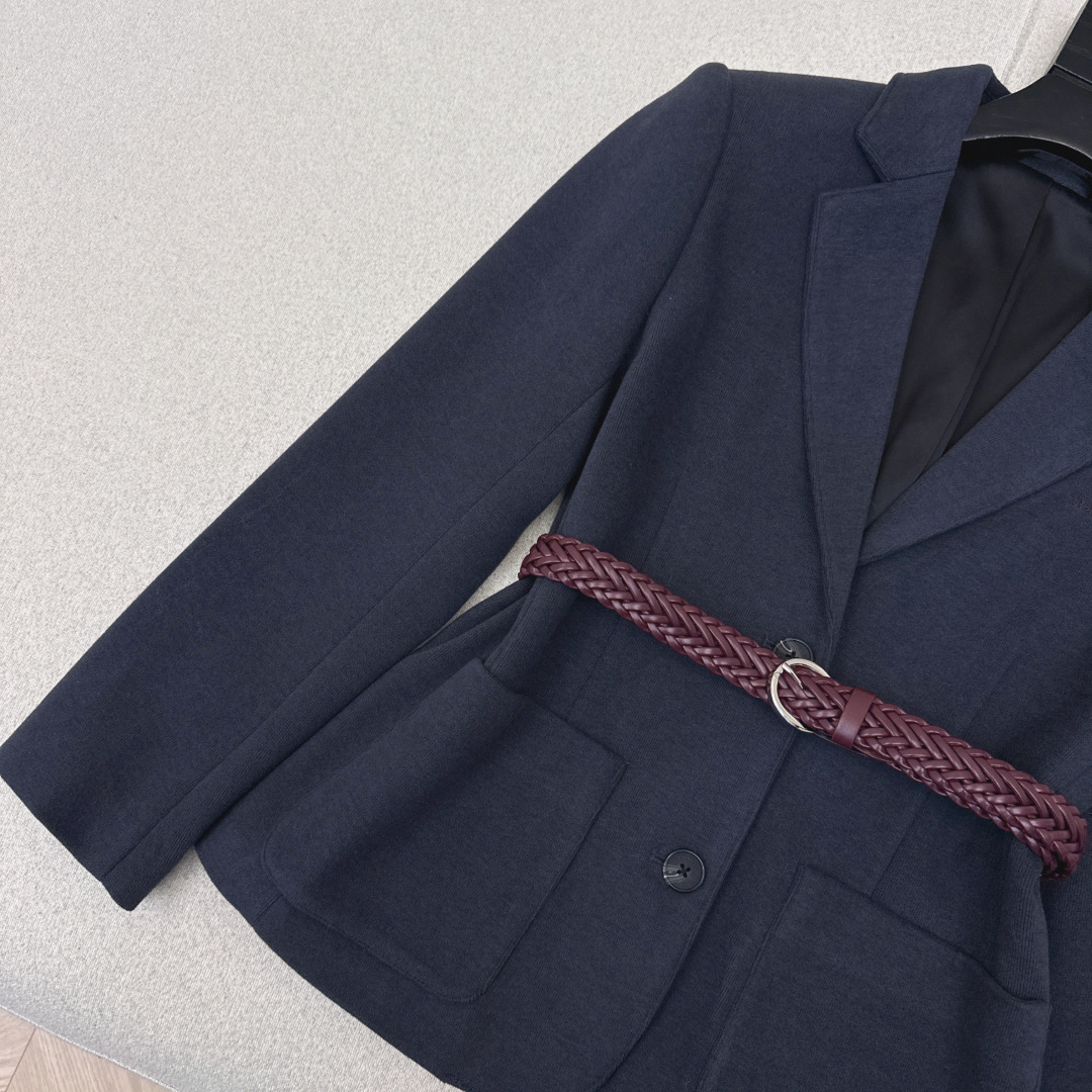 Details: Early spring suit jacket with embroidered letters and woven belt, H-shaped cut, suitable for work and leisure.