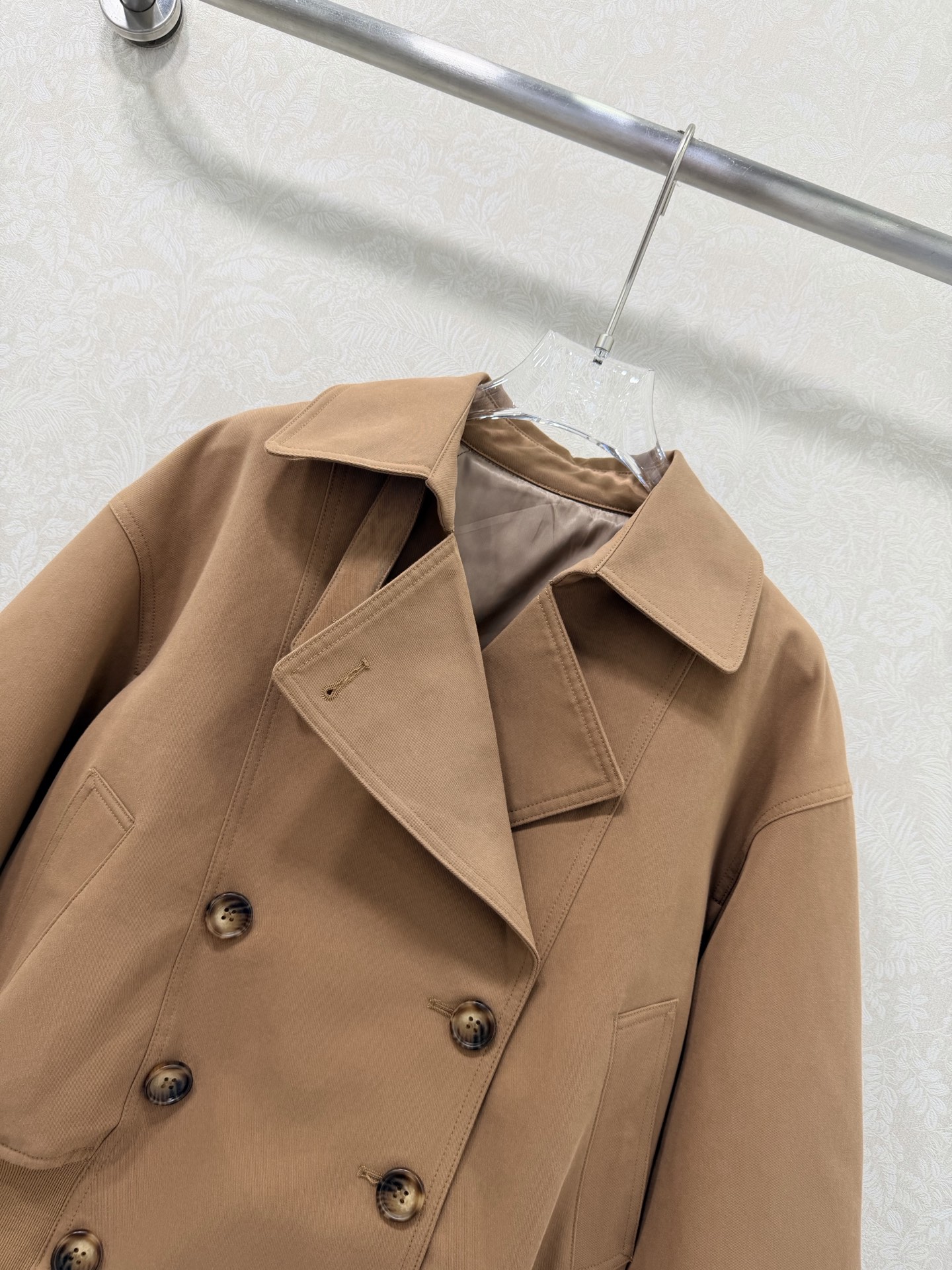 Details: New Double-breasted Trench Coat, Loose Cropped, Copper Chain, Classic Style, All-season Wear, Fine Craftsmanship