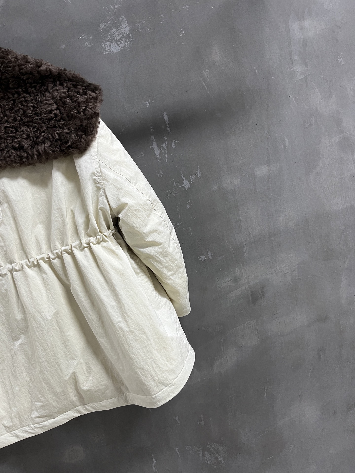 Details: Autumn down jacket, classic old-money style, loose fit. Made of nylon wool fur, filled with 90% white goose down.