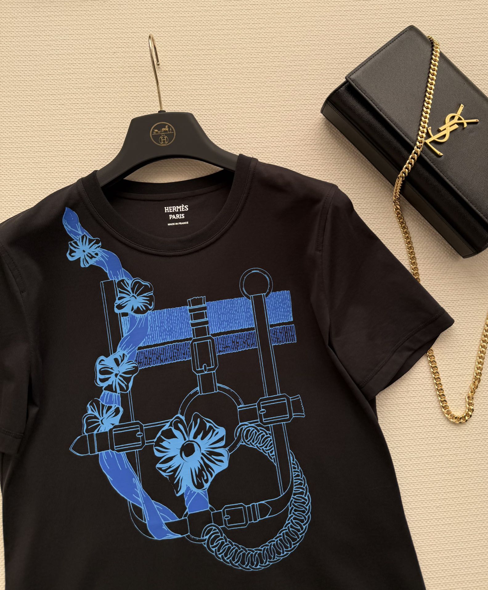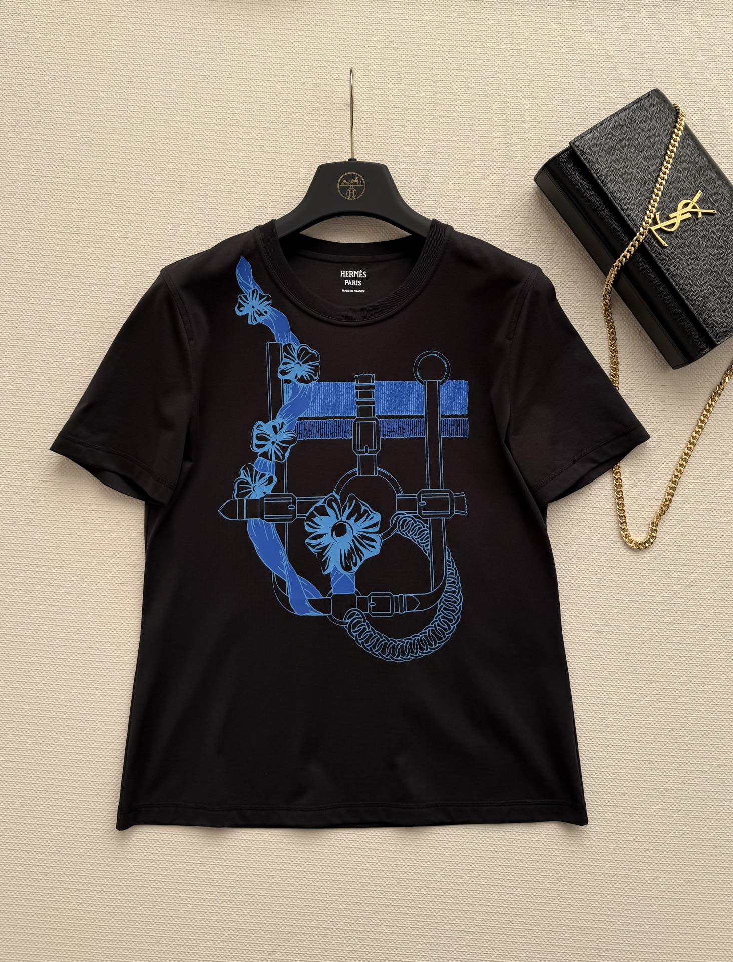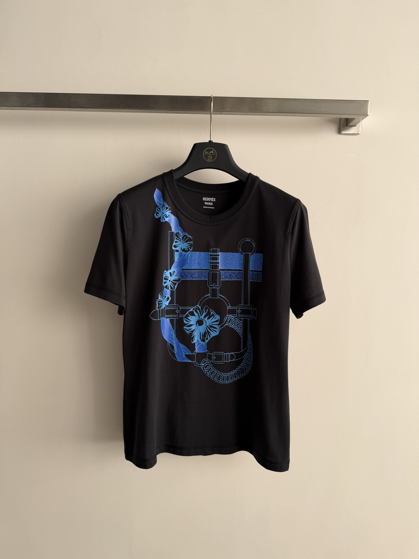 Details: Spring-summer printed T-shirt in white cotton with flower-chain print, featuring a classic style. High customization with fine workmanship