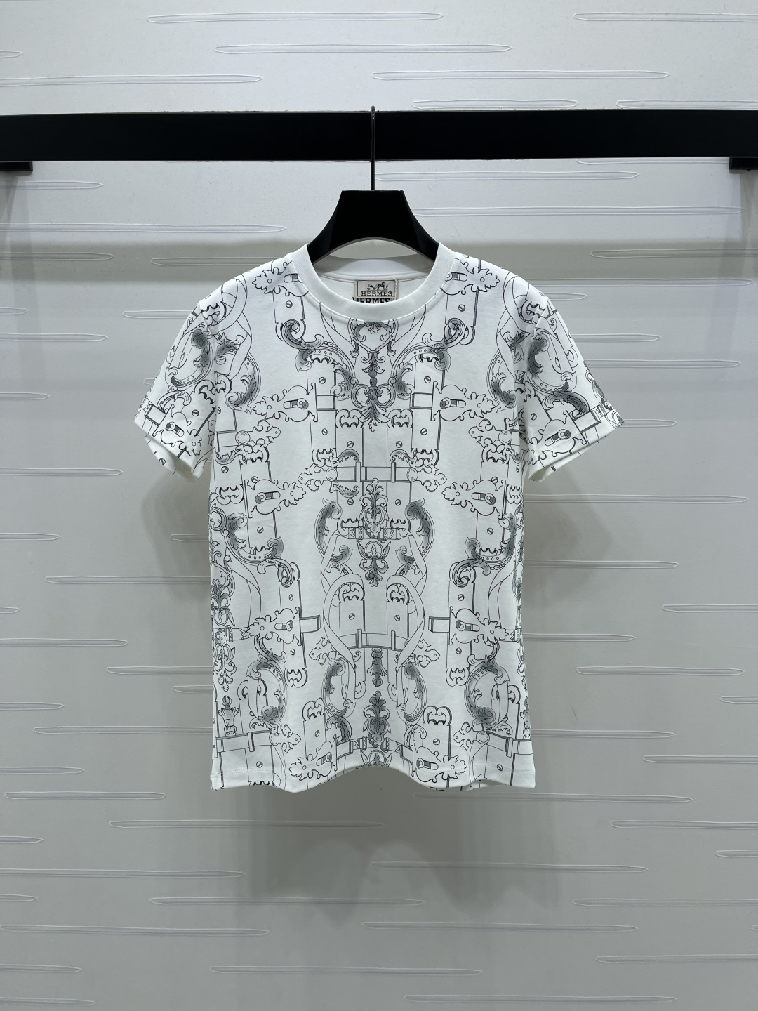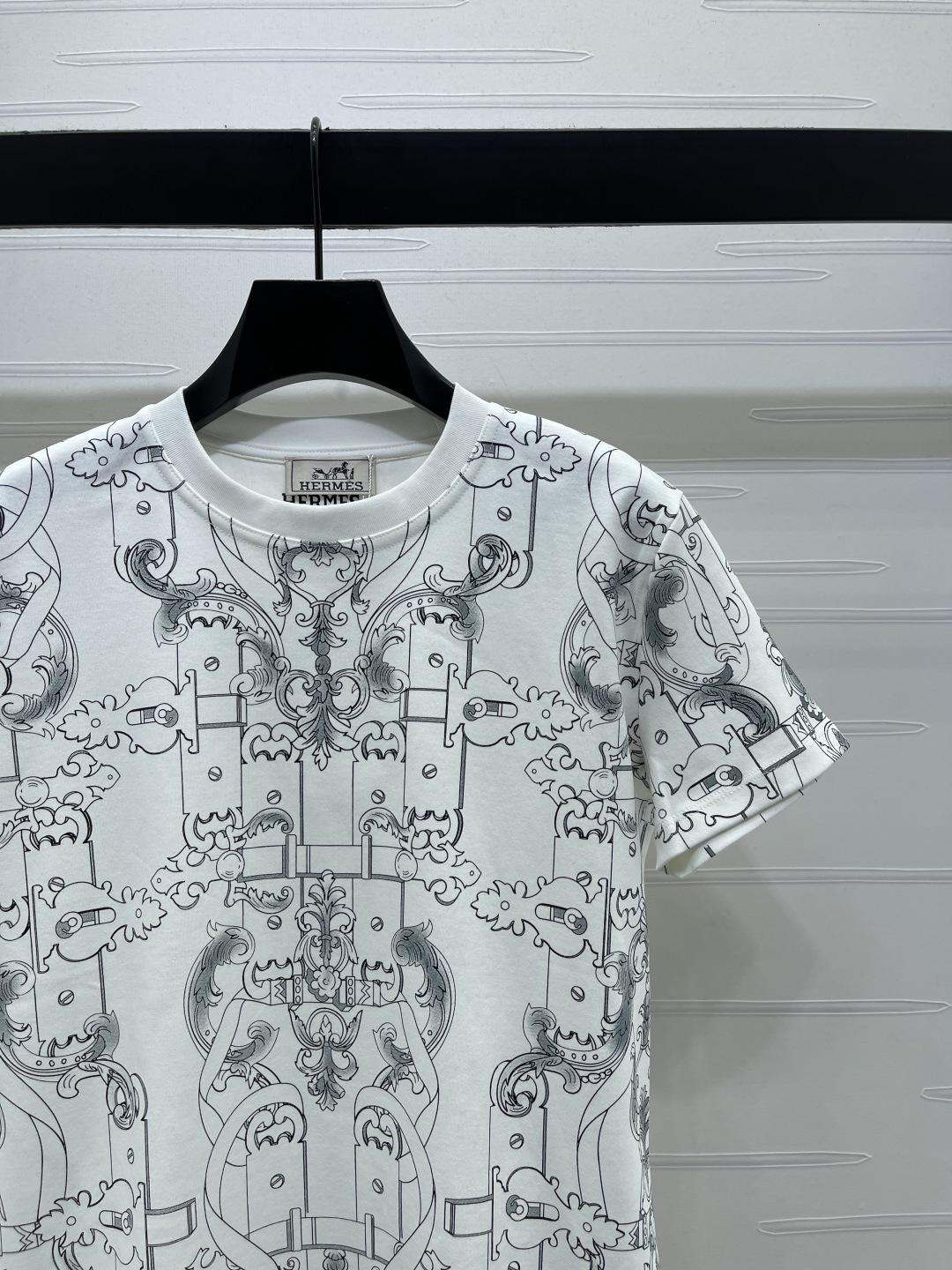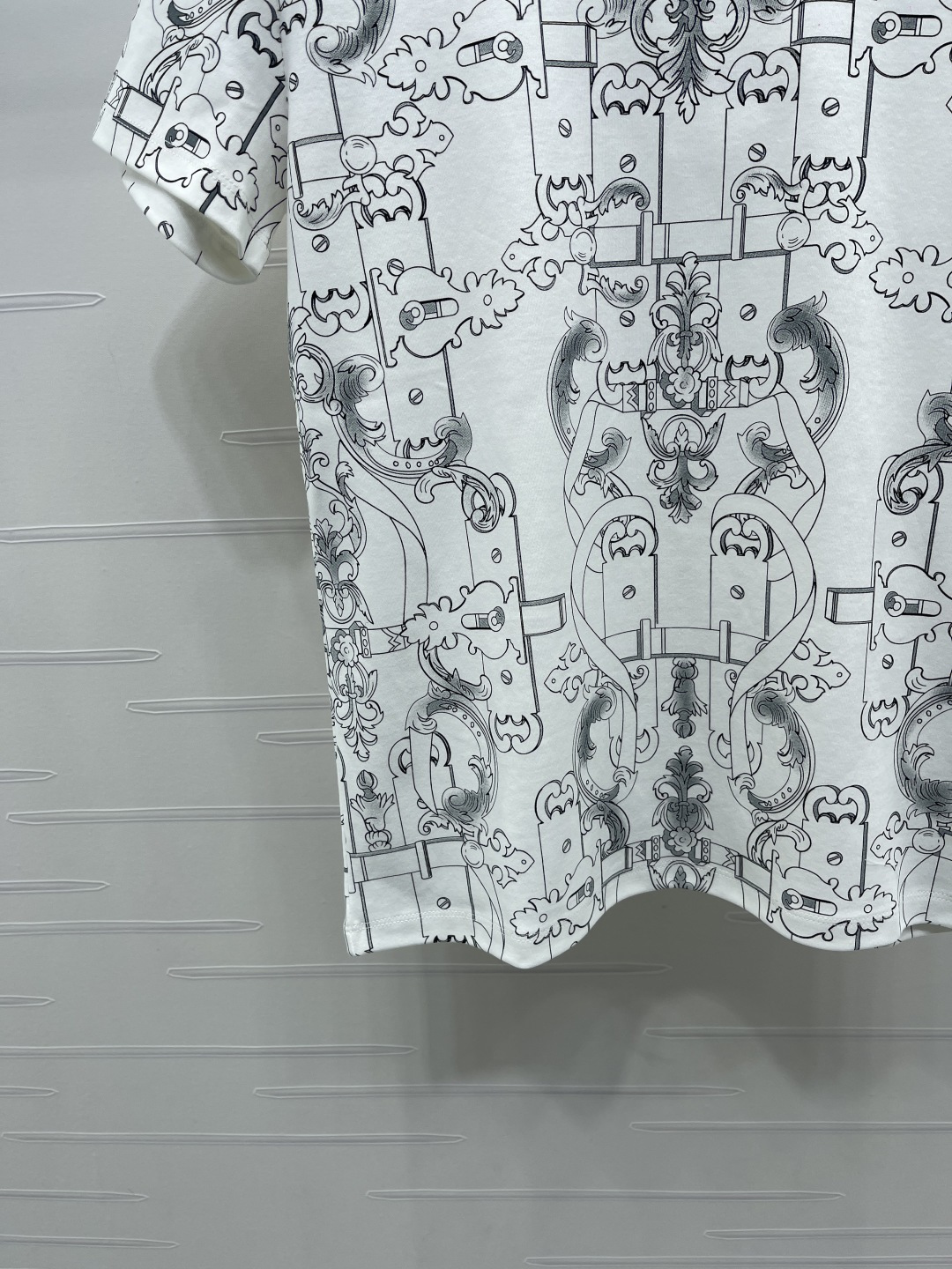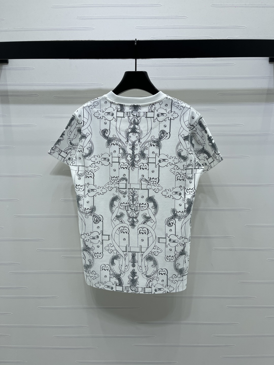 Details: spring T-shirt featuring black-and-white vintage prints, breathable and ideal for summer.