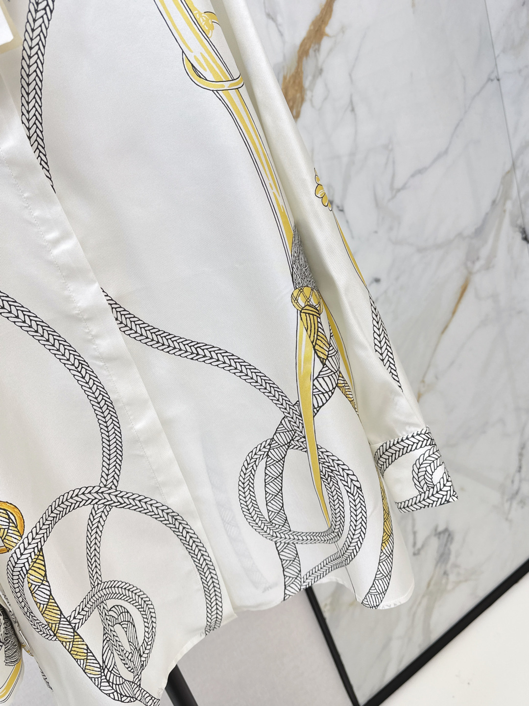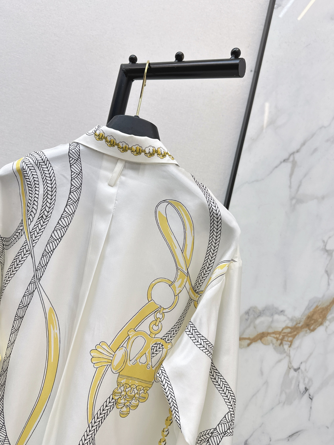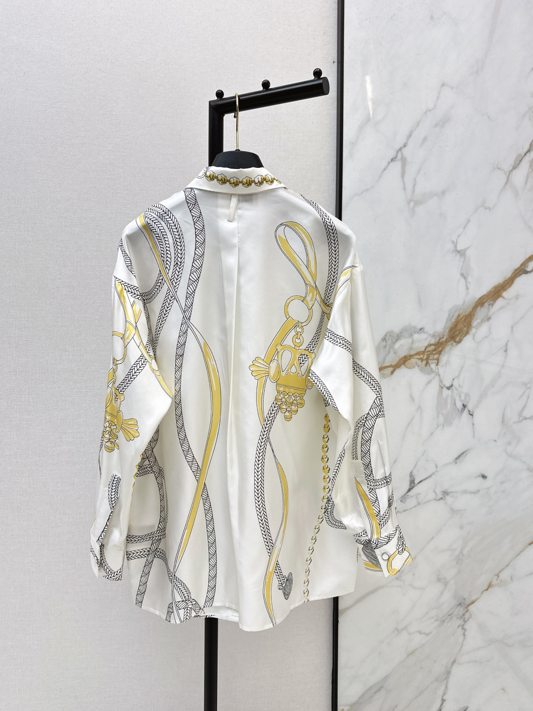 Details: Autumn & winter silk shirt featuring a printed pattern, loose fit for a flattering silhouette, available in sizes S, M, L, and XL.