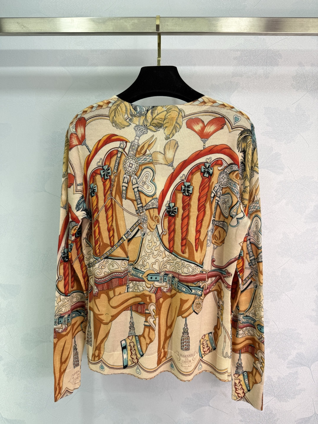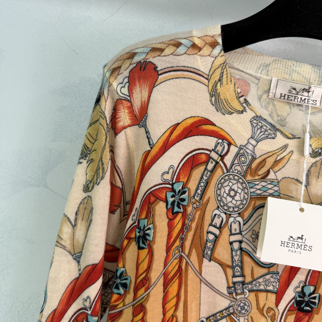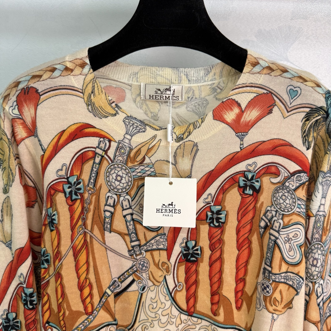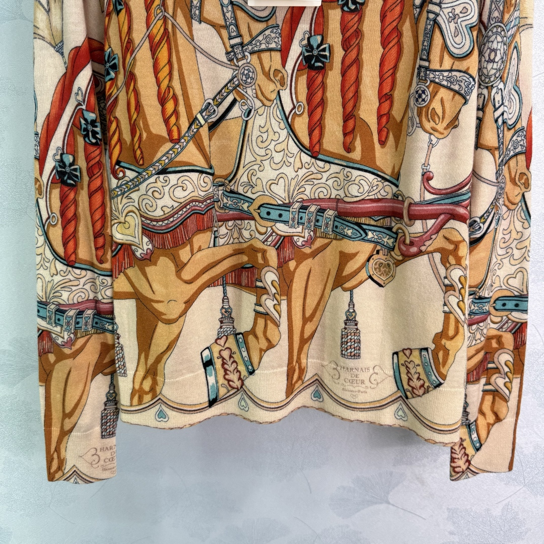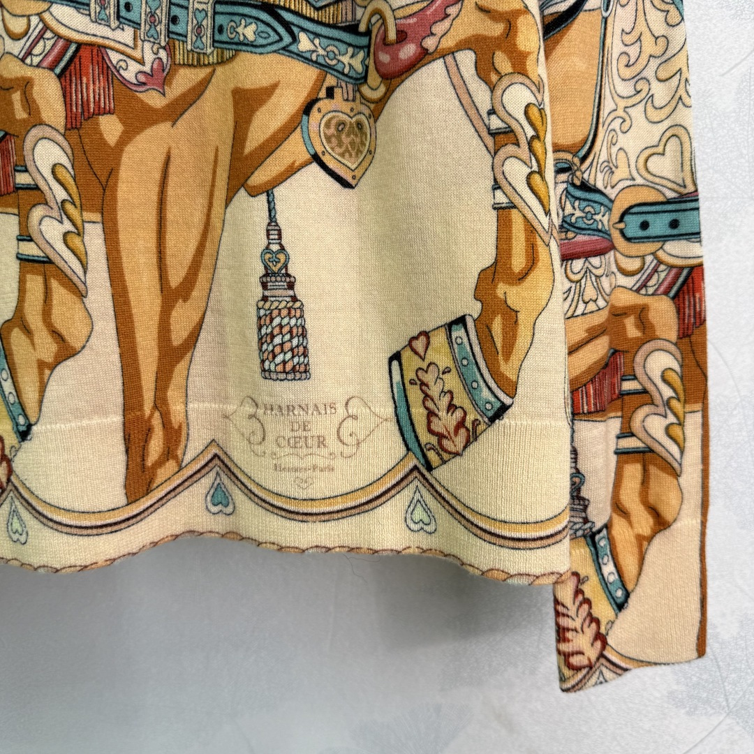 Details: Early Autumn round-neck knitted top with carriage pattern, soft fabric, and hand-rolled edges for a stylish appearance.