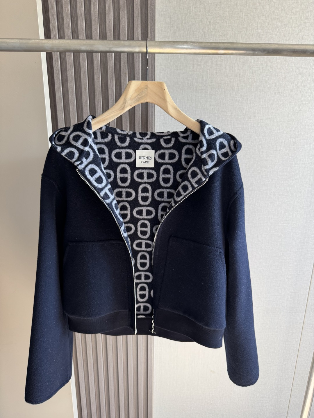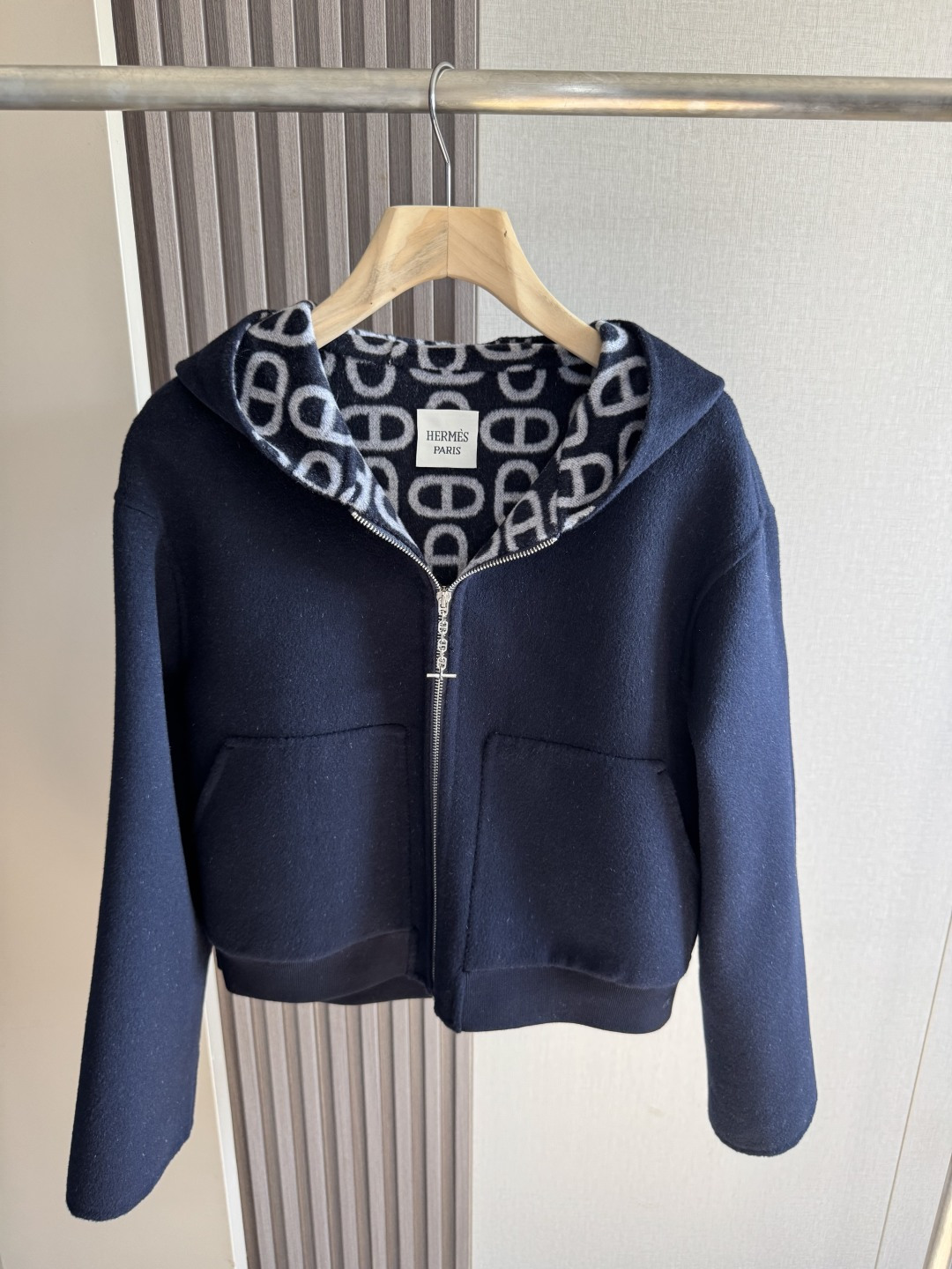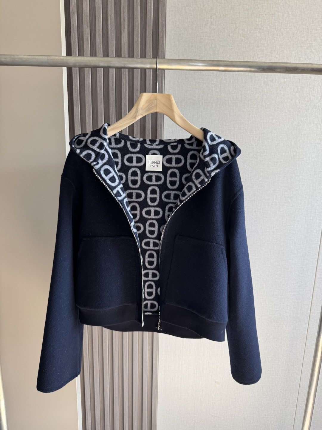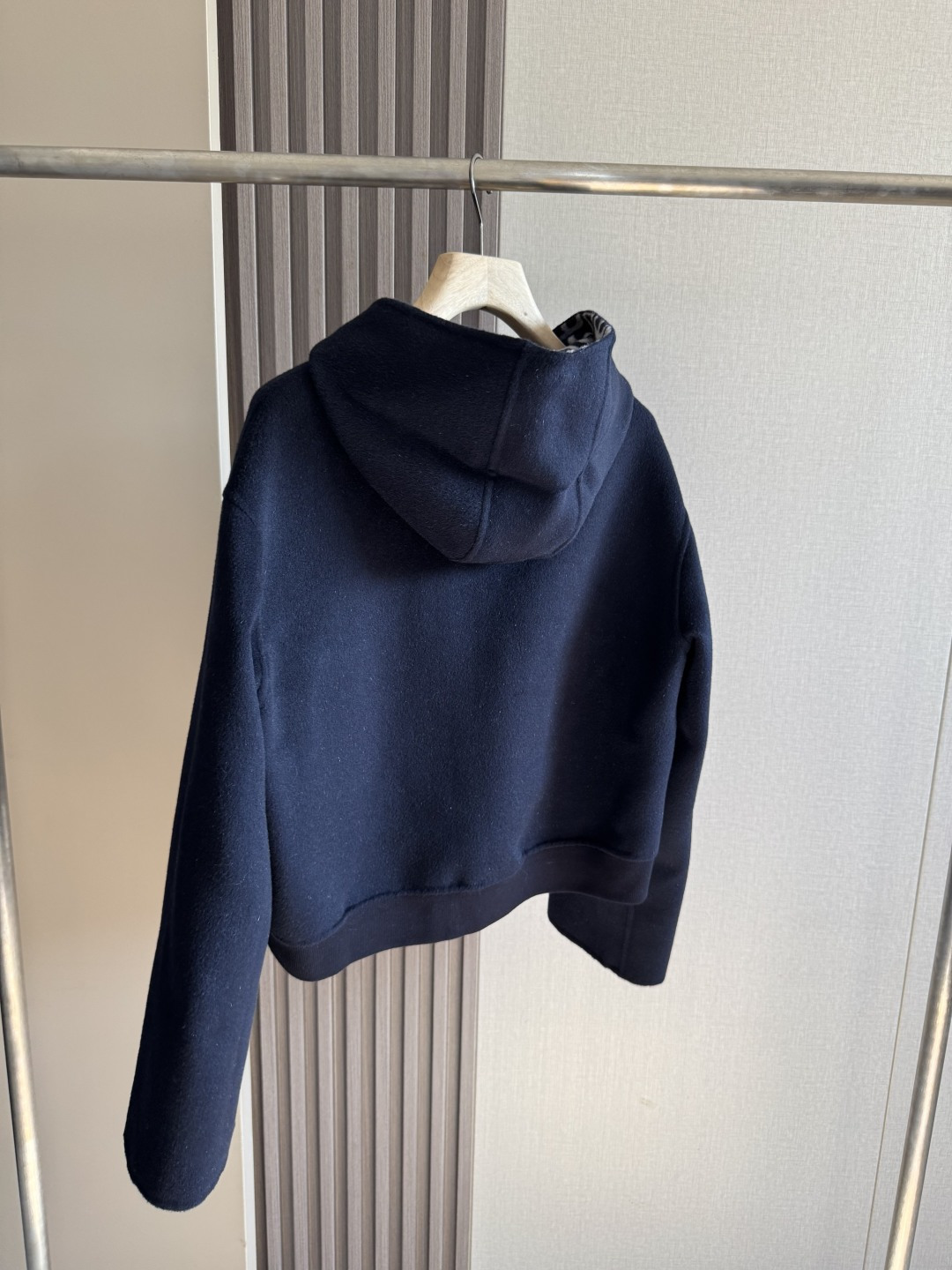 Details: High-quality cashmere coat with dust bag, available in sizes 36, 38, 40