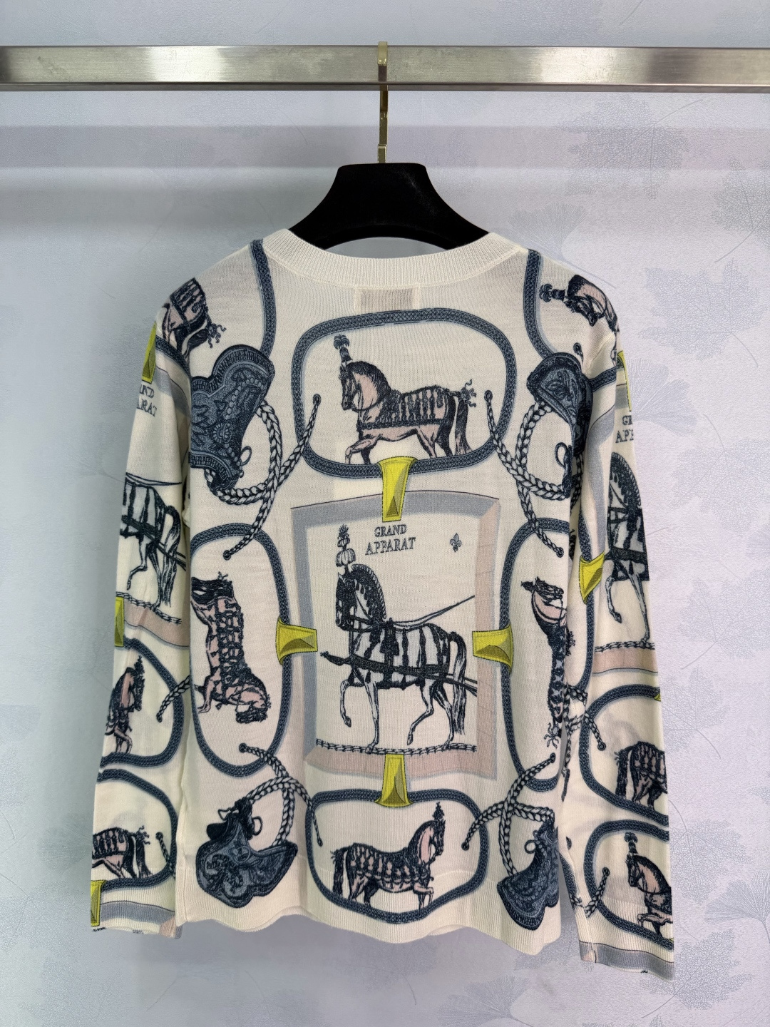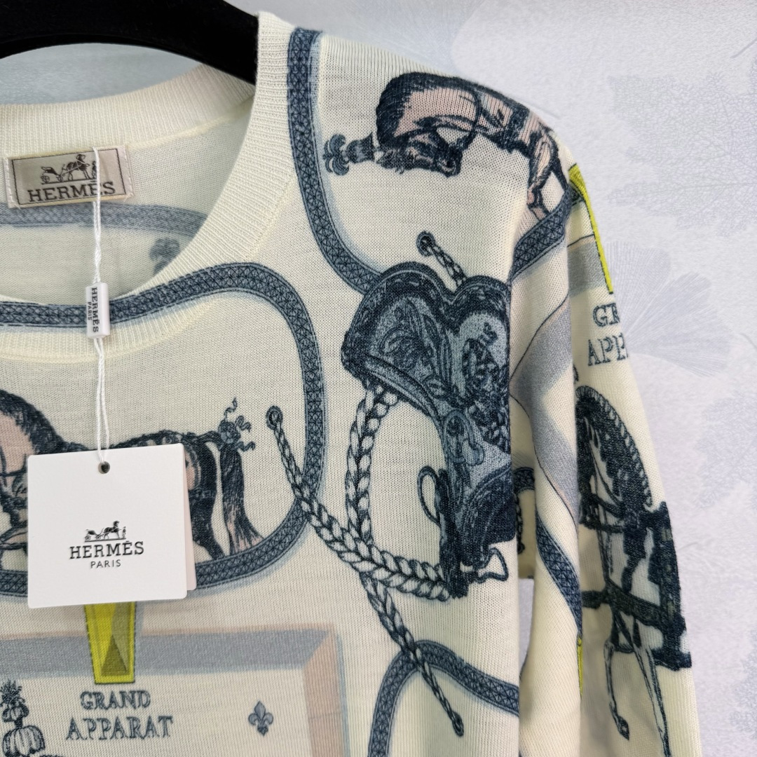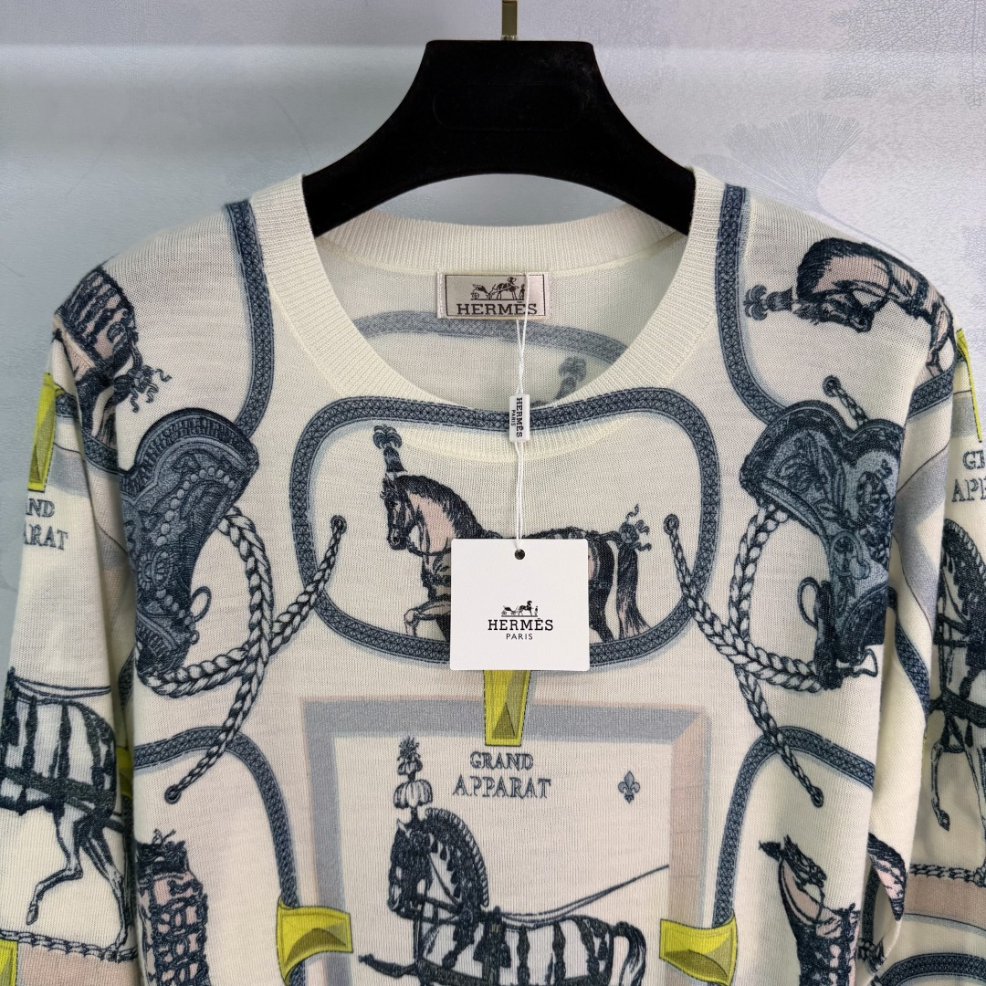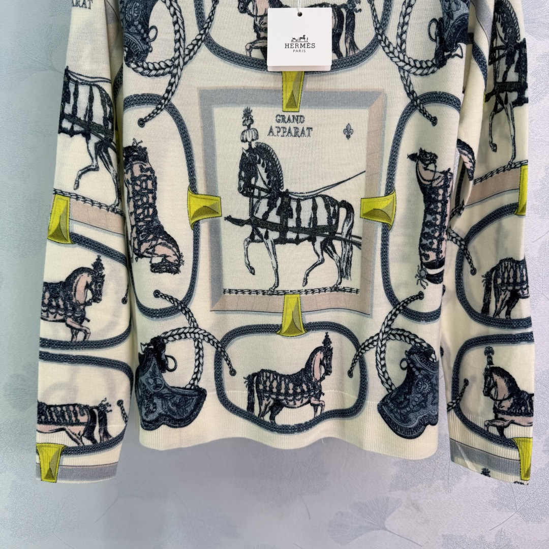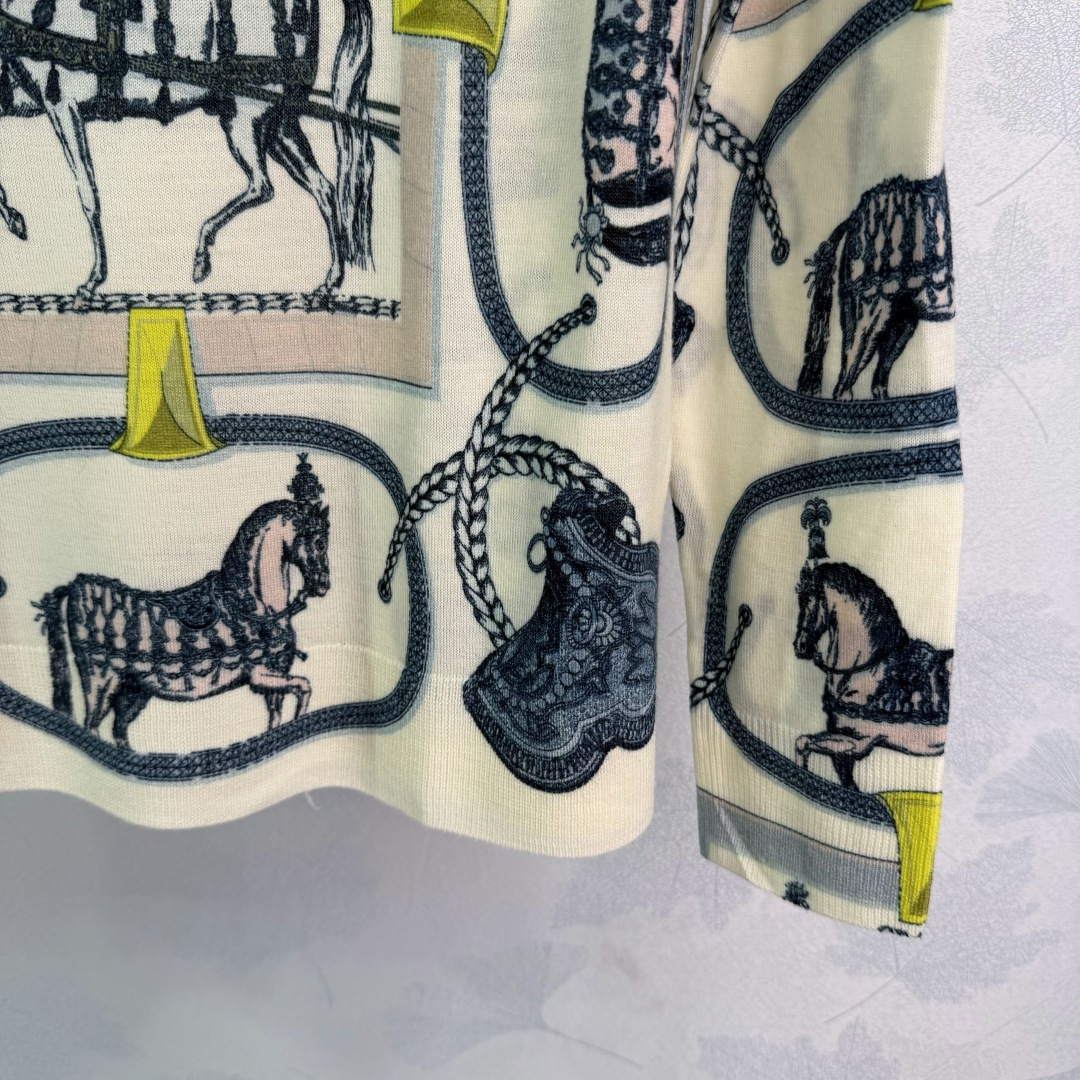 Details: Early Spring Equestrian Pattern Knit Top, High-Quality Soft Wool, Loose Fit, Elegant and Versatile