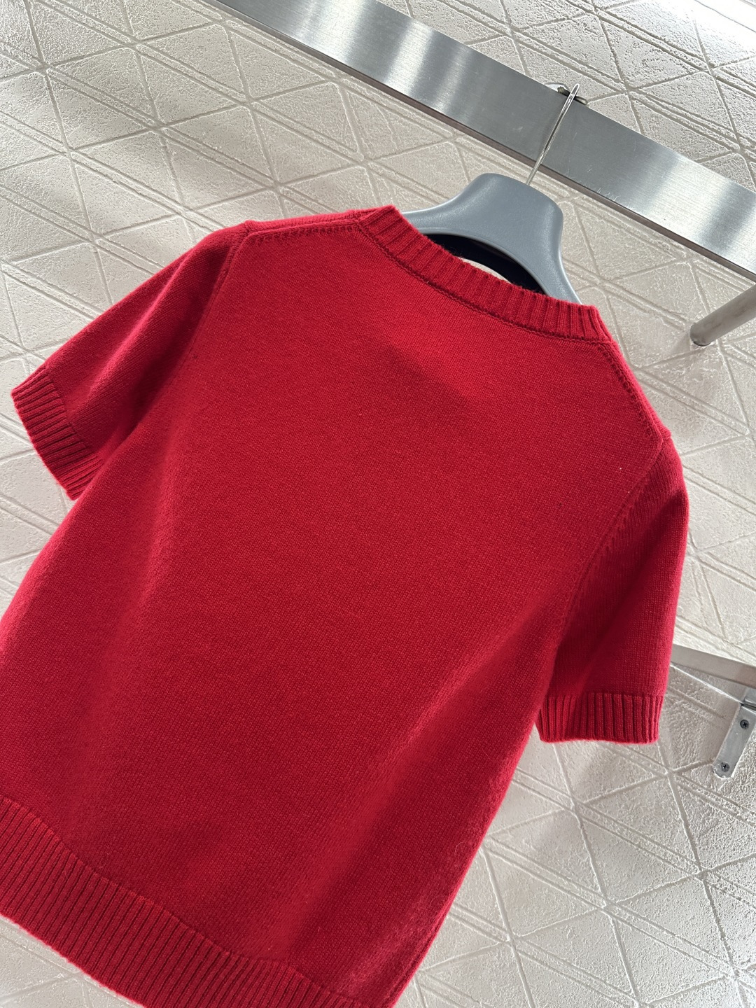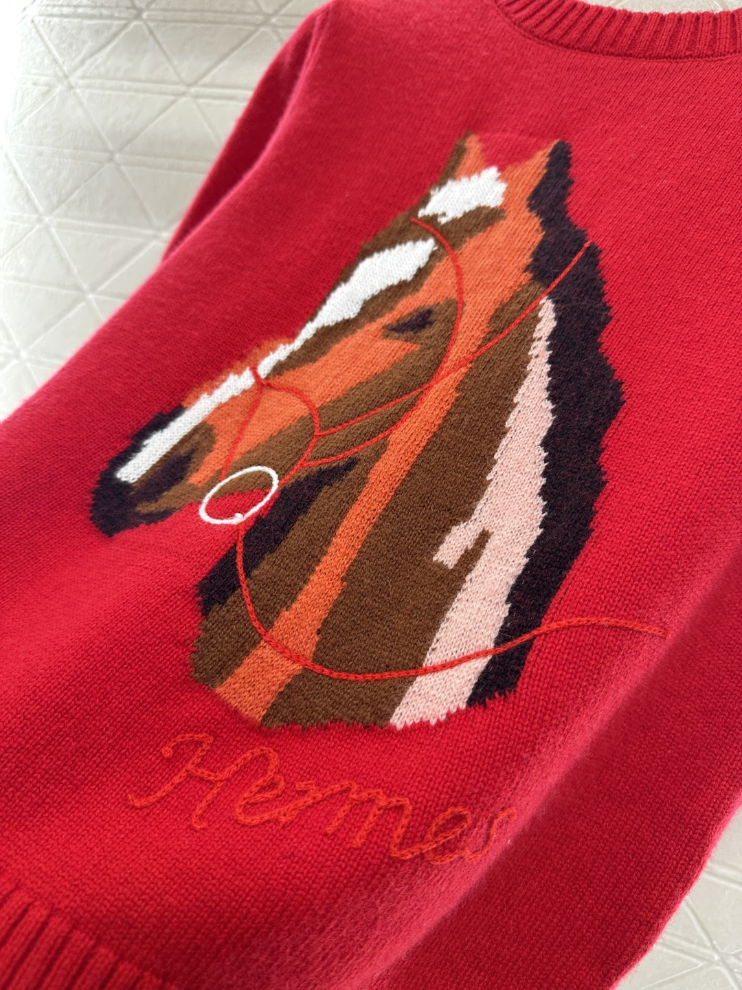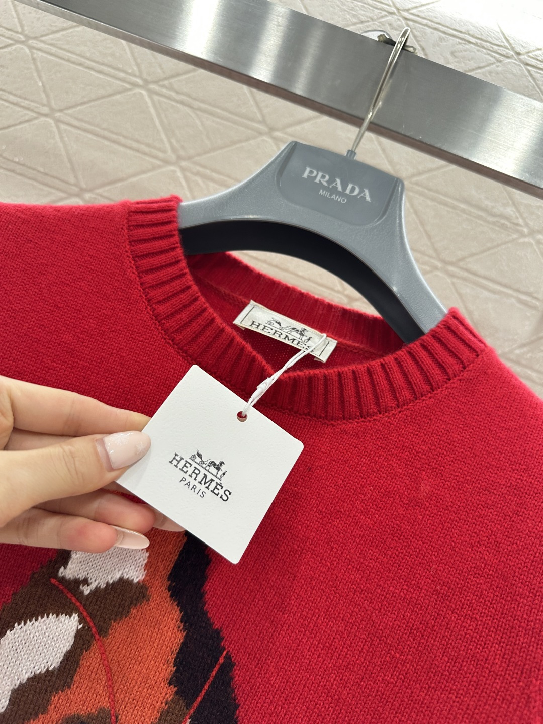 Details: New Year knitted short-sleeved sweater with horsehead jacquard, red-brown contrast, warm wool.