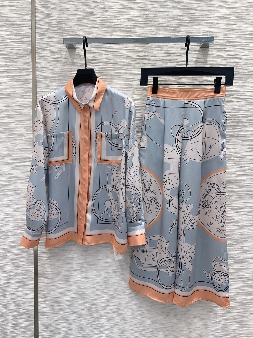 Details: FW new silk shirt and pants set, retro, versatile, made of custom tech fabric