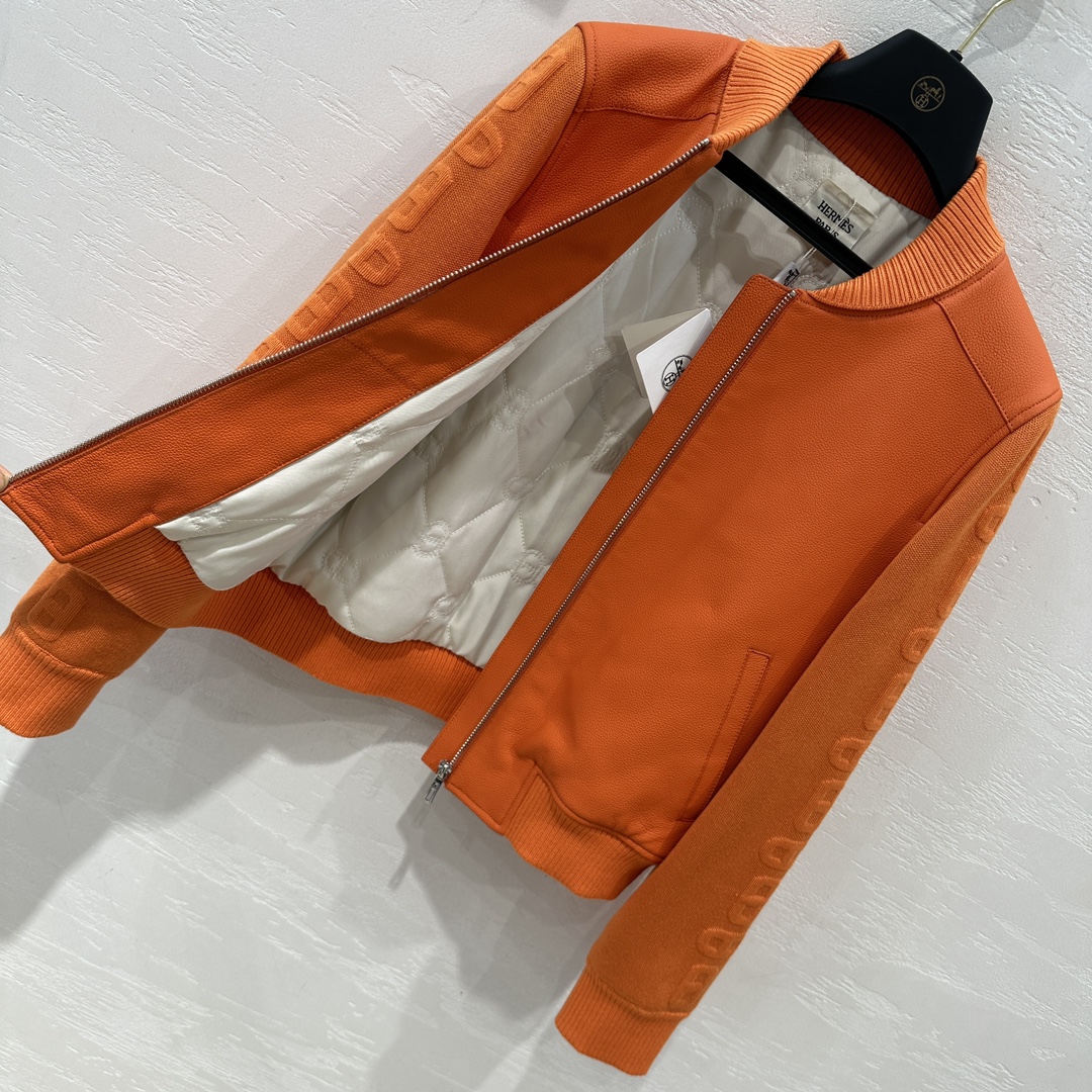 here:home > WOMENS > Hermes > Outerwear Hermes (W) > Hermes Premium Vintage Sheepskin Quilted Jacket with Pig Nose Embroidery
