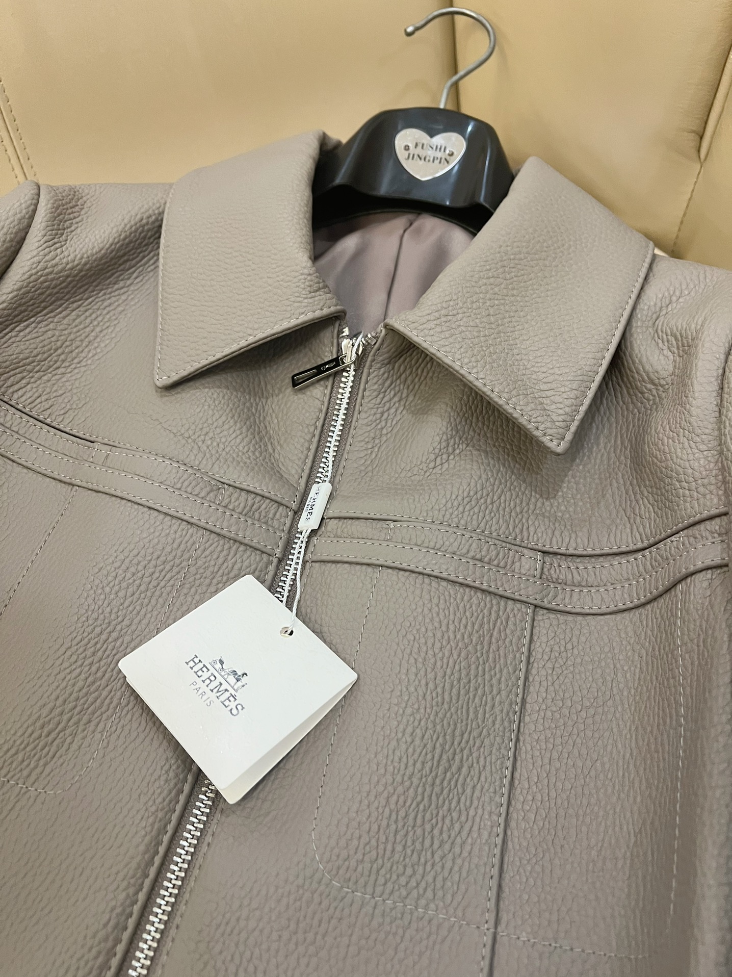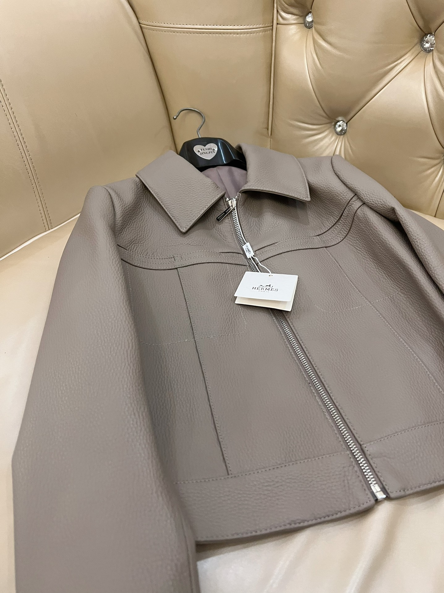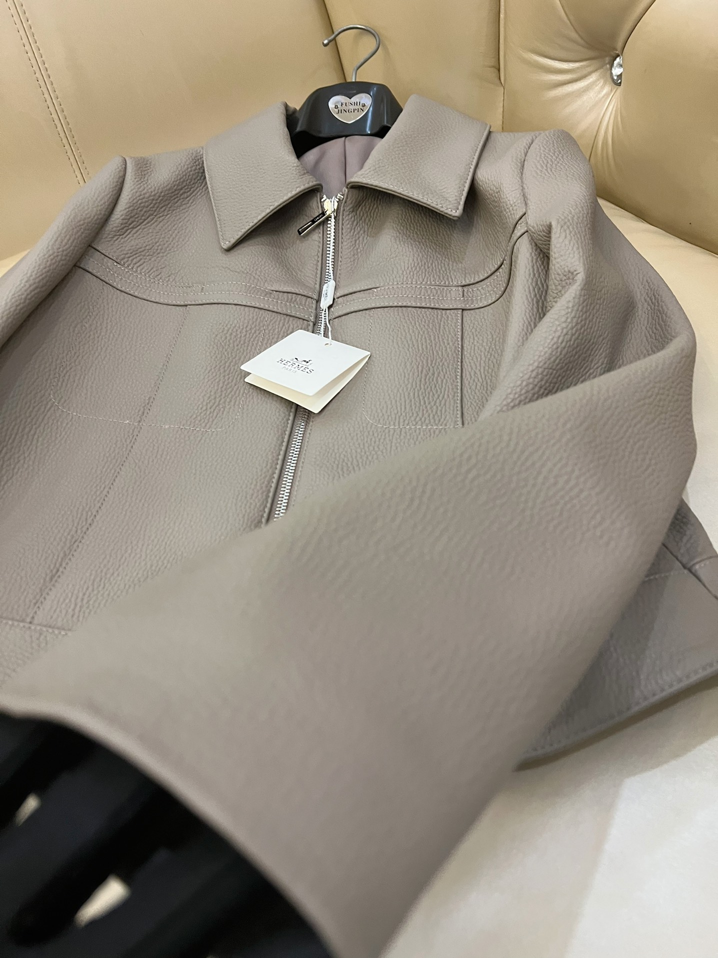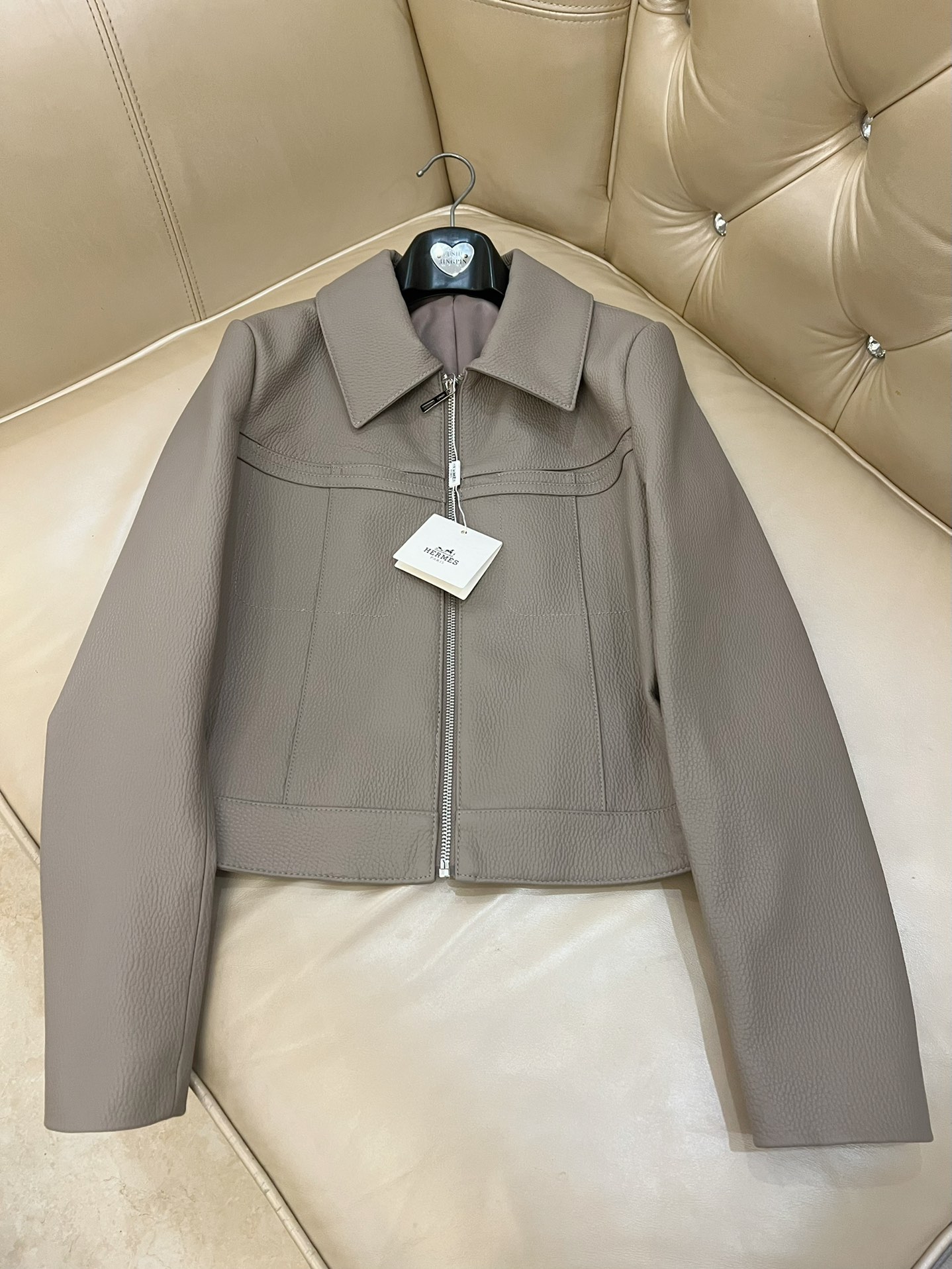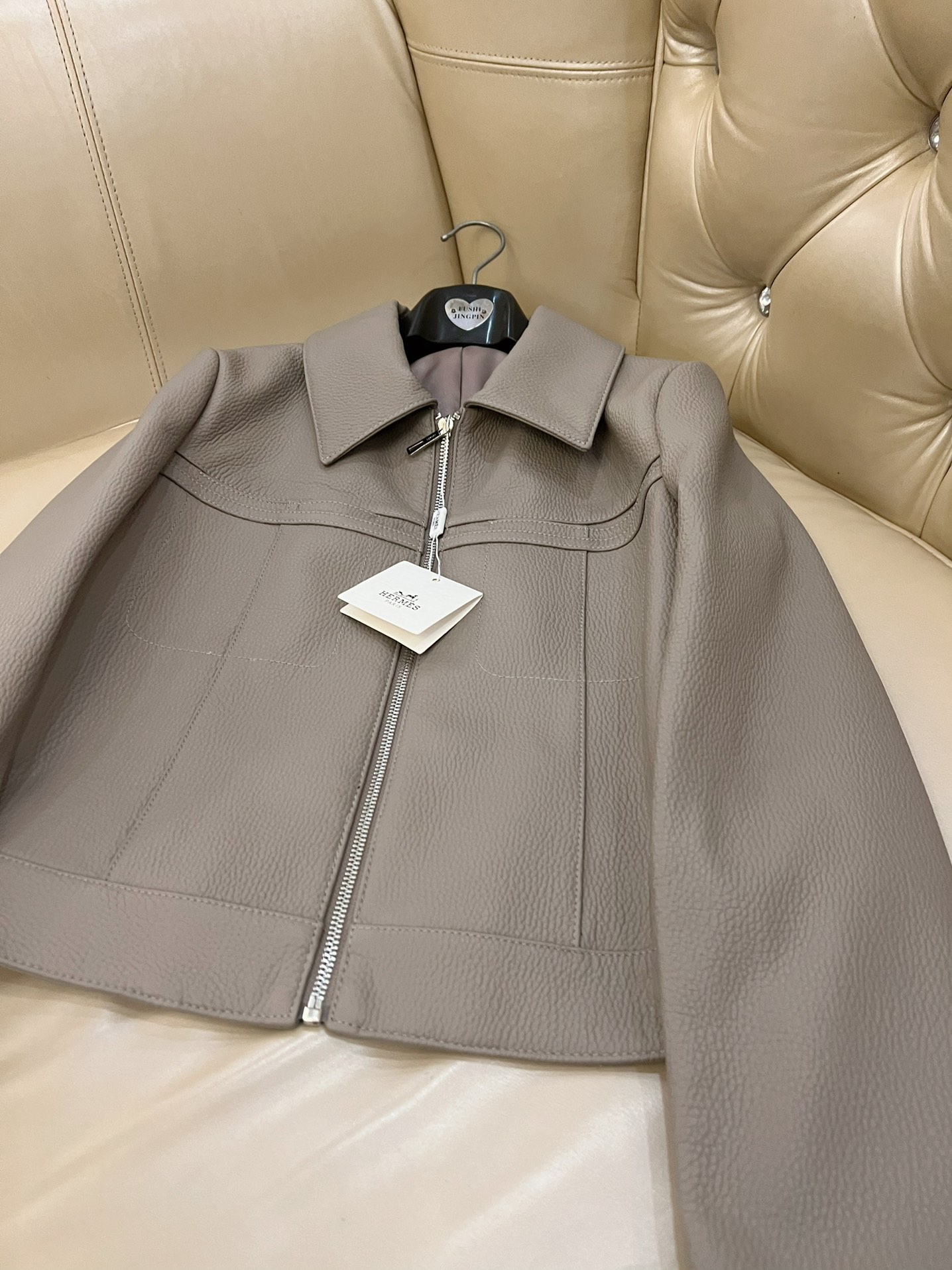 here:home > WOMENS > Hermes > Outerwear Hermes (W) > Hermes Premium Leather Jacket with Custom Oil - edged Details
