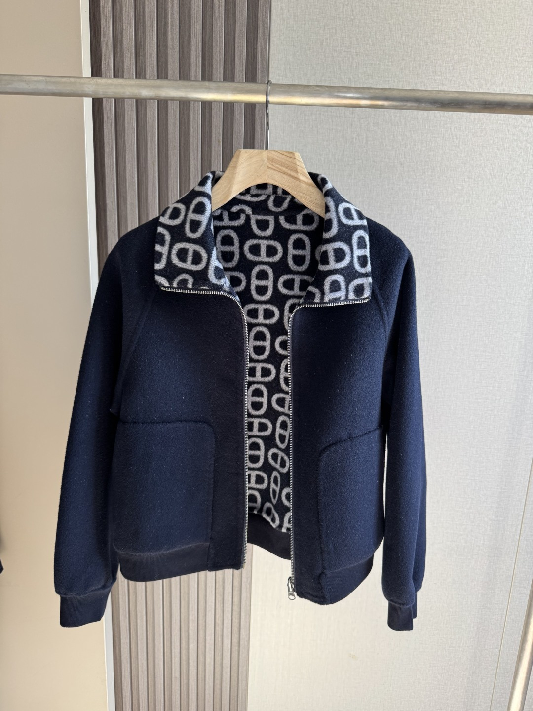Details: High-quality cashmere coat with dust bag, available in sizes 36, 38, 40