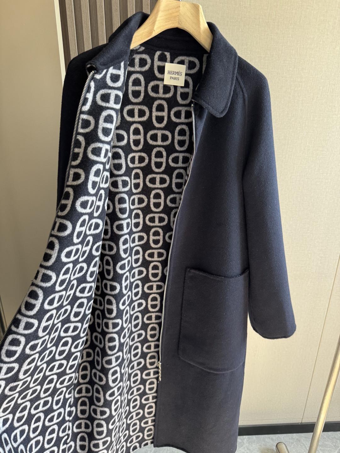 Hermes High - quality Pig Nose Design Cashmere Coat