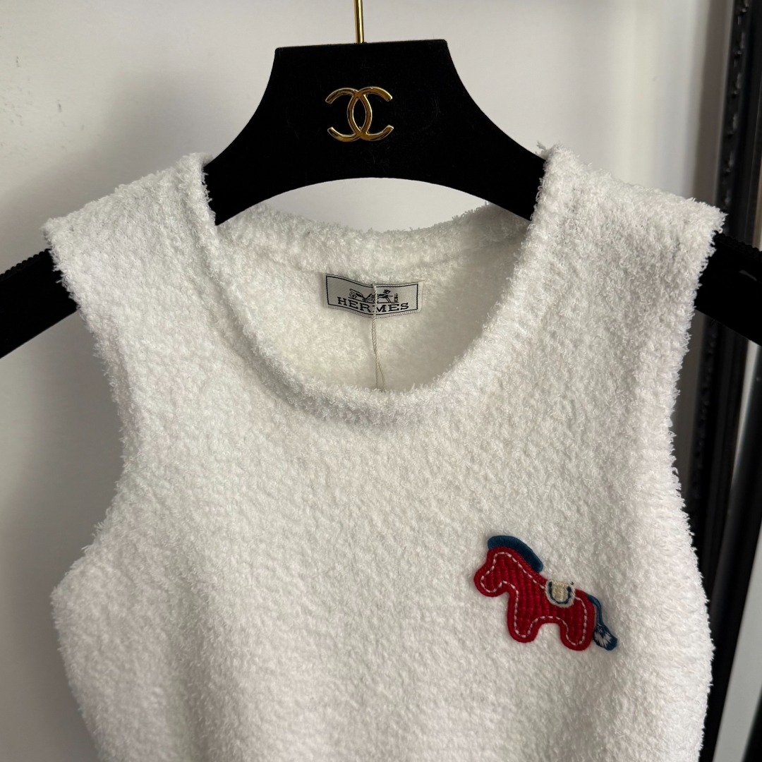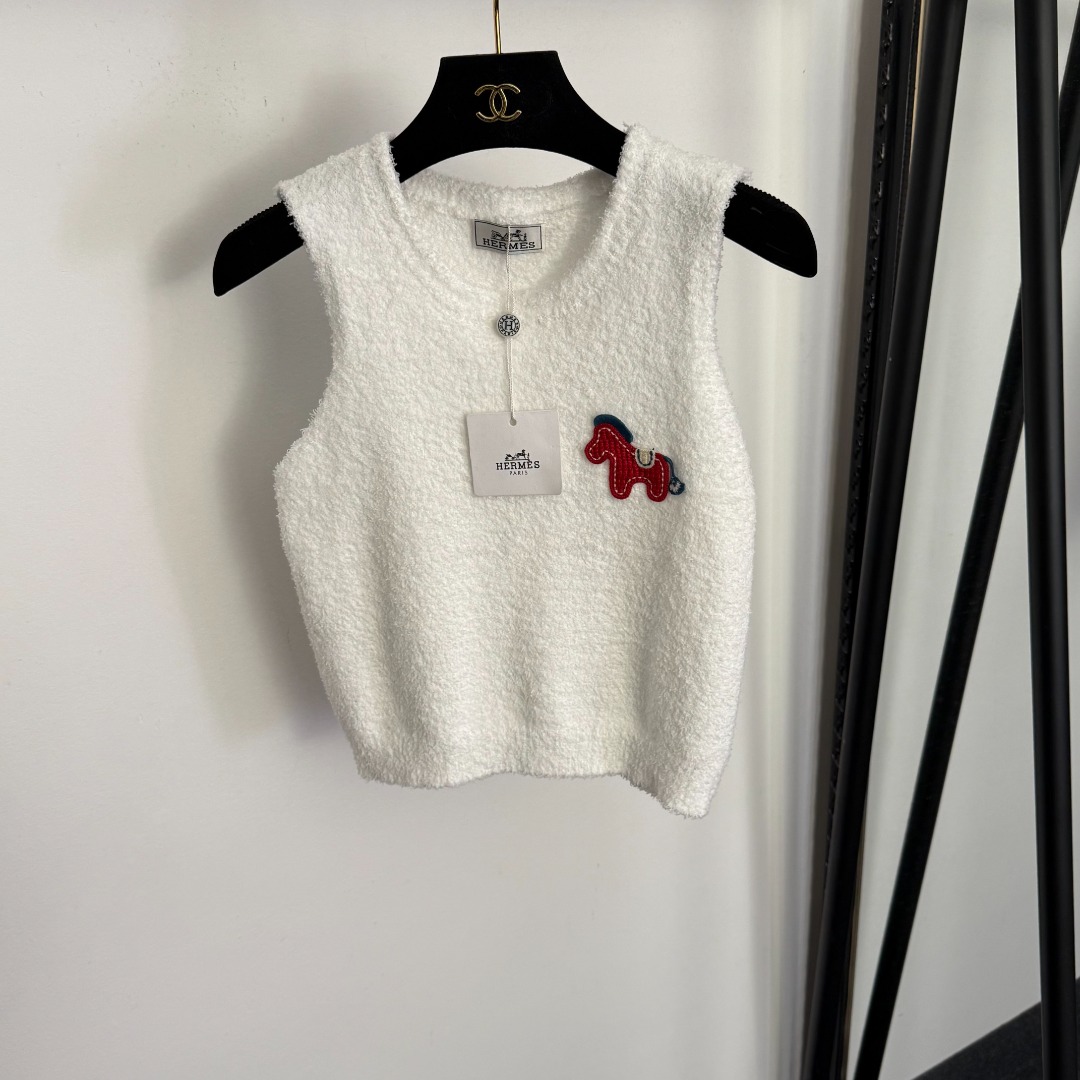 Details: New cute pony embroidered knitted vest in white, red and dark brown, one - size. High - end customization, fine workmanship