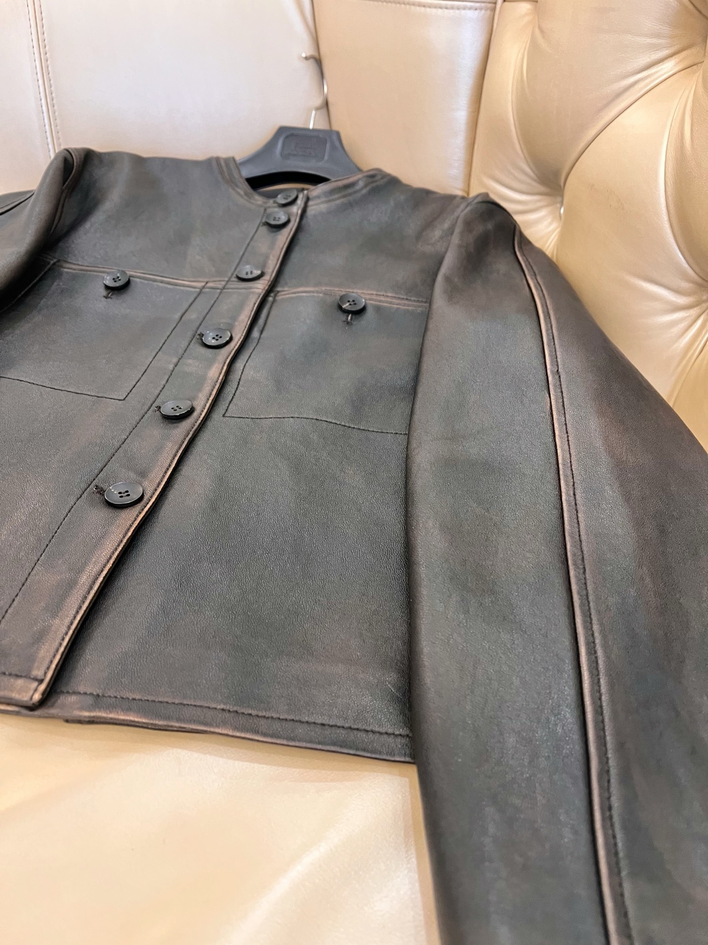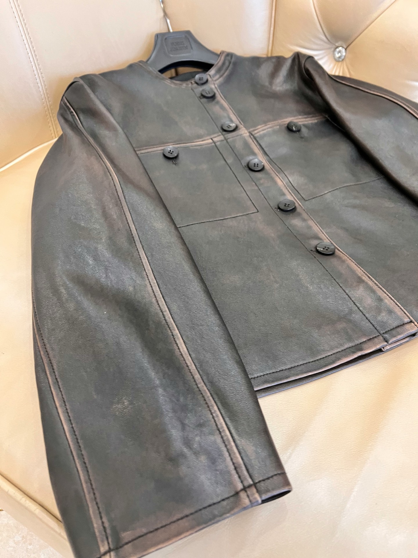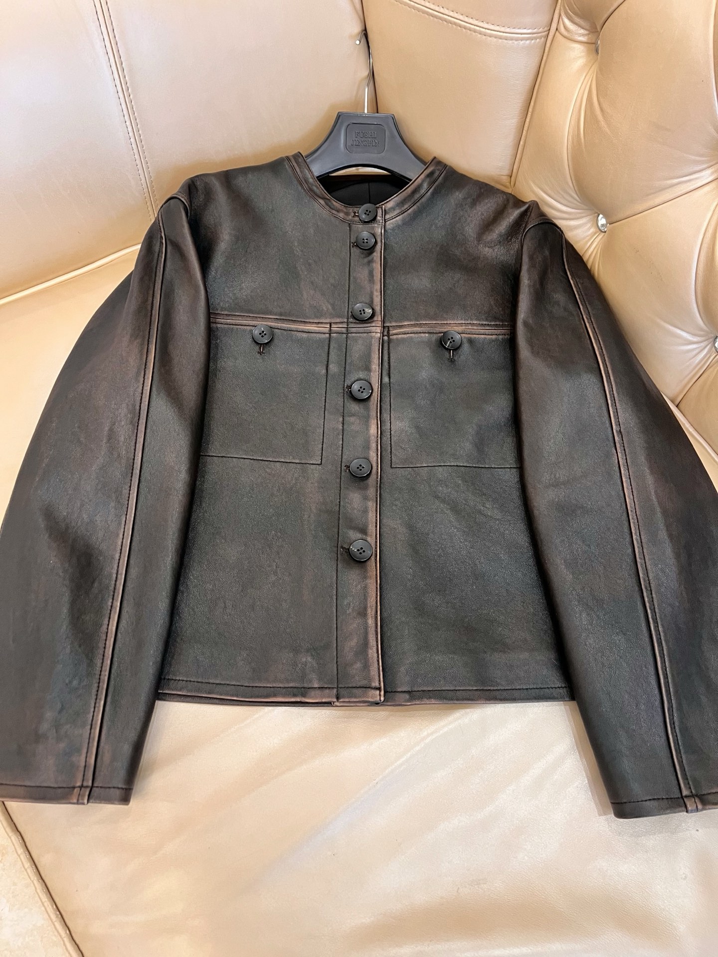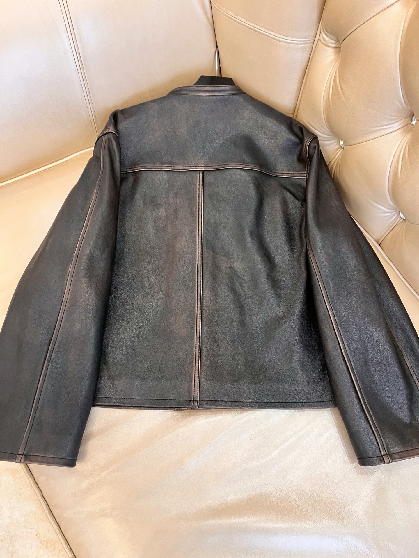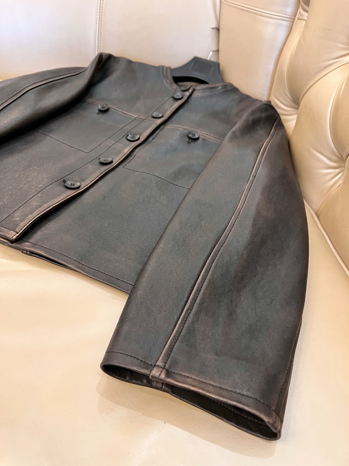 Details: Exclusive early spring lambskin jacket vest, vintage style, classic motorcycle silhouette. High - end custom, fine workmanship