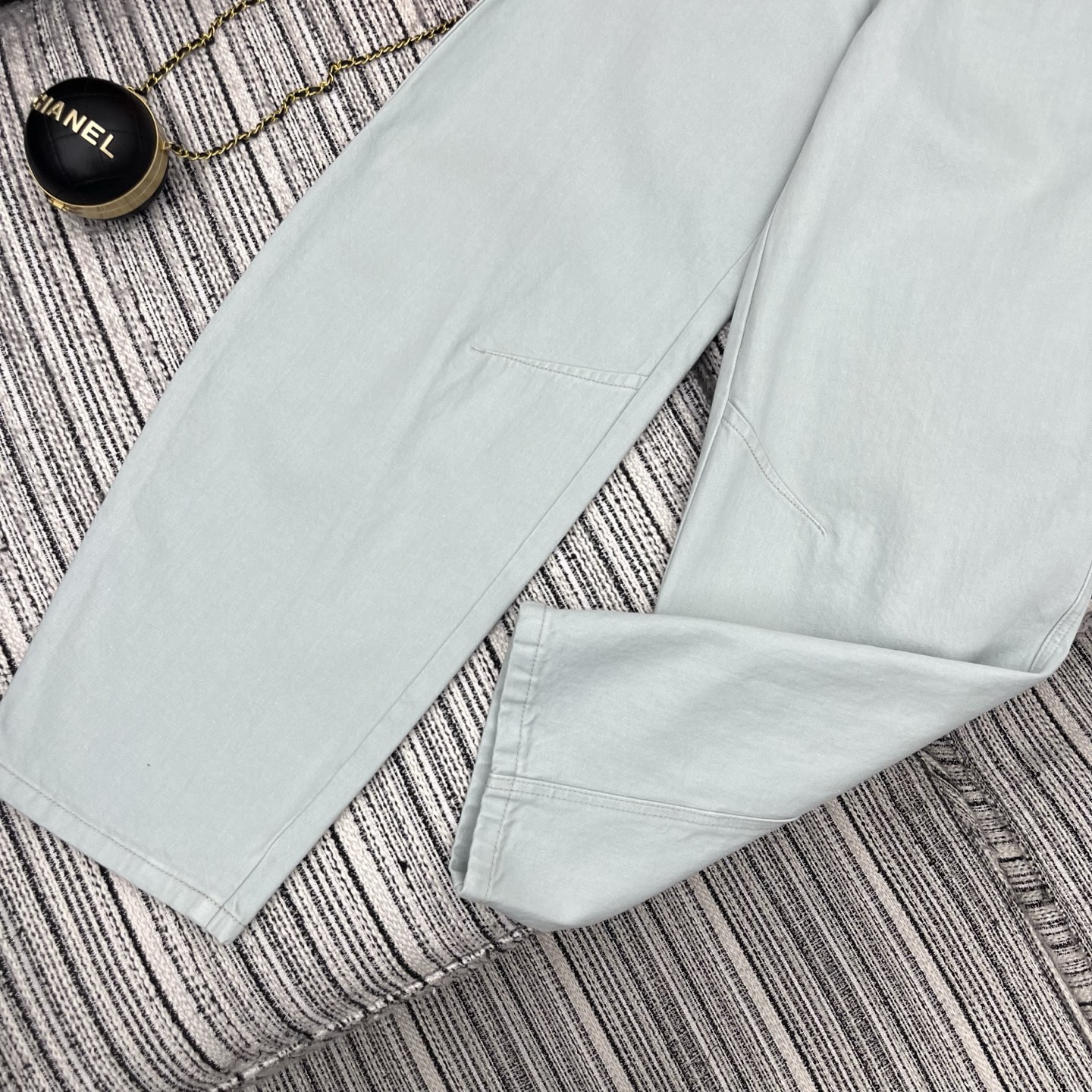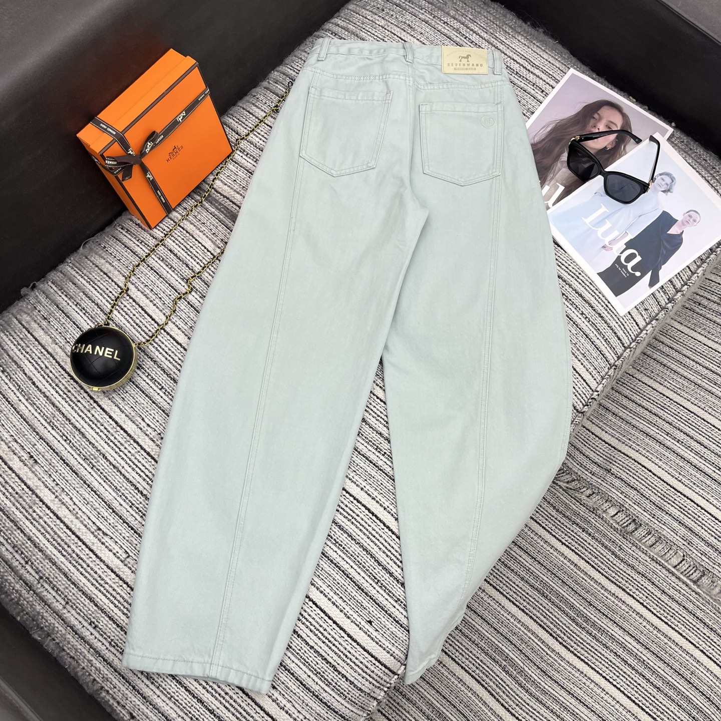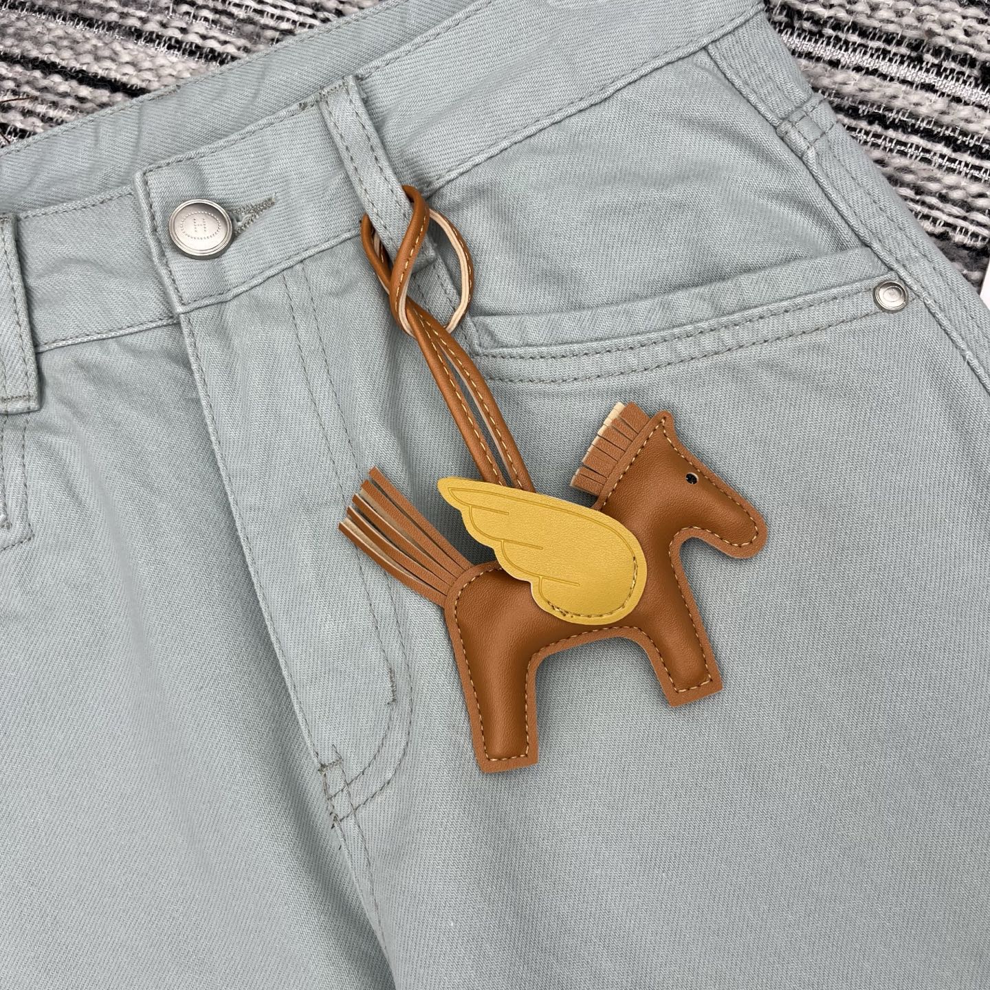 Details: New spring machete jeans with leather pony accessory, two colors.