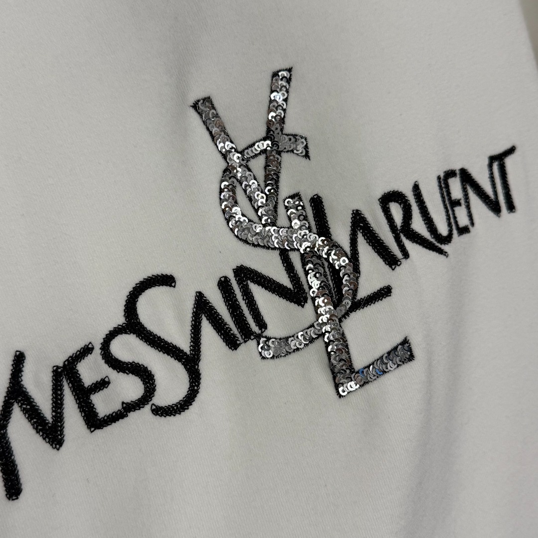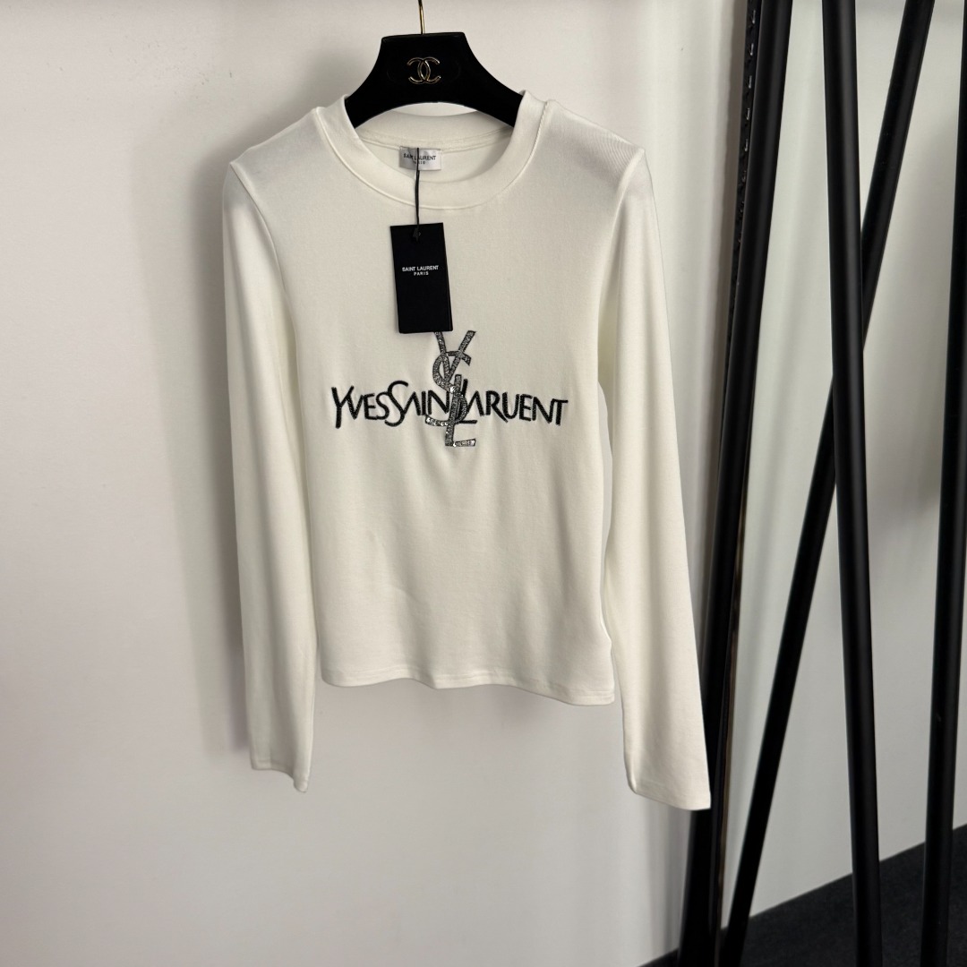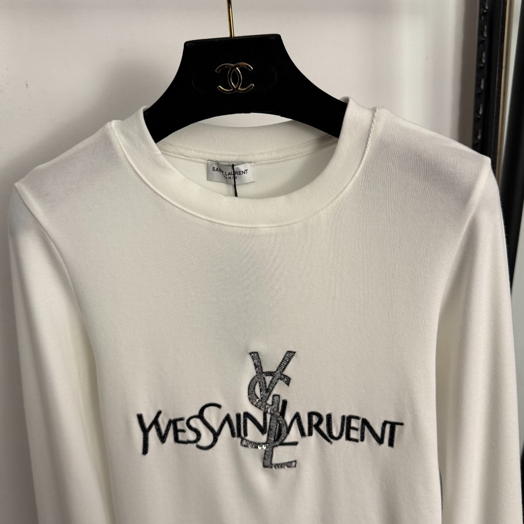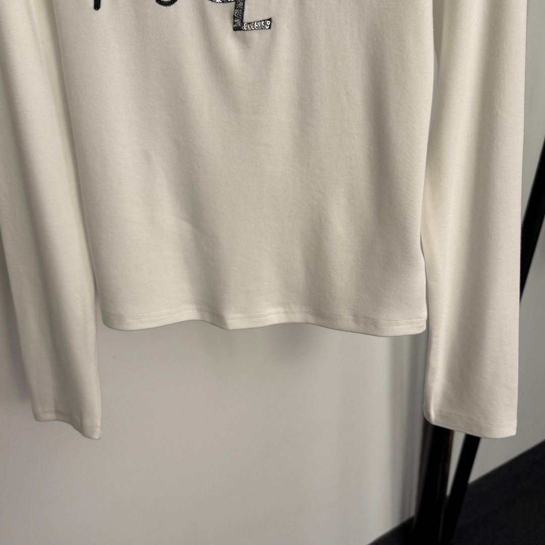Details: New cotton long - sleeved T - shirt with sequined letter embroidery, available in white and black, premium customized with exquisite craftsmanship
