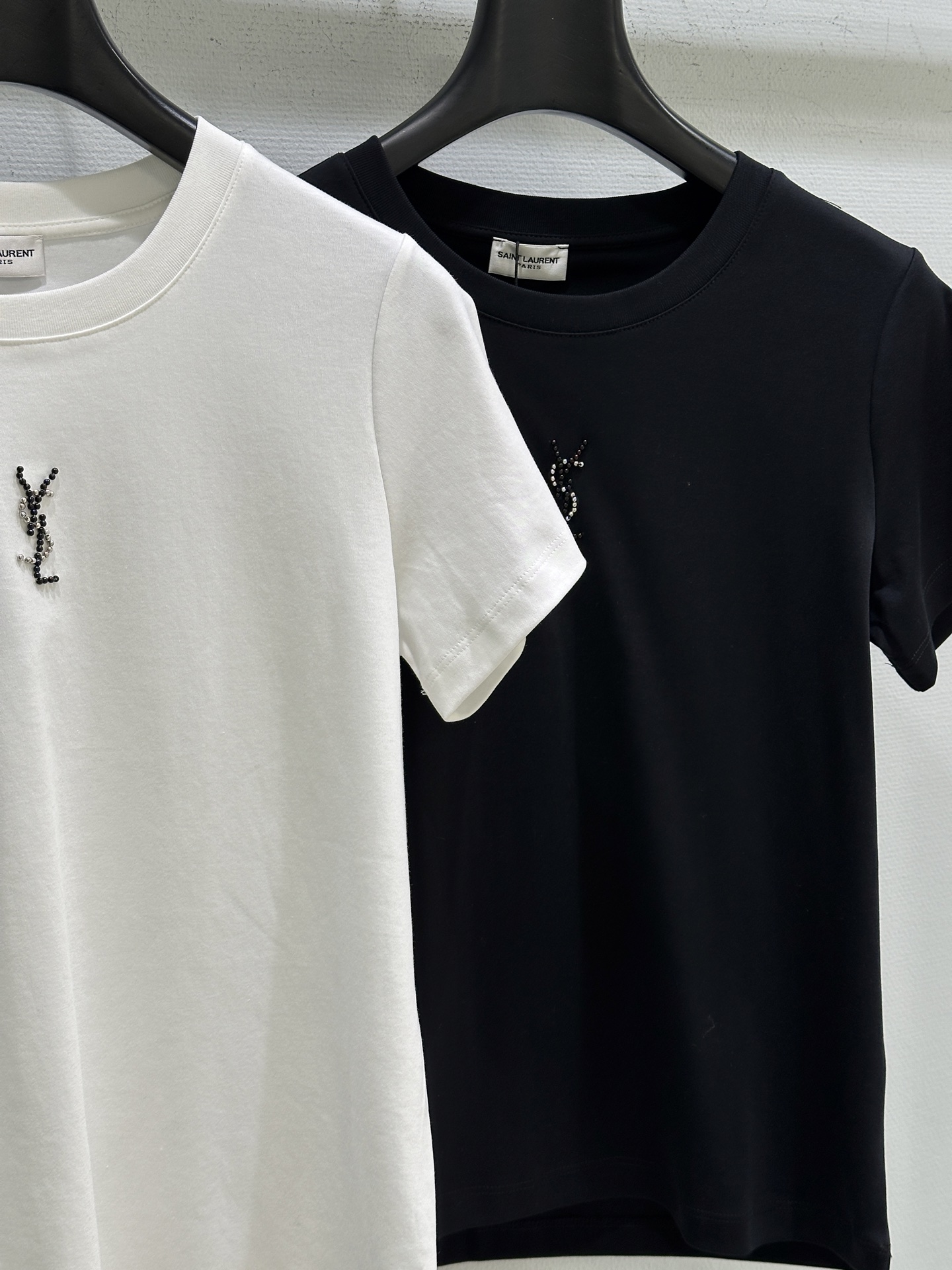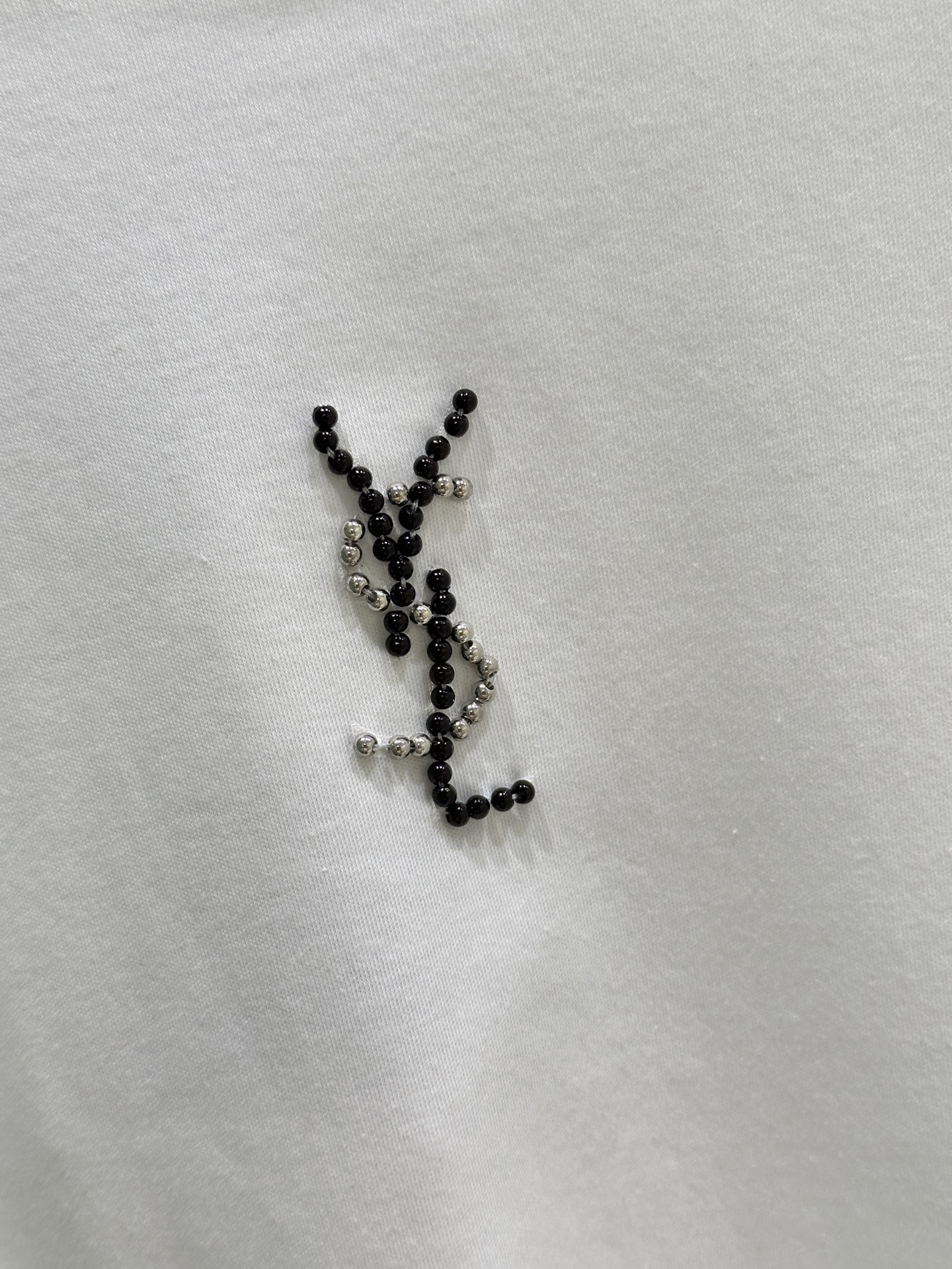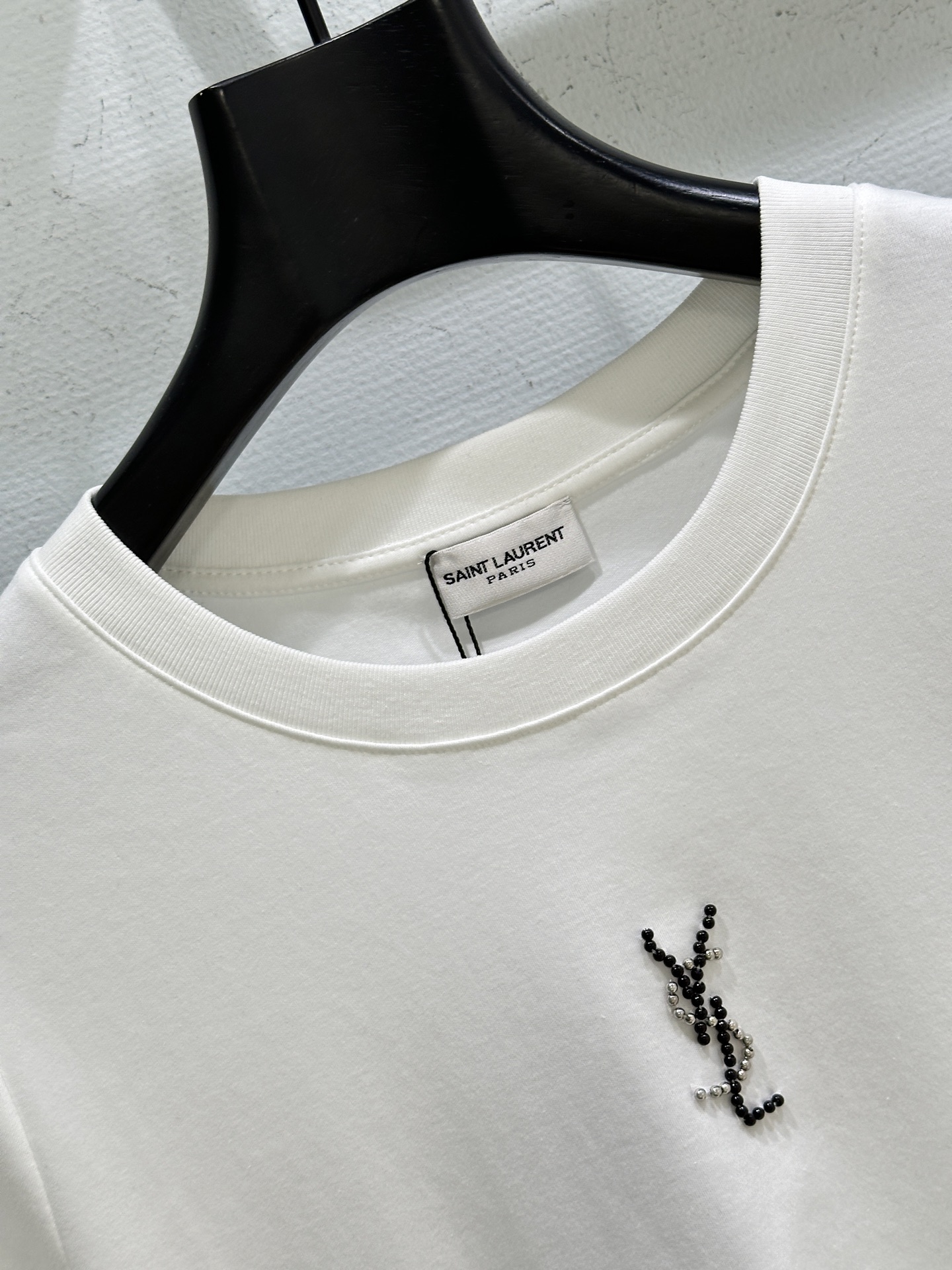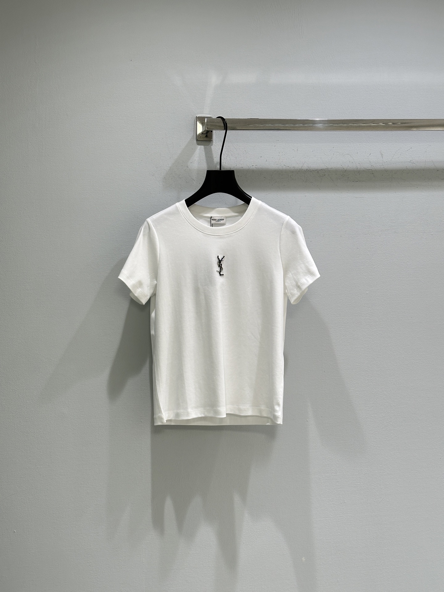 Details: Early spring new tee made of pure cotton, ensuring softness and comfort, featuring a classic YSL beaded and diamond-hot-drilled chest design, with a slim and adaptable fit.