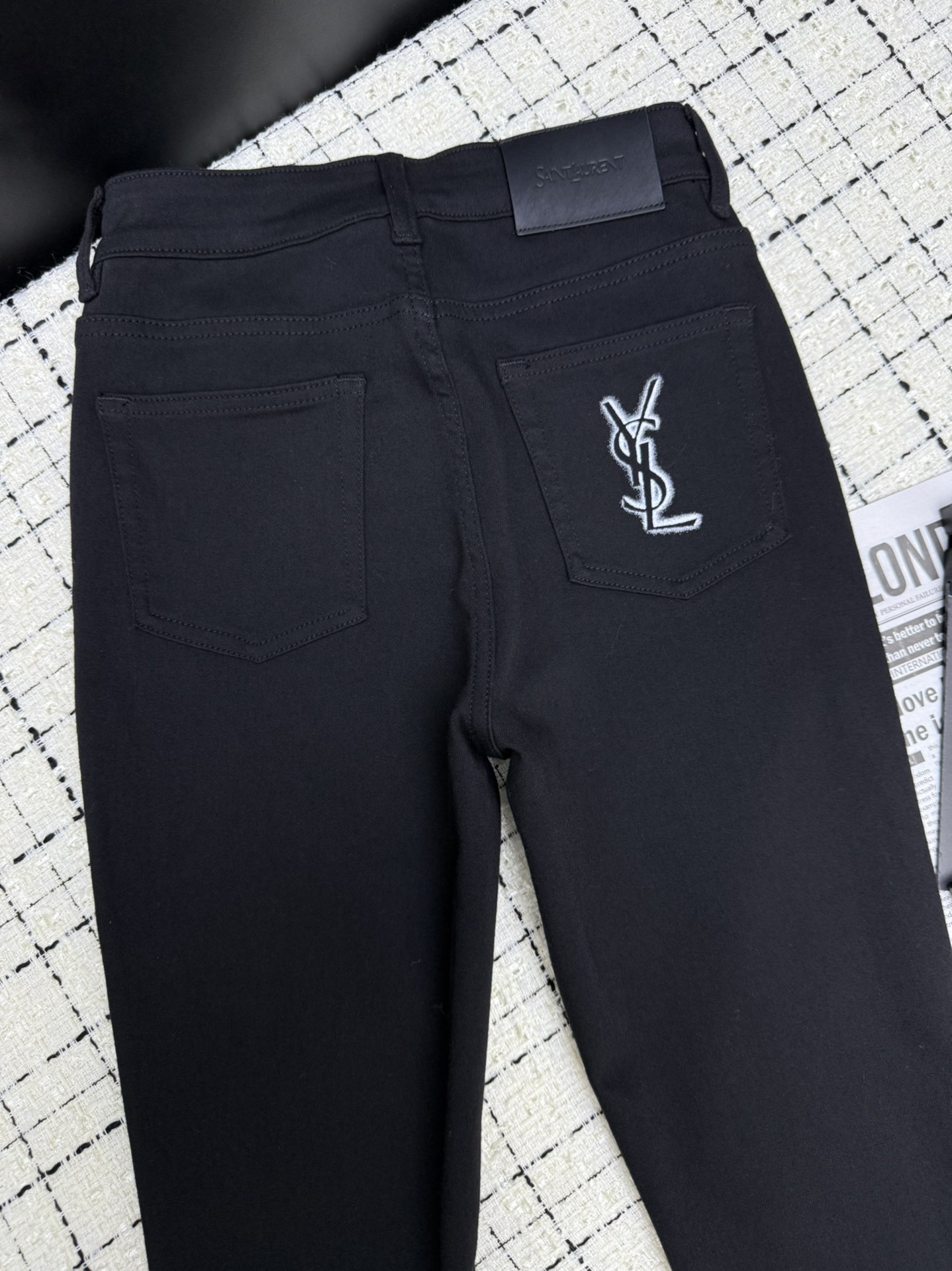 Details: Denim pants for spring-summer, adorned with a printed logo, featuring a mid-high waist and skinny fit for a comfortable and fashionable appearance.