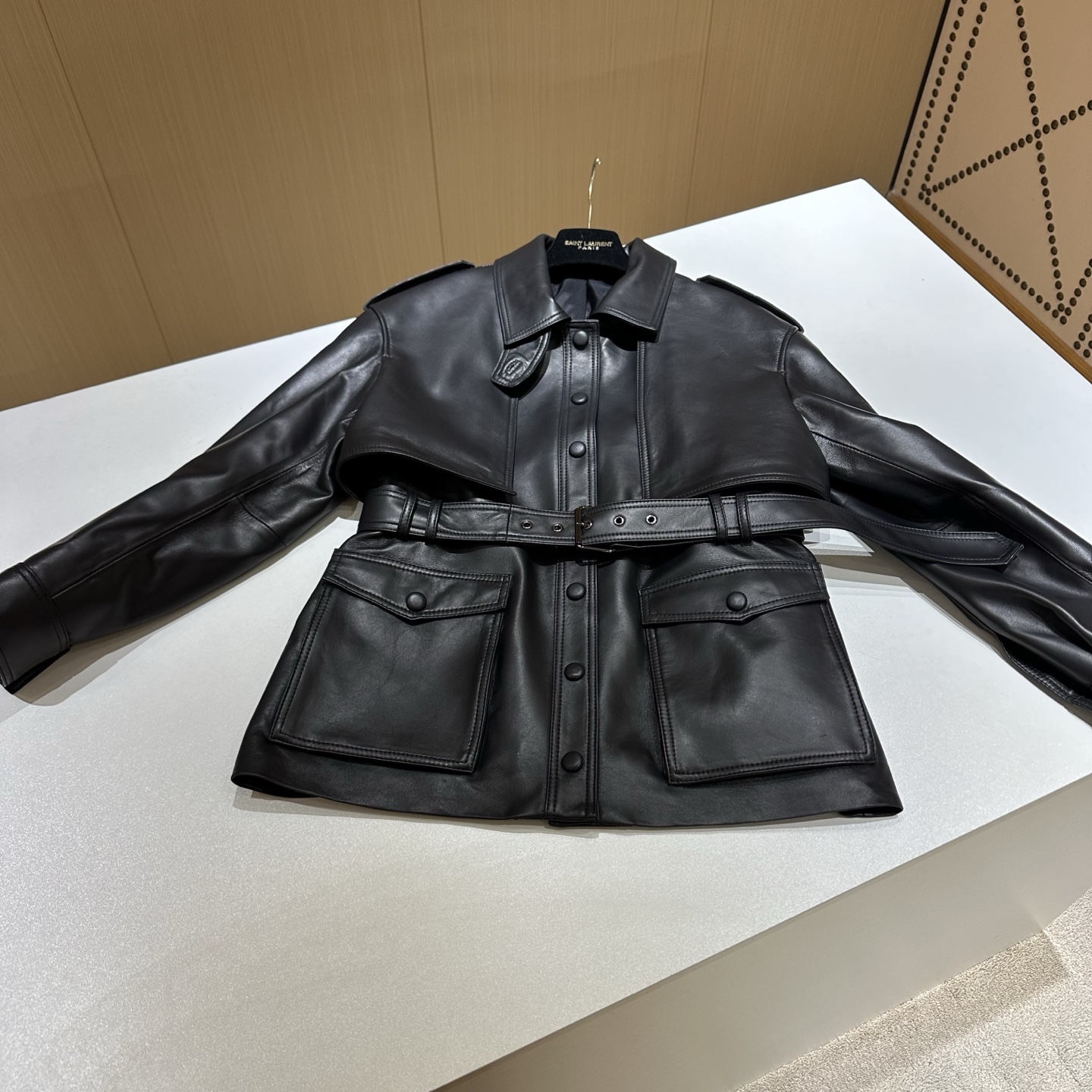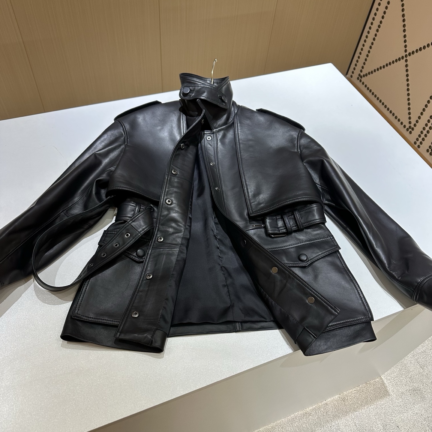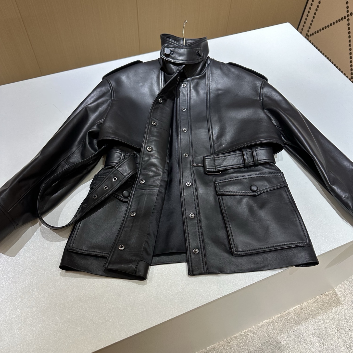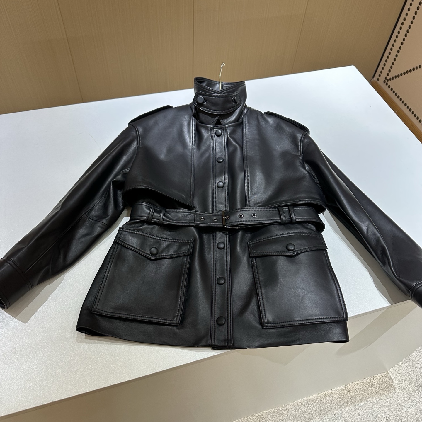 Details: Spring Exclusive: Elegant Leather Jacket, Available in Two Sizes and Two Colors, Crafted from High-End Imported Lambskin