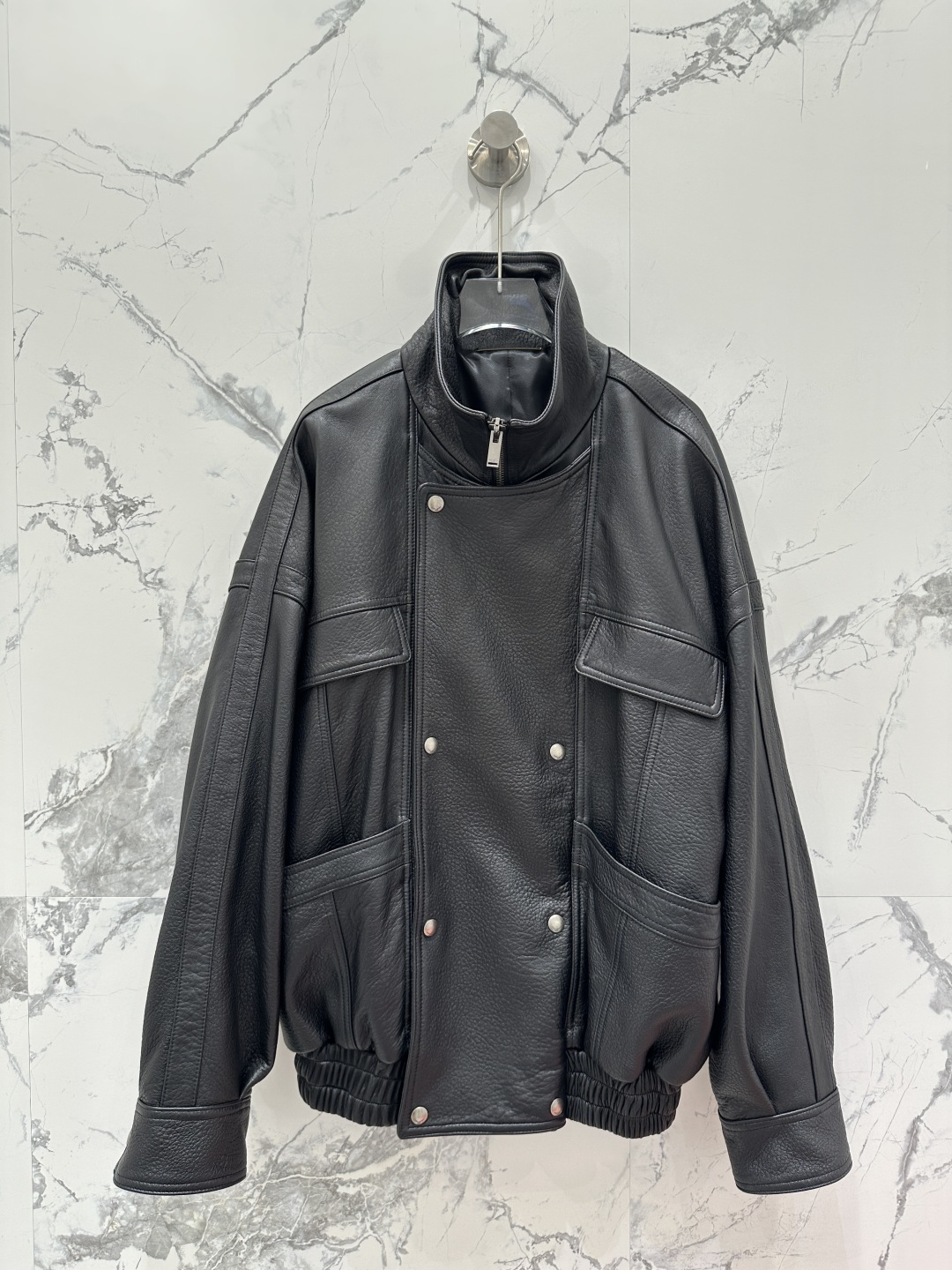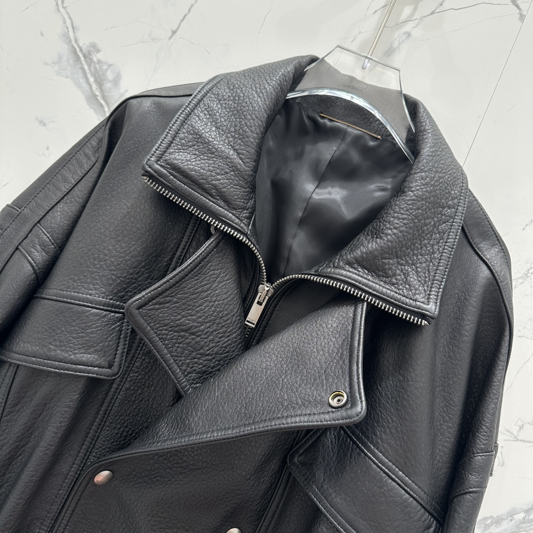 Details: Exclusive early autumn double-breasted lambskin motorcycle jacket, unisex, couple style, delicate leather, stylish collar. High-end custom, fine workmanship