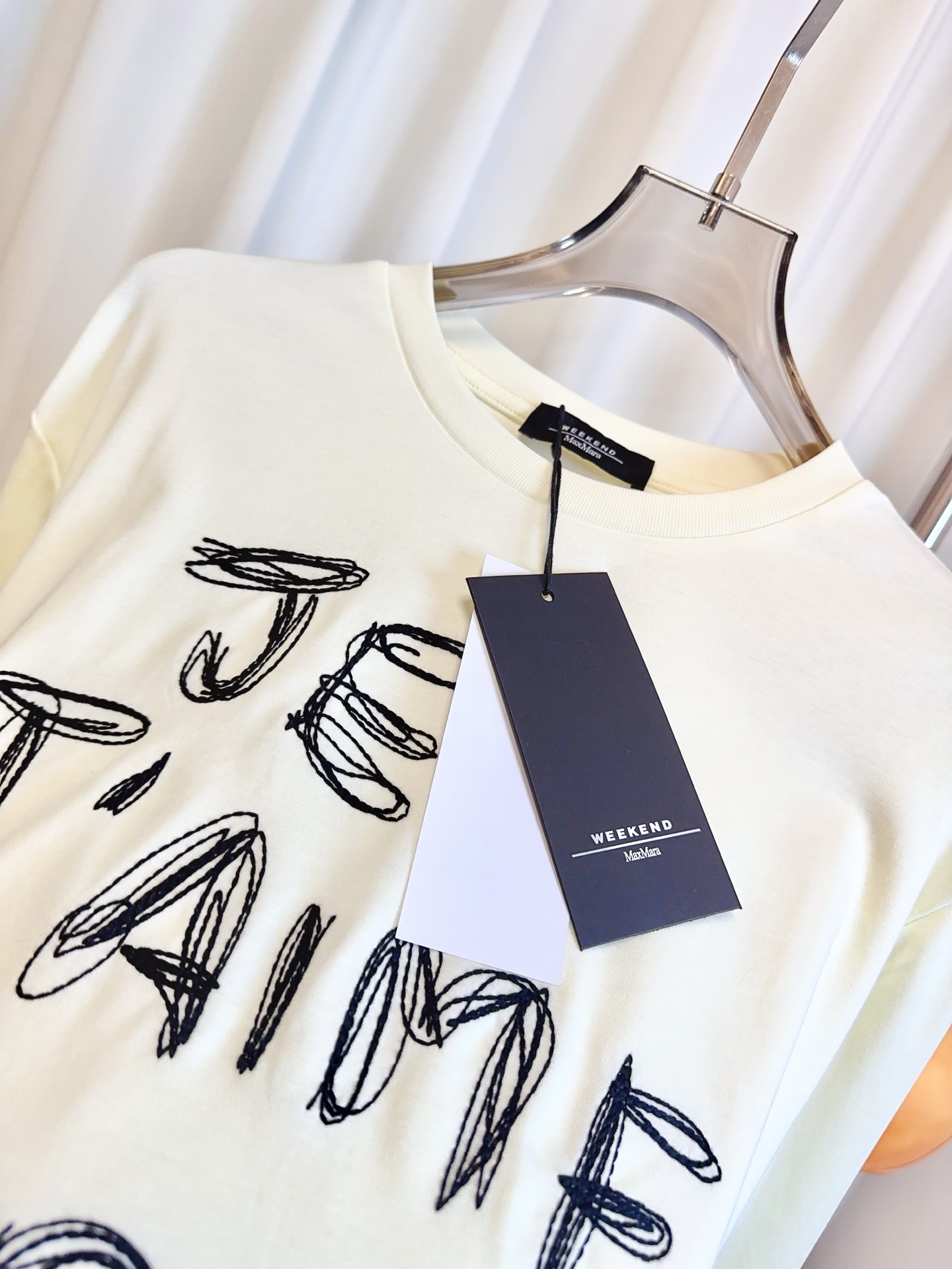 Details: New embroidered logo T - shirt made of customized cotton, soft and breathable, ideal for women s daily wear.