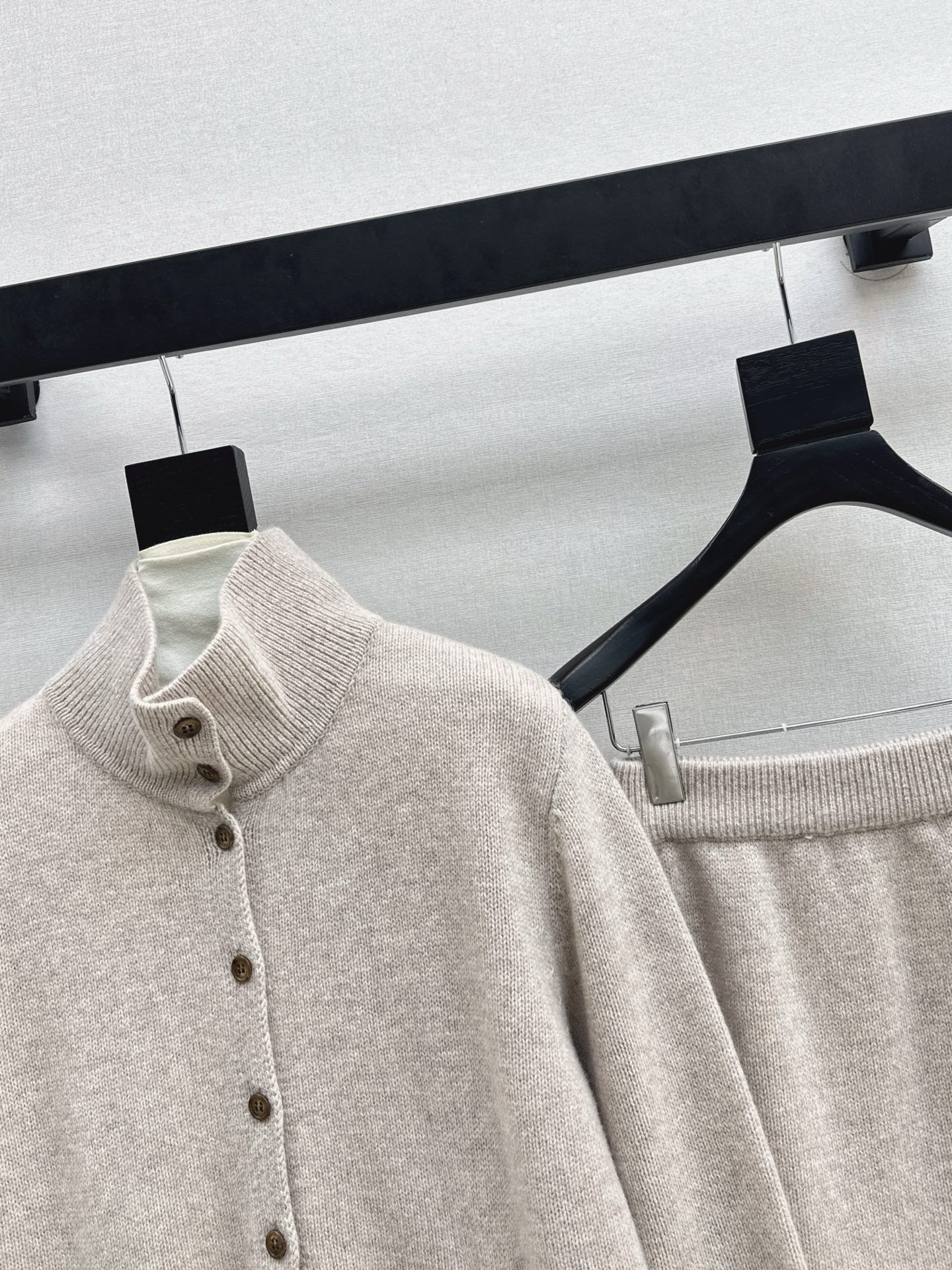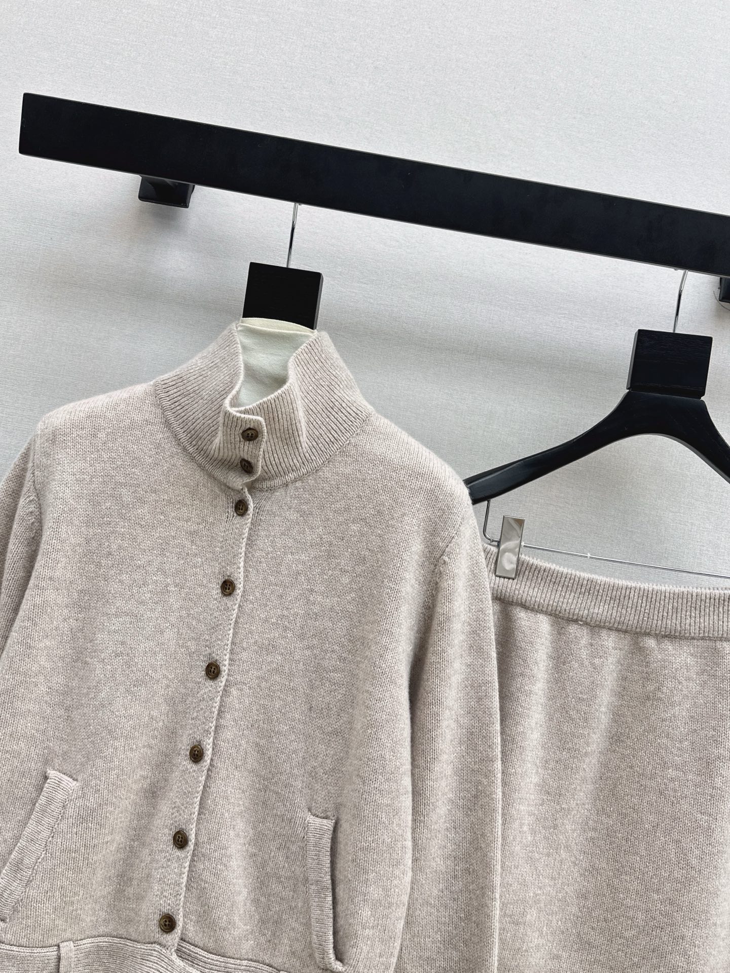 Details: Early spring lazy wool suit consisting of a collar jacket and elastic skirt, soft and fashionable, high-end custom with fine workmanship