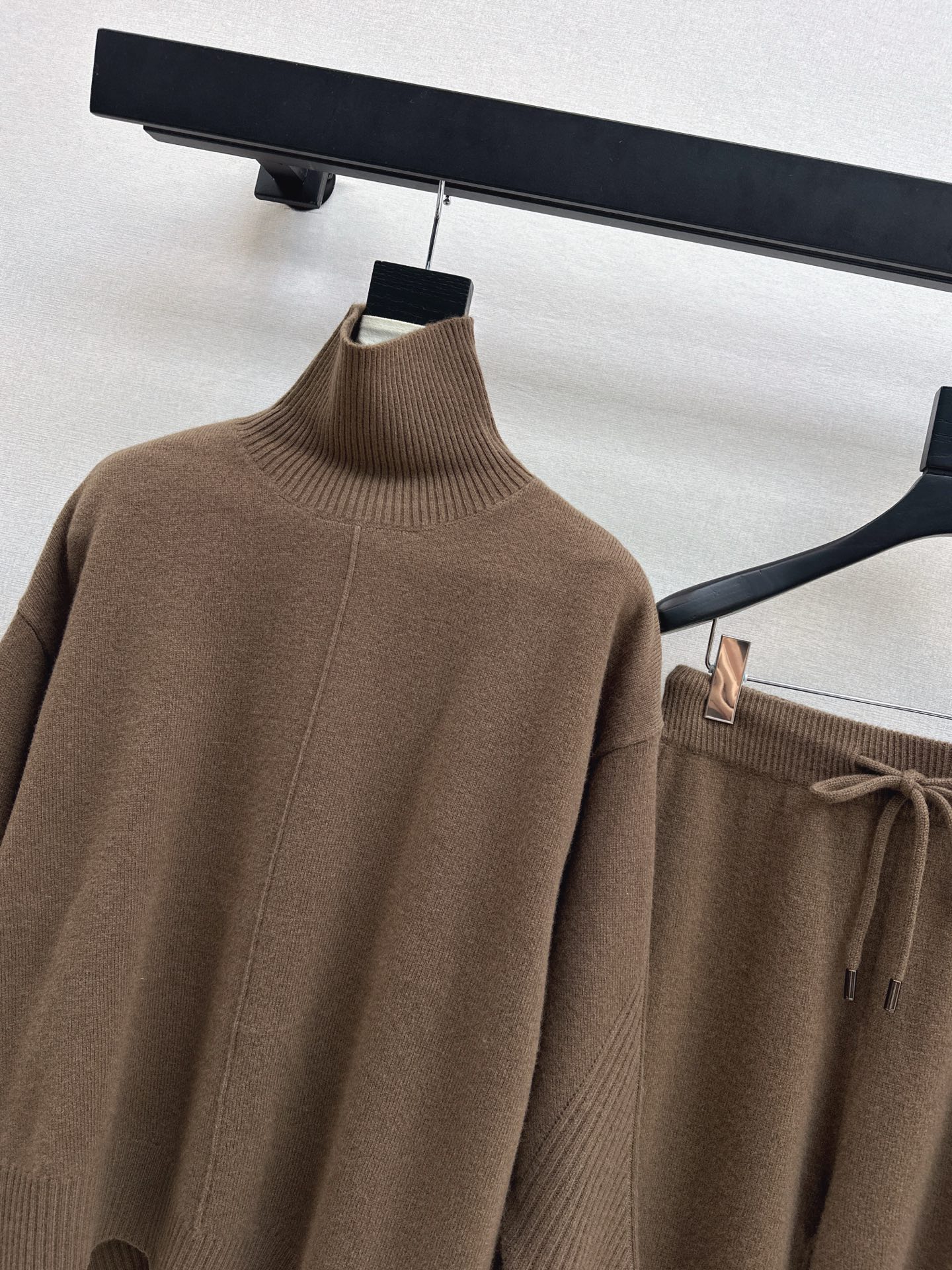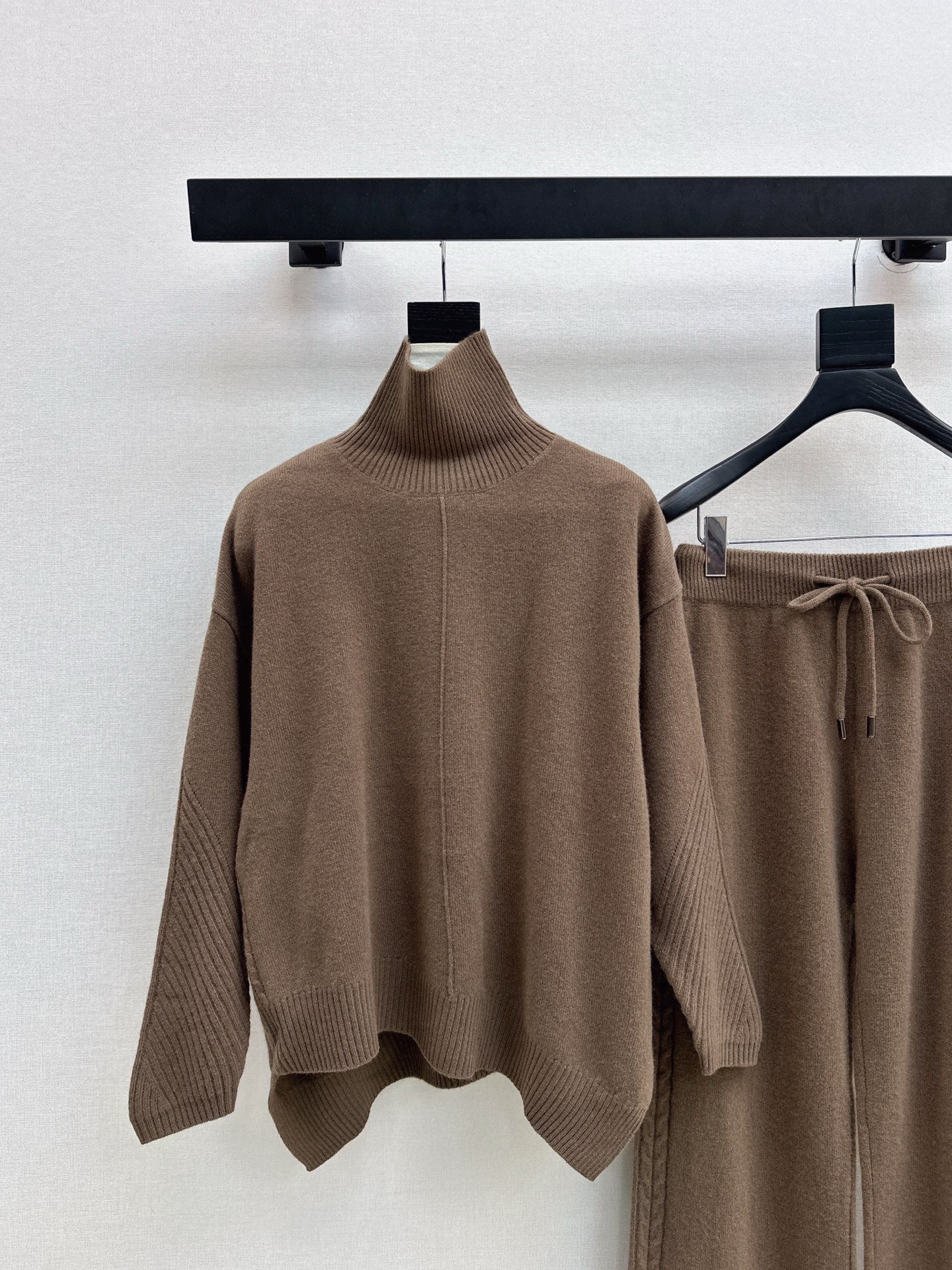 Details: Cozy winter wool suit with high - collar sweater and wide - leg pants, 3 colors available. High - end customization, fine workmanship