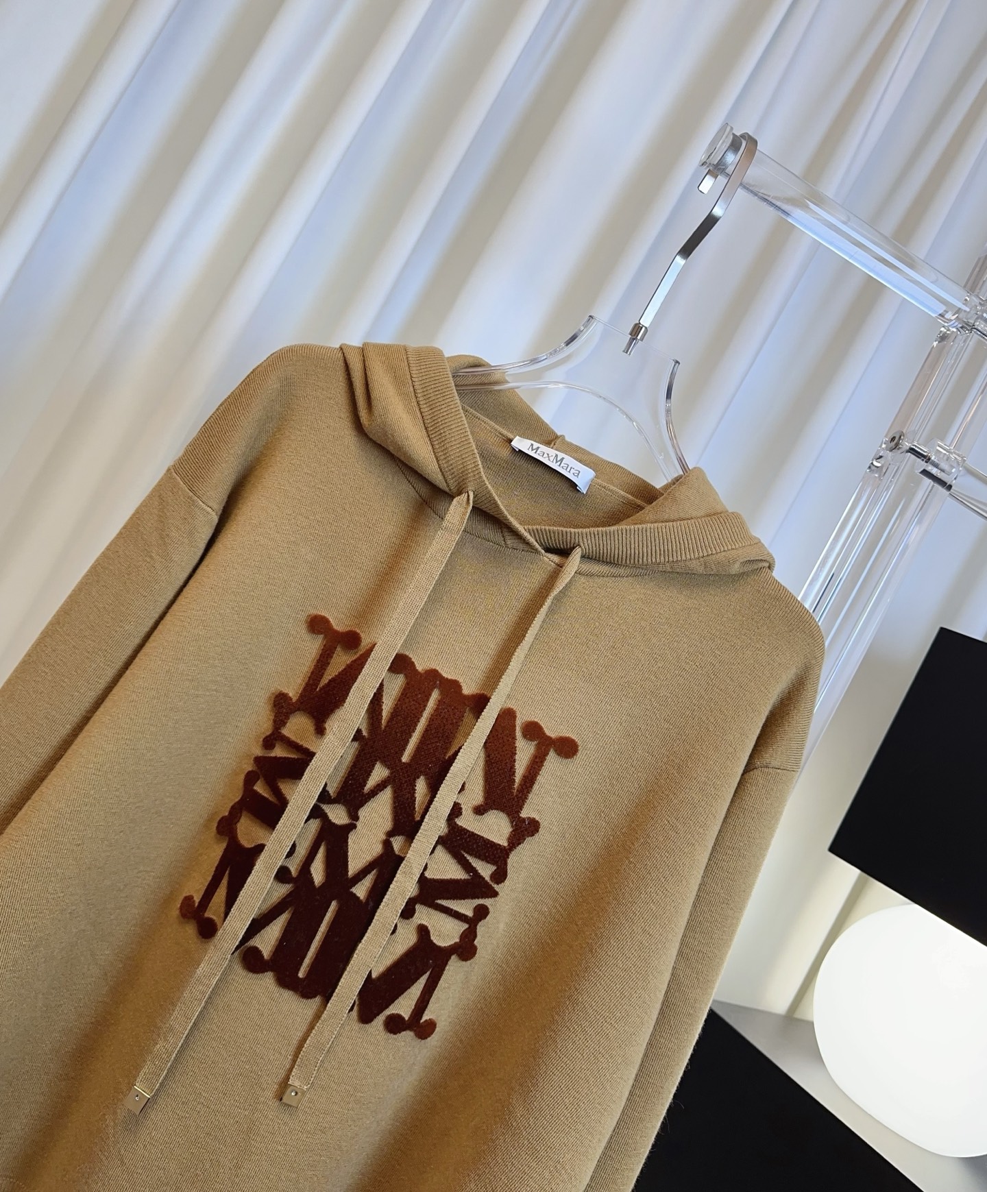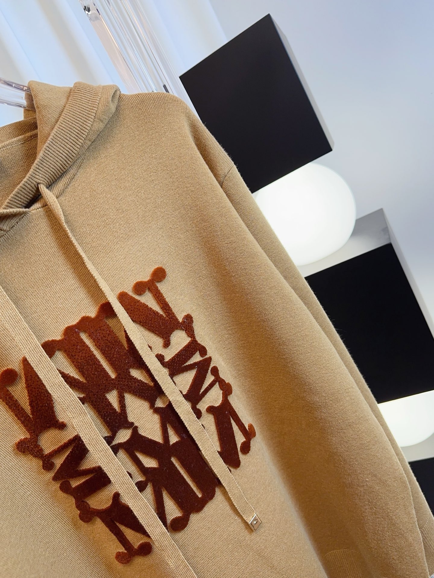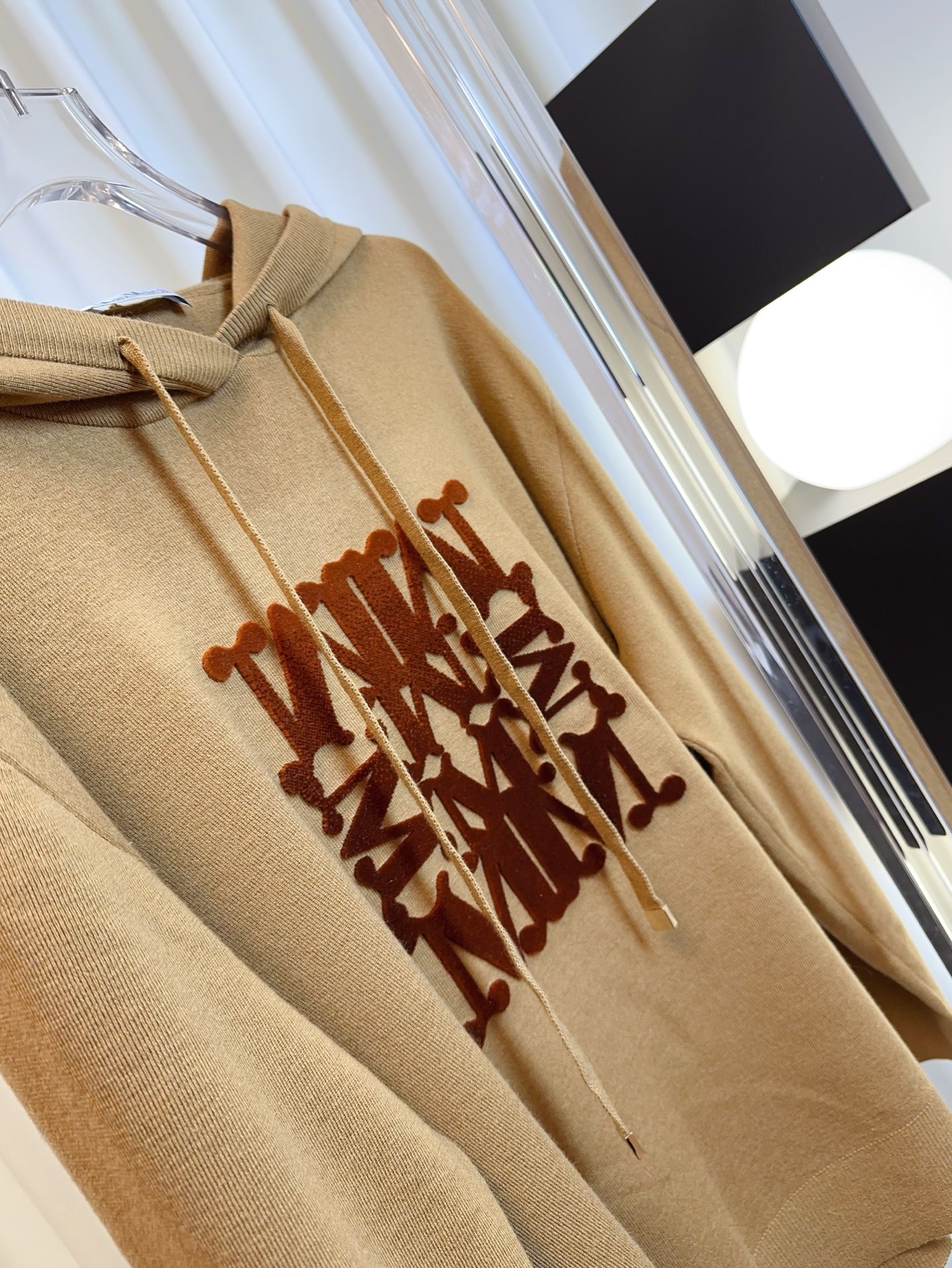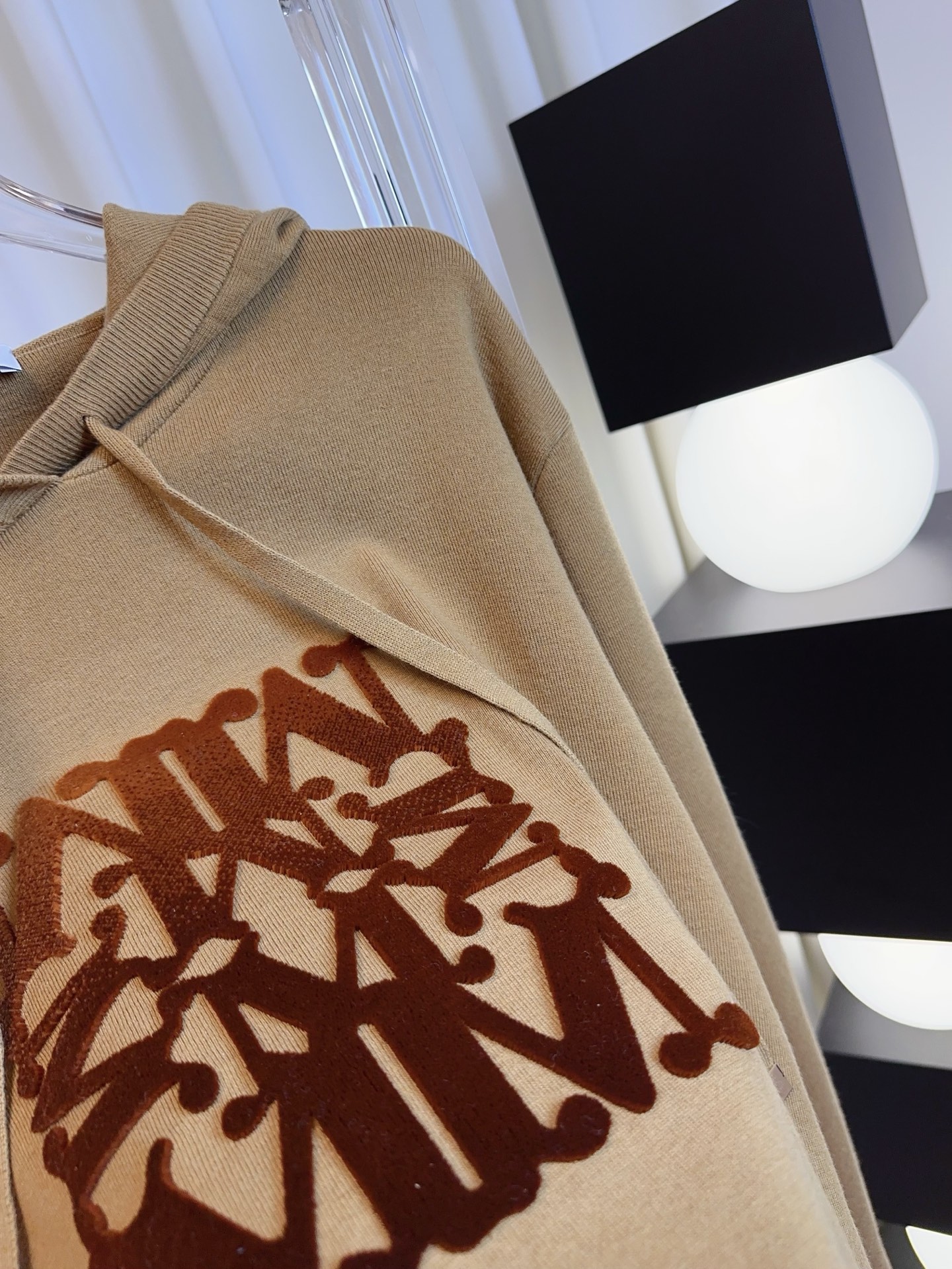 Details: New logo wool hoodie in beige and brown, made of customized wool, soft, breathable and stylish