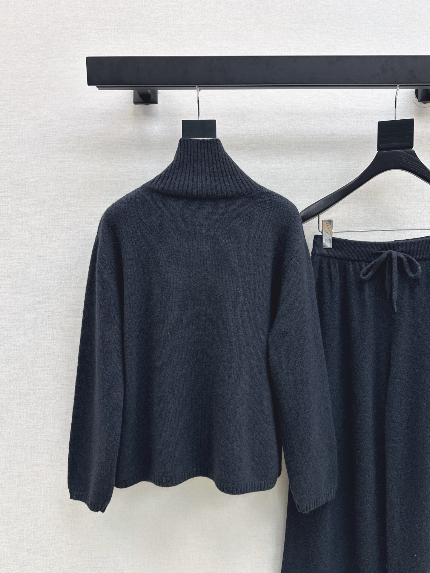 Details: Autumn knitted suit, turtleneck sweater and straight-leg pants, elegant.