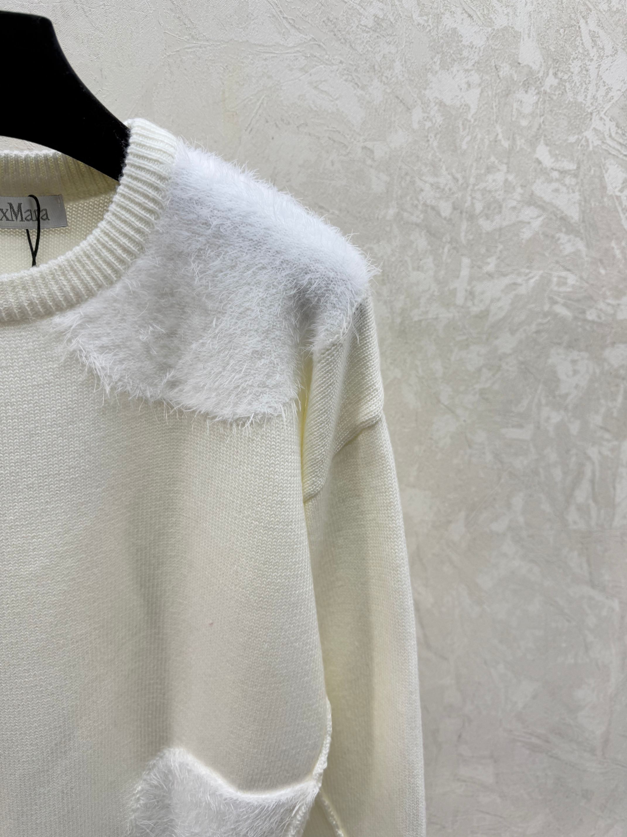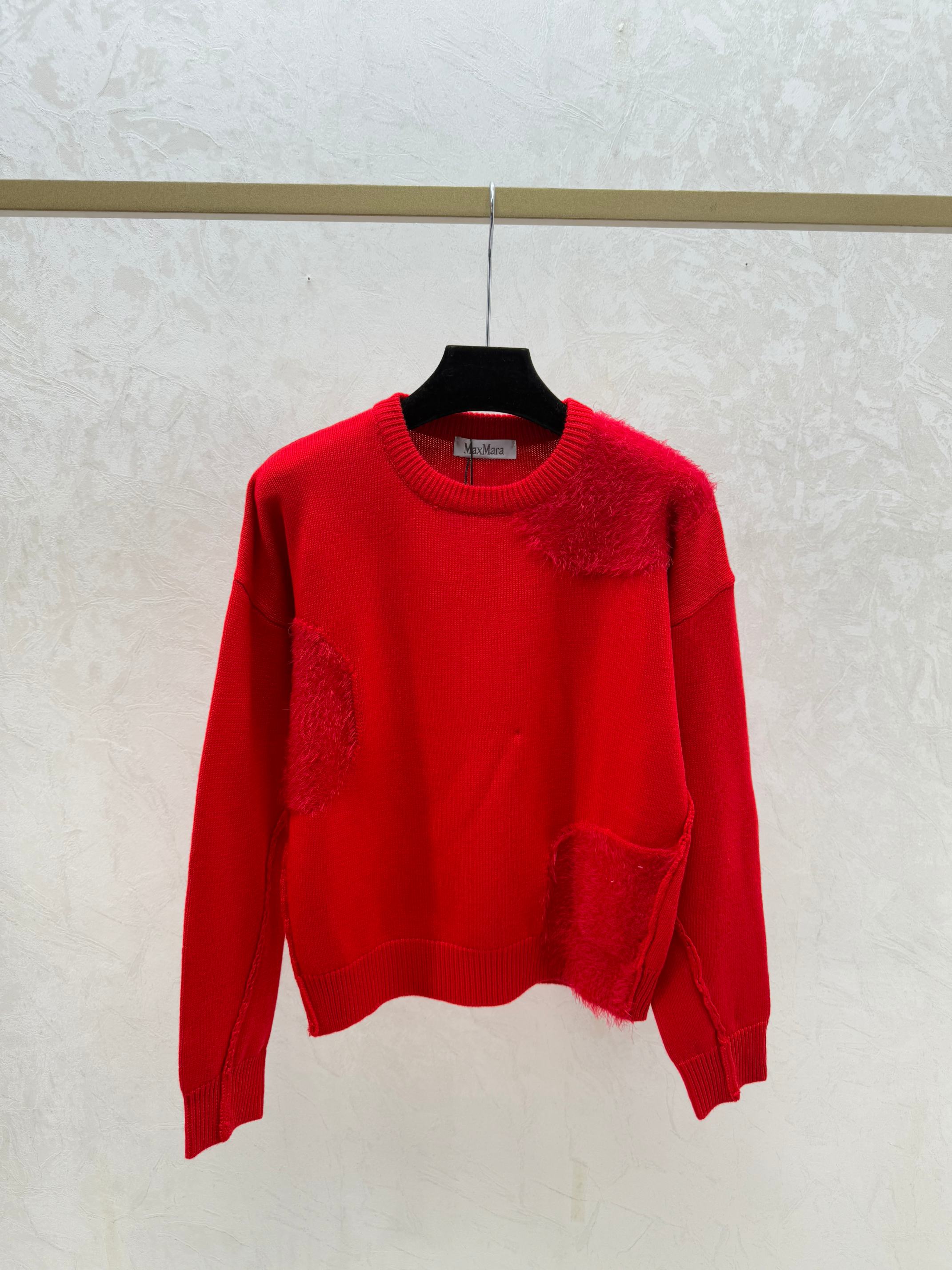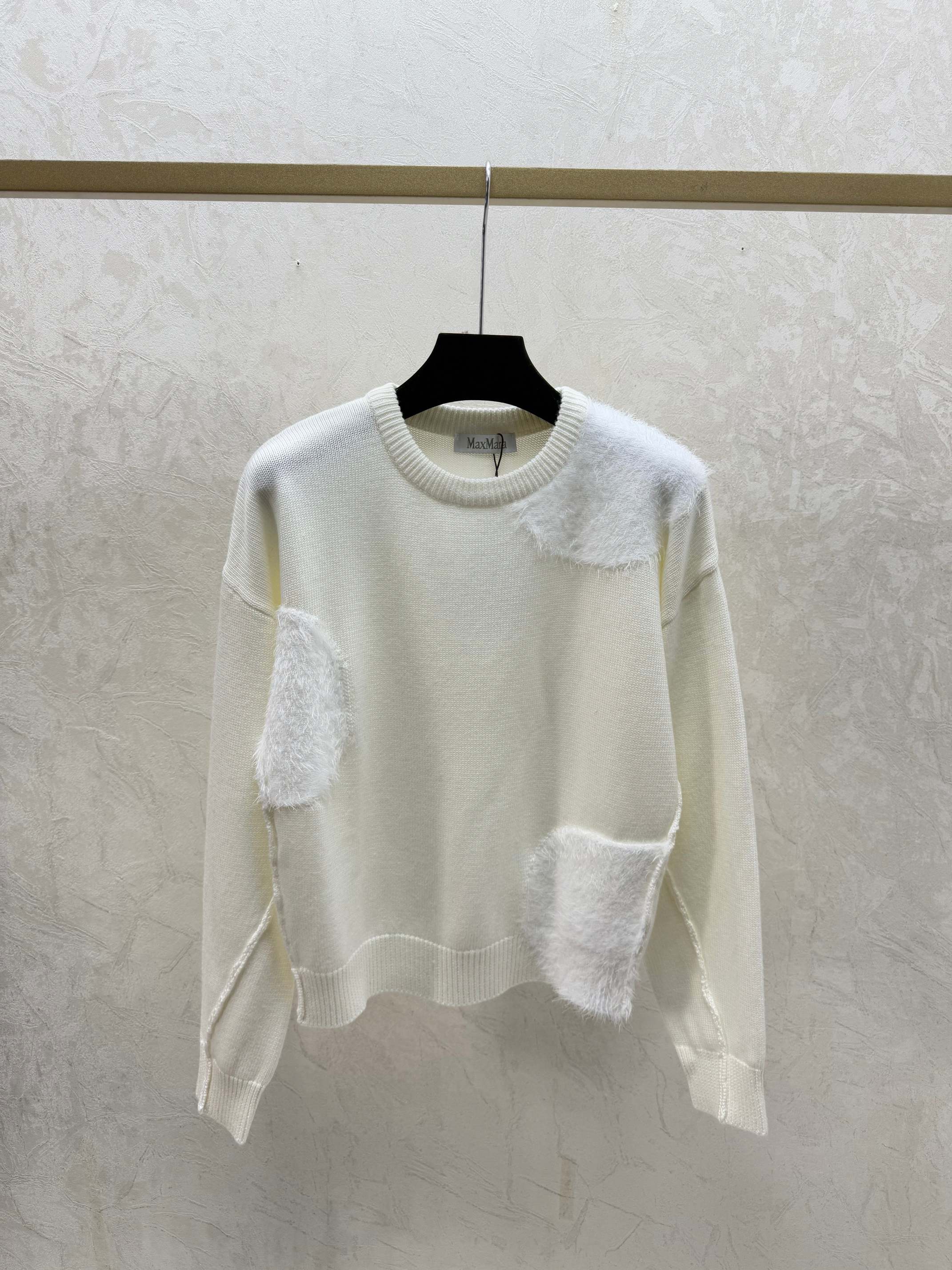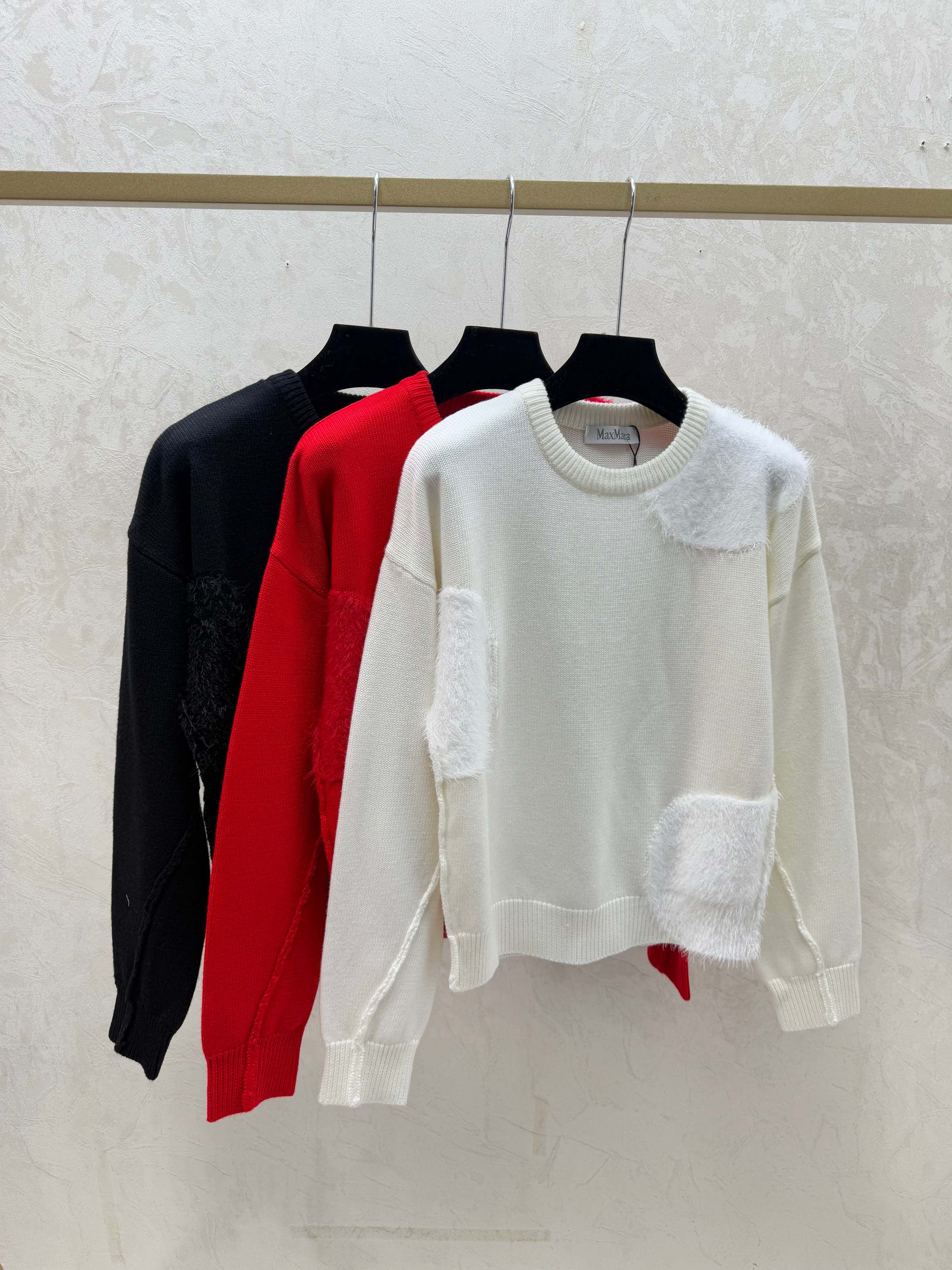 Details: Early autumn women s solid-color feather-decorated simple round-neck knitted long-sleeve in white, red, black, sizes 36 - 40, high-end customization, fine workmanship