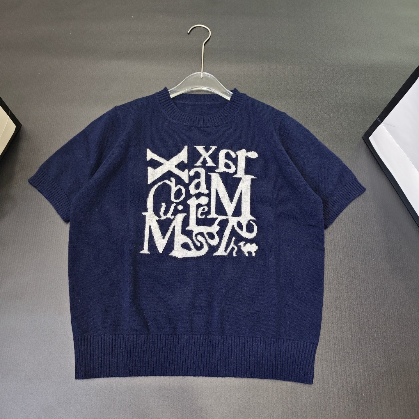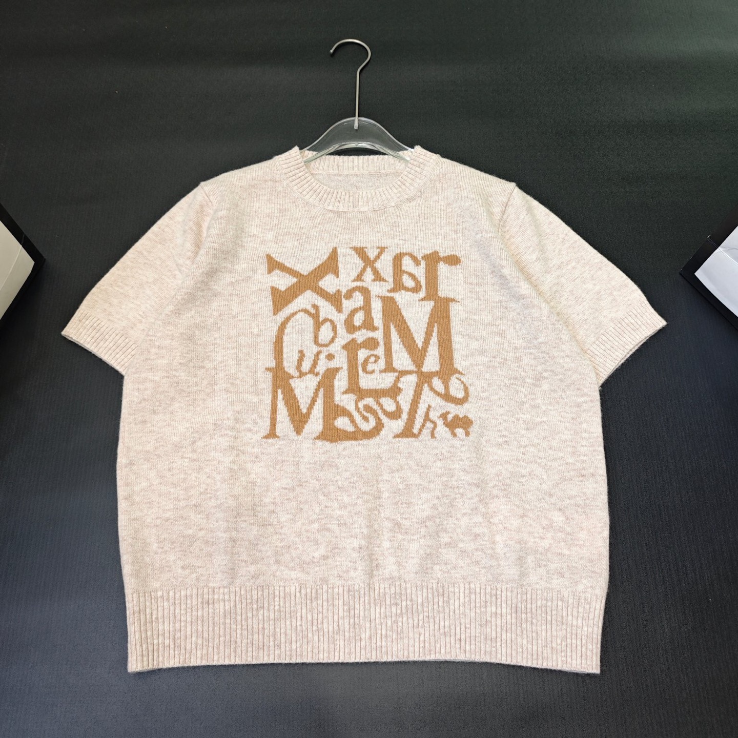 Max Mara Knit Top with Stylish Letter Short Sleeves