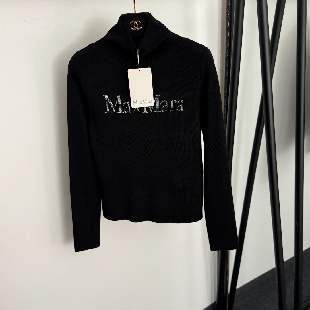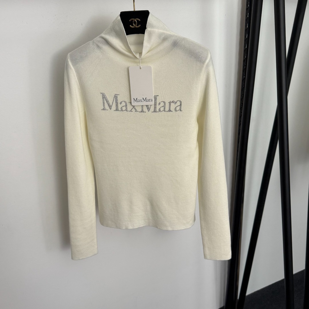 Details: New rhinestone - logoed long - sleeve knitted undershirt with a semi - high collar, available in beige and black, one - size - fits - all. High - end customization and fine workmanship