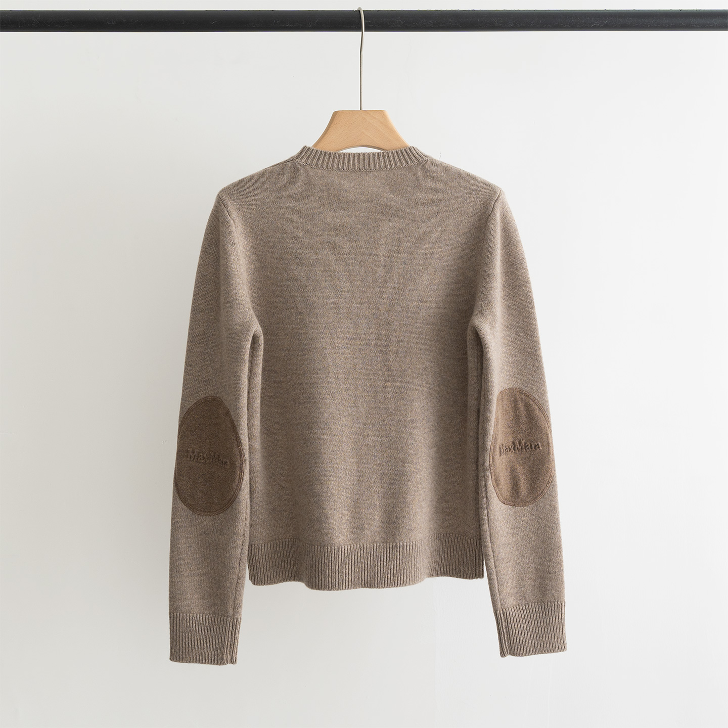 Details: Early spring versatile round neck cashmere blend knitwear with classic design, elbow patch and brand logo print, high - end custom - made with 1:1 original quality.