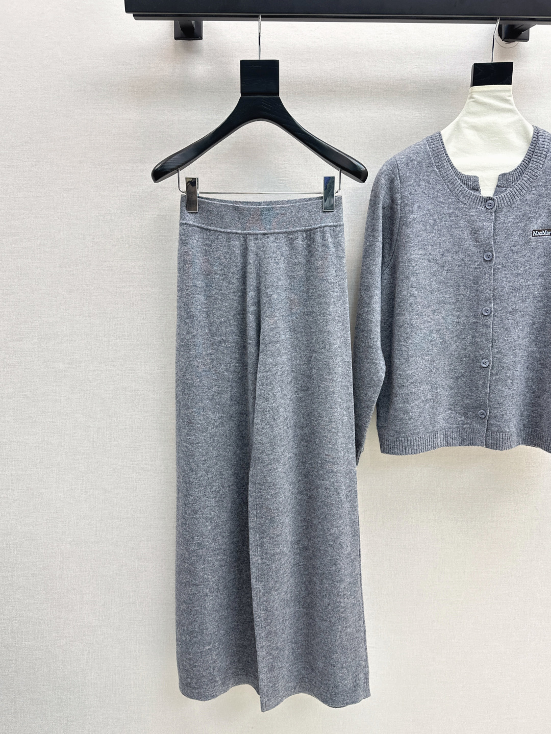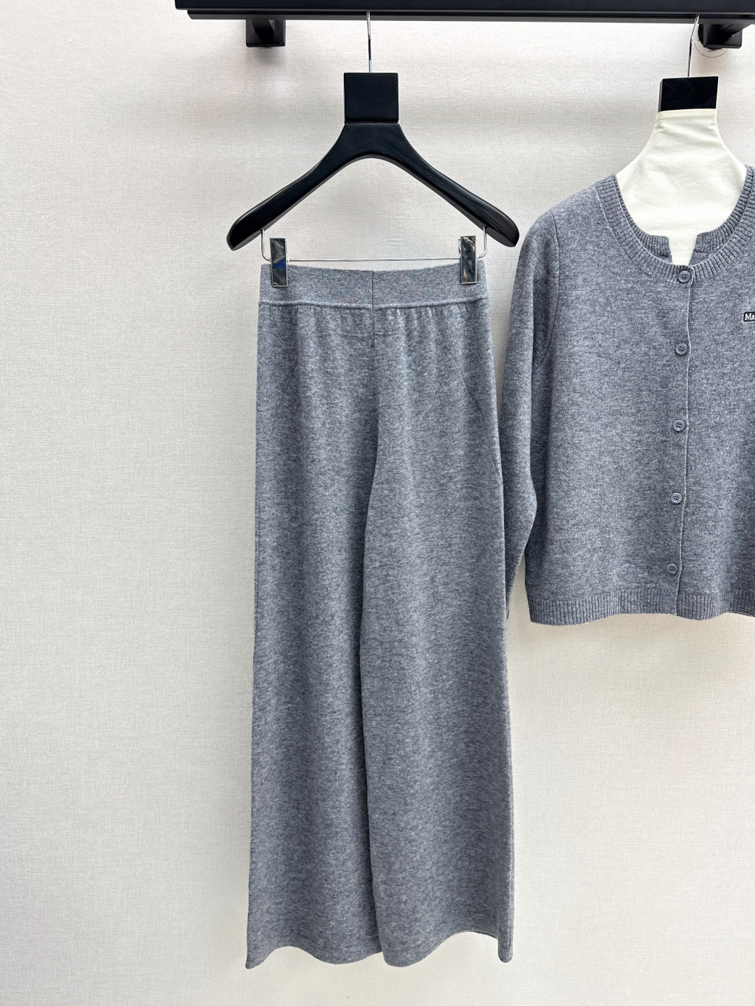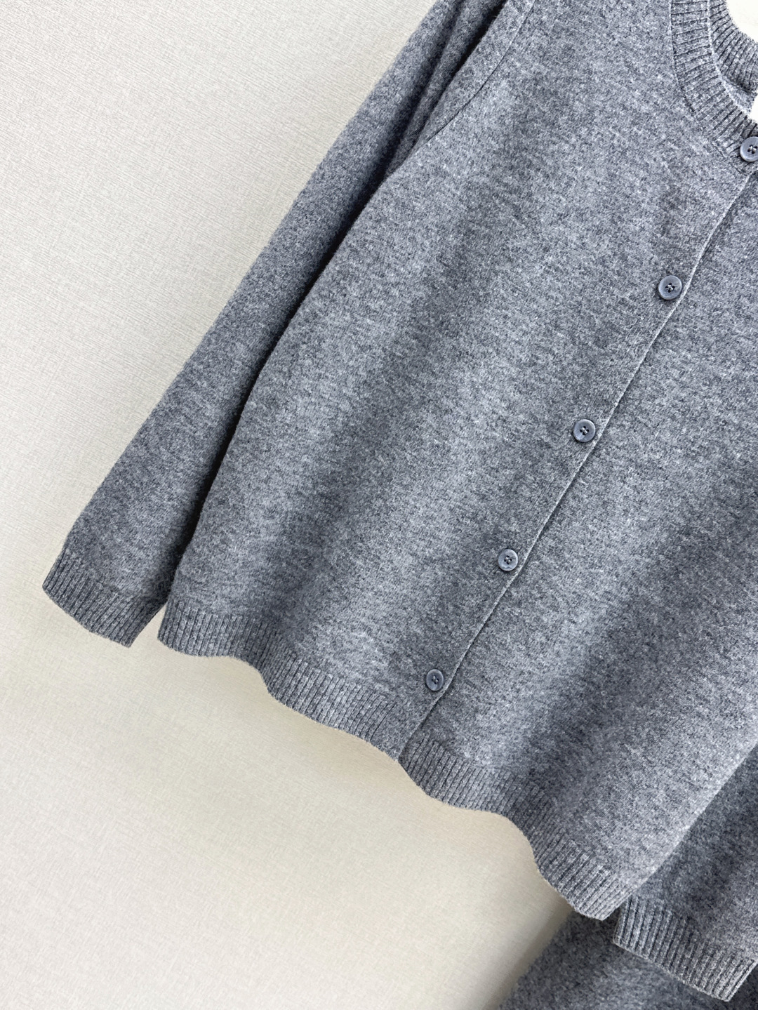 Details: Early autumn knitted suit, round-neck cardigan and straight-leg pants, wool fabric, high-end custom