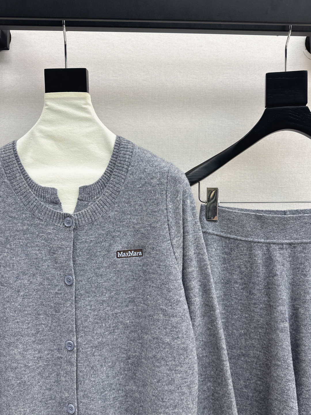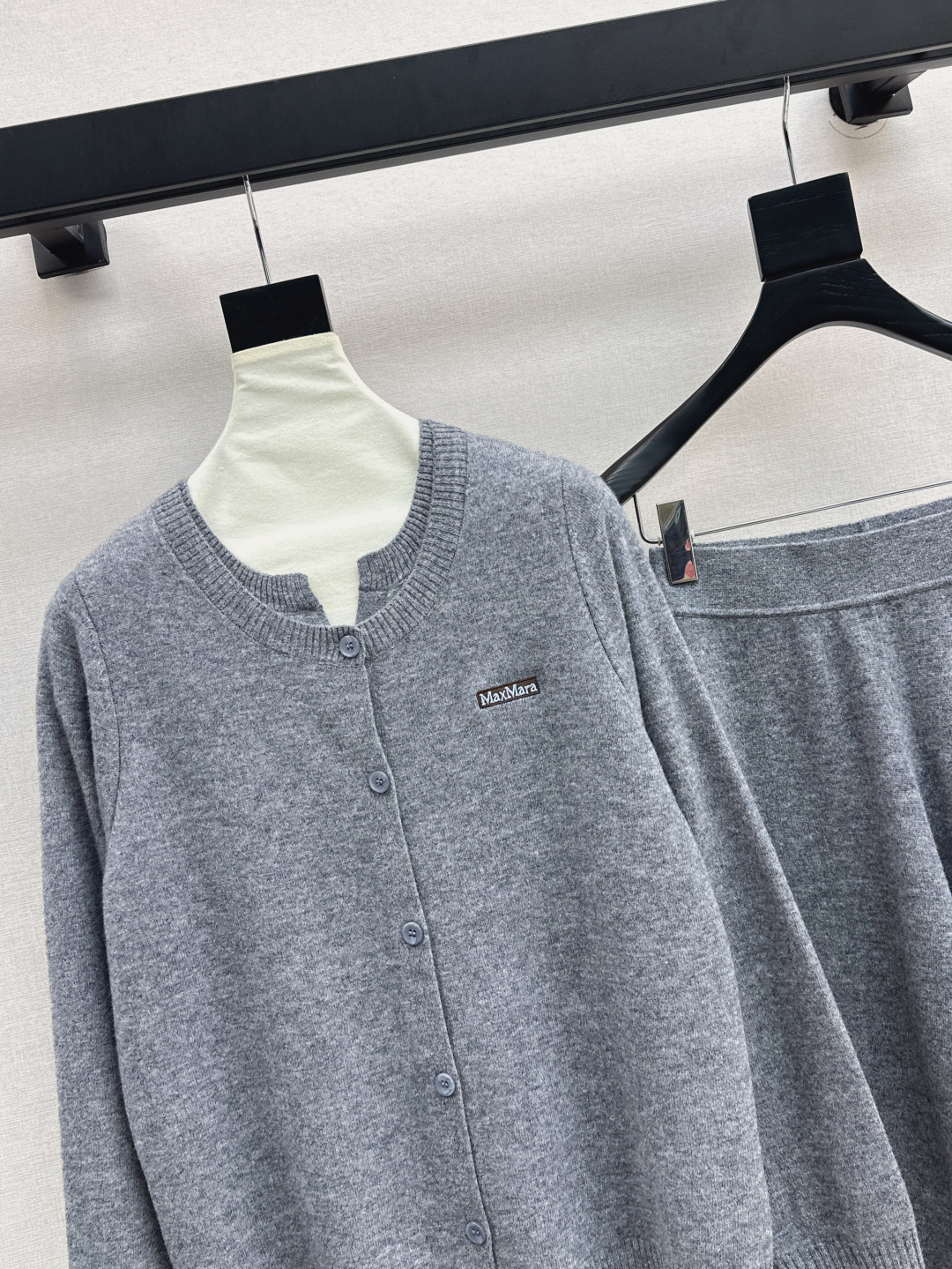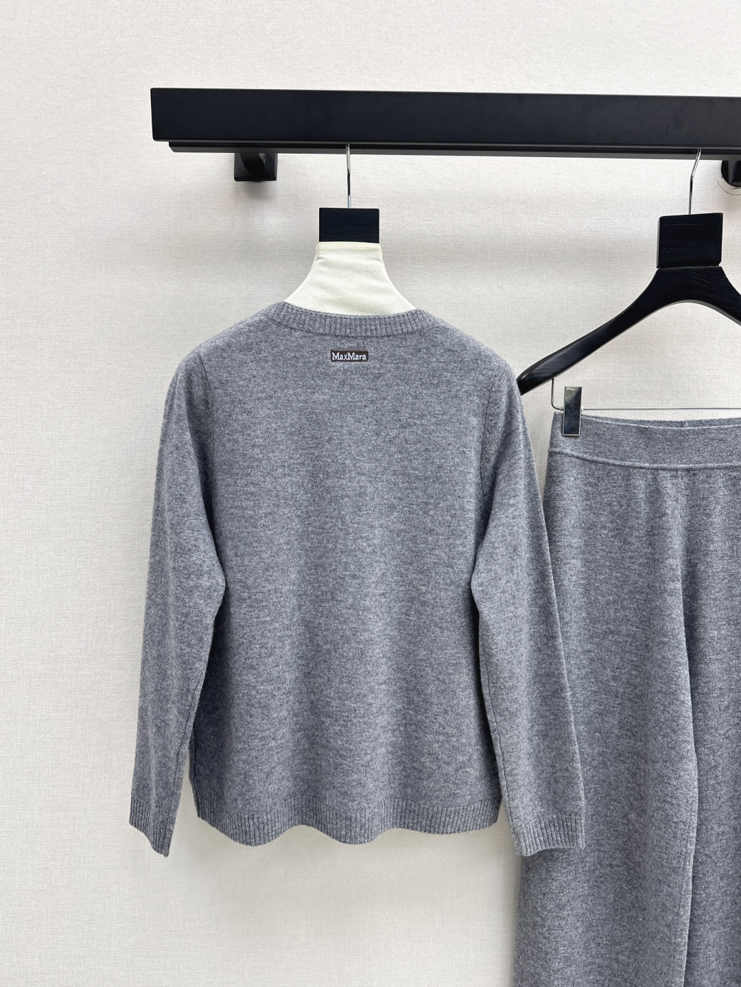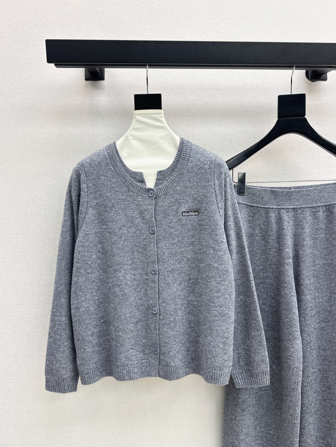 Details: Early autumn knitted suit, round-neck cardigan and straight-leg pants, wool fabric, high-end custom