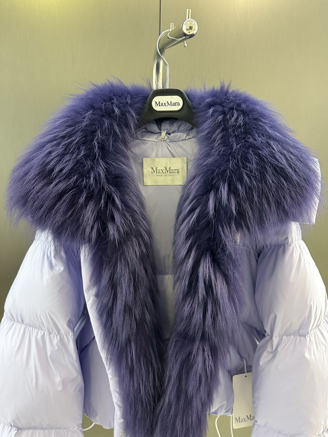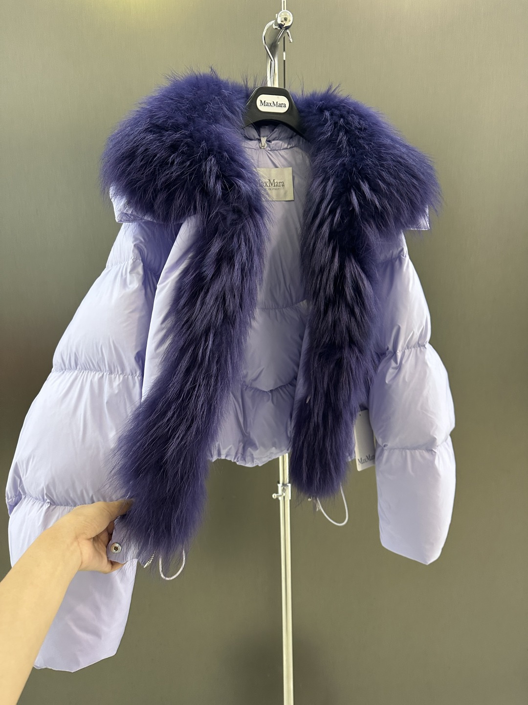Details: Autumn and winter goose down jacket with detachable white raccoon fur collar, filled with white goose down, sizes ML, advanced customization, fine workmanship