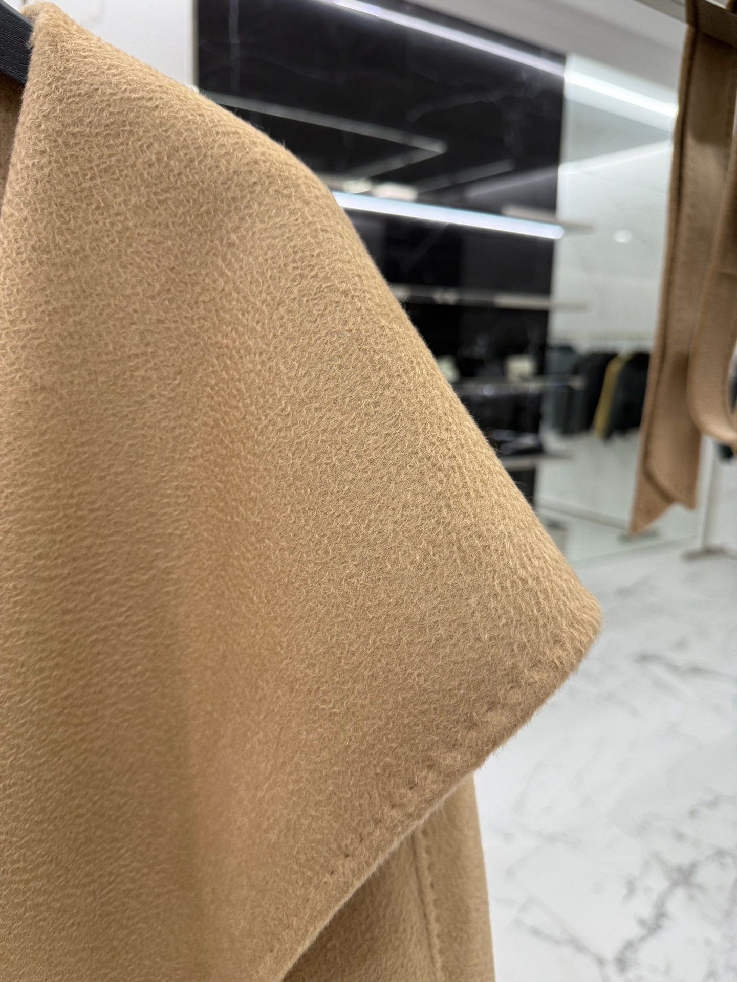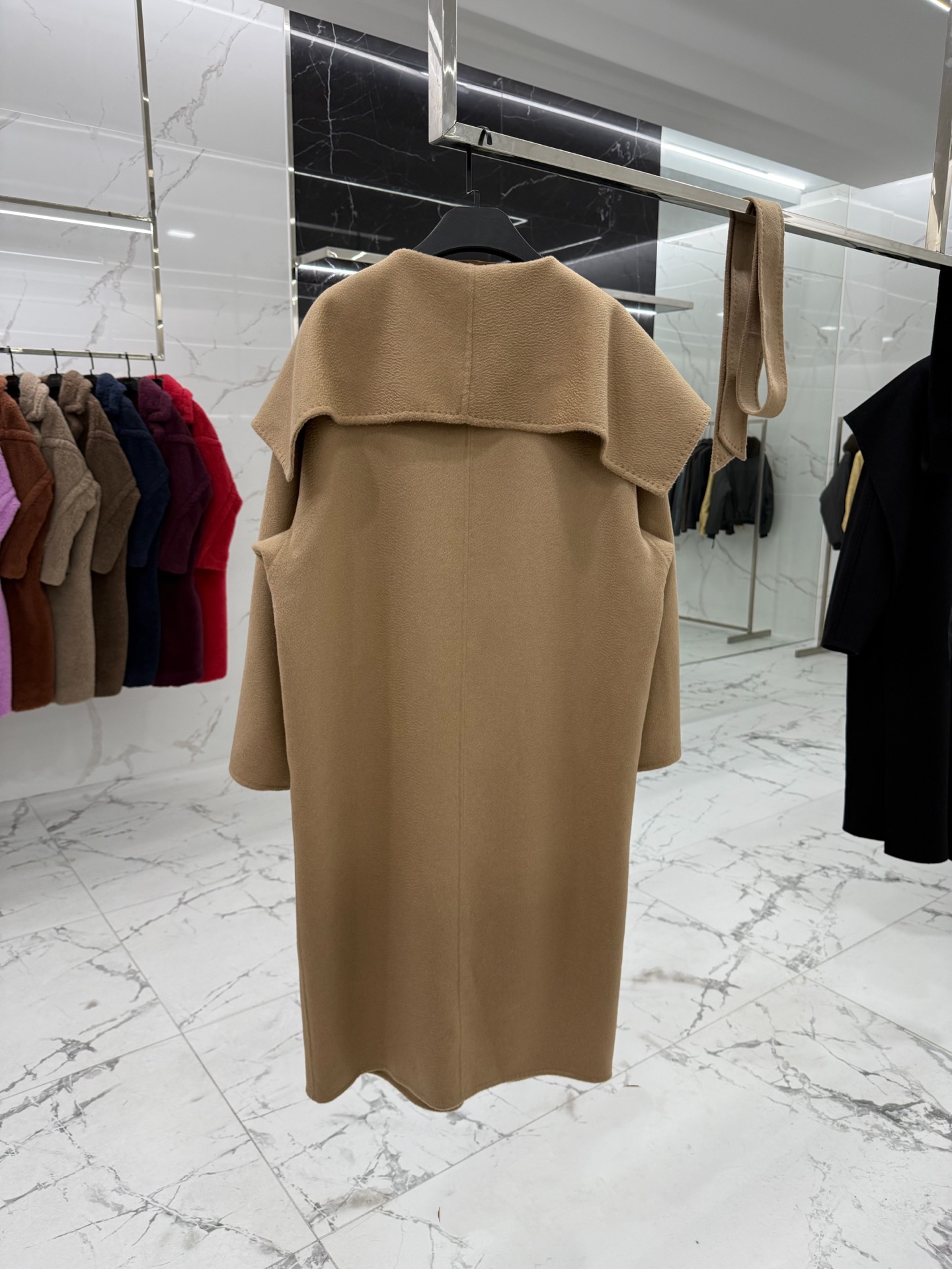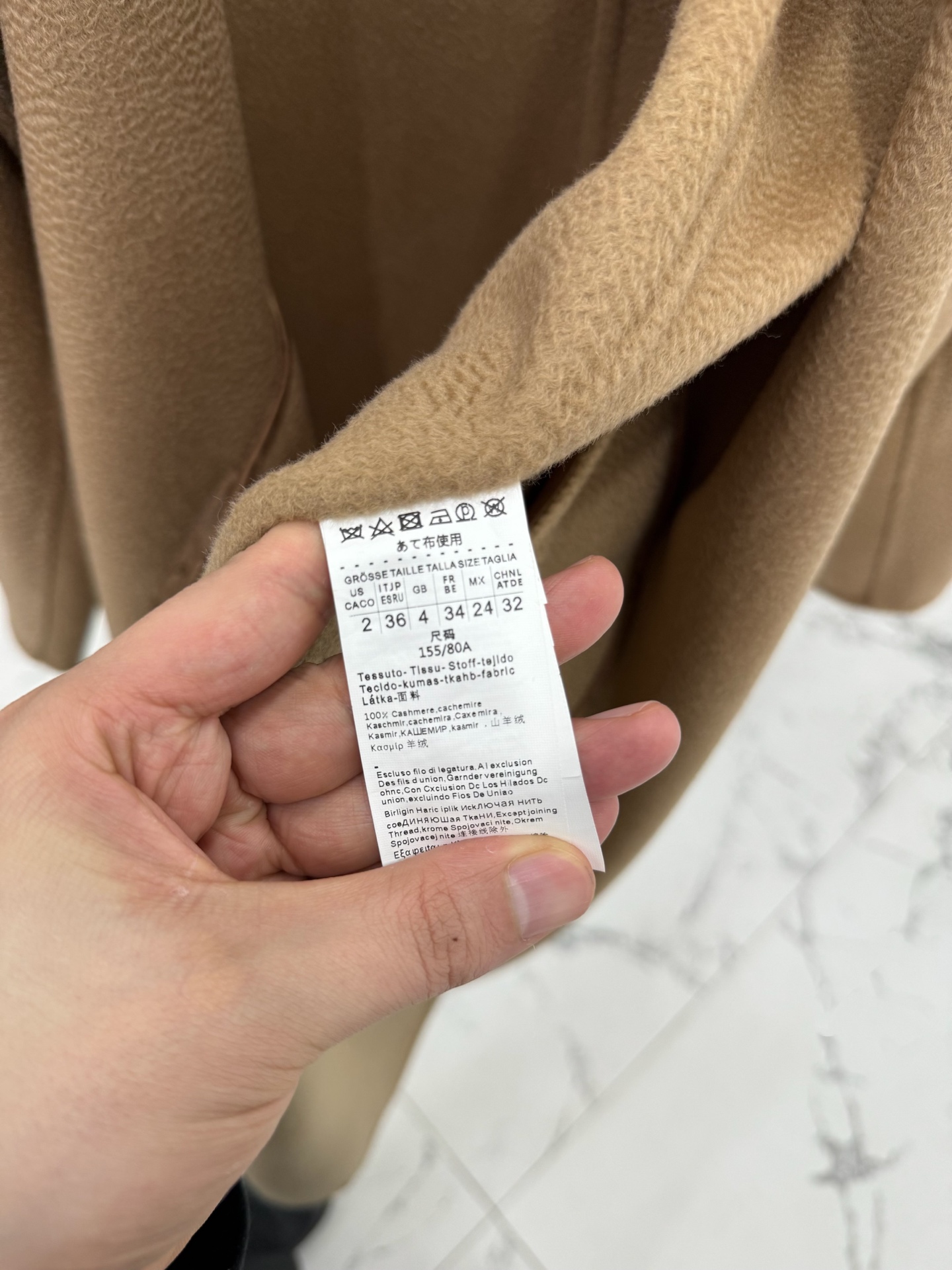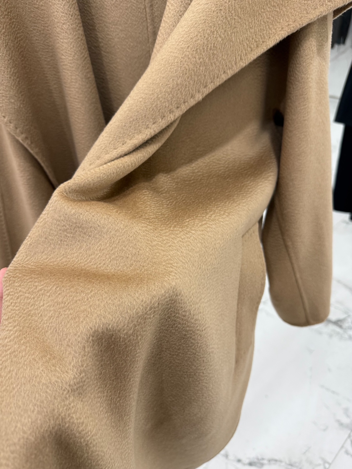 Details: Camel Cashmere Coat, Elegant & Timeless, Available in Sizes 34, 36, 38