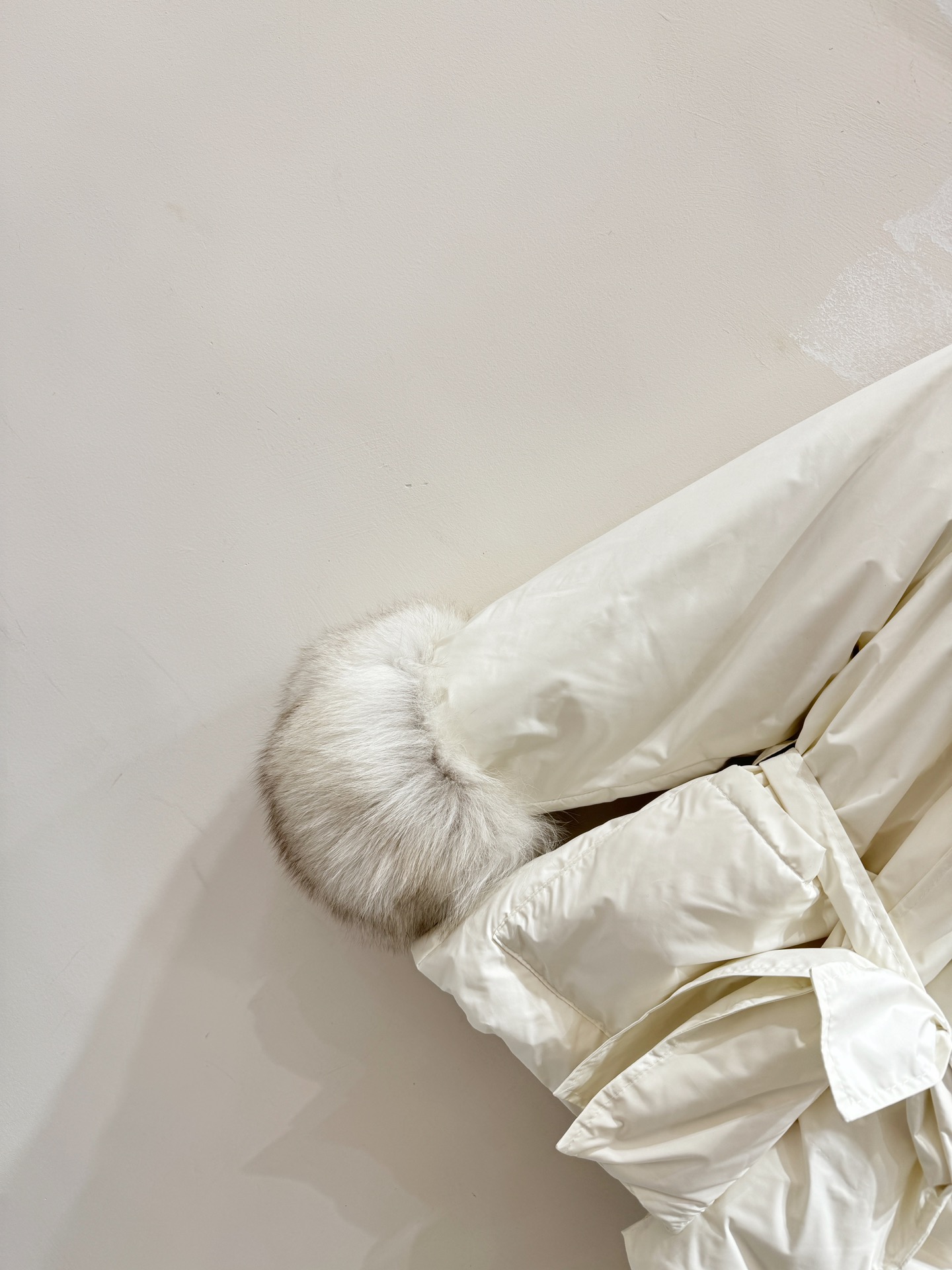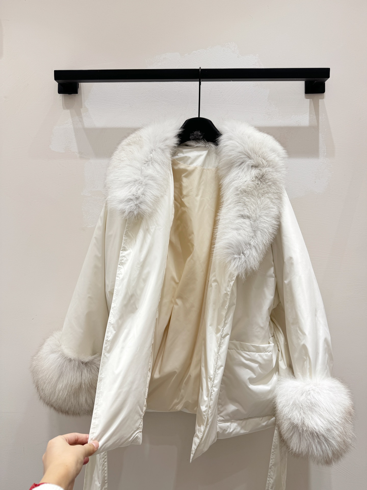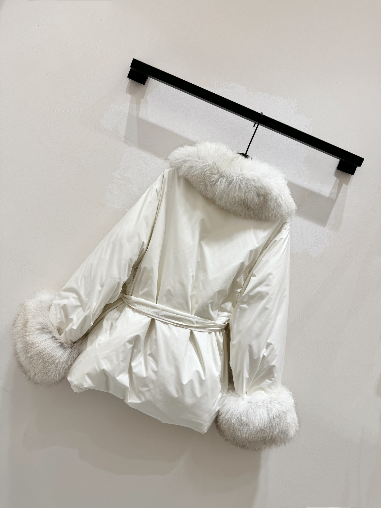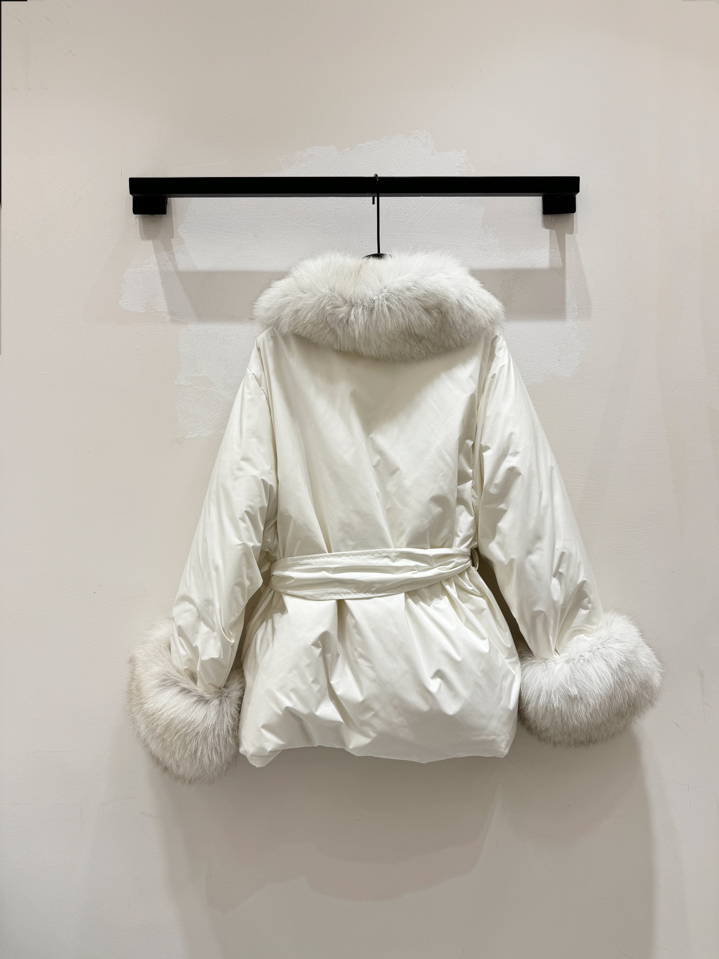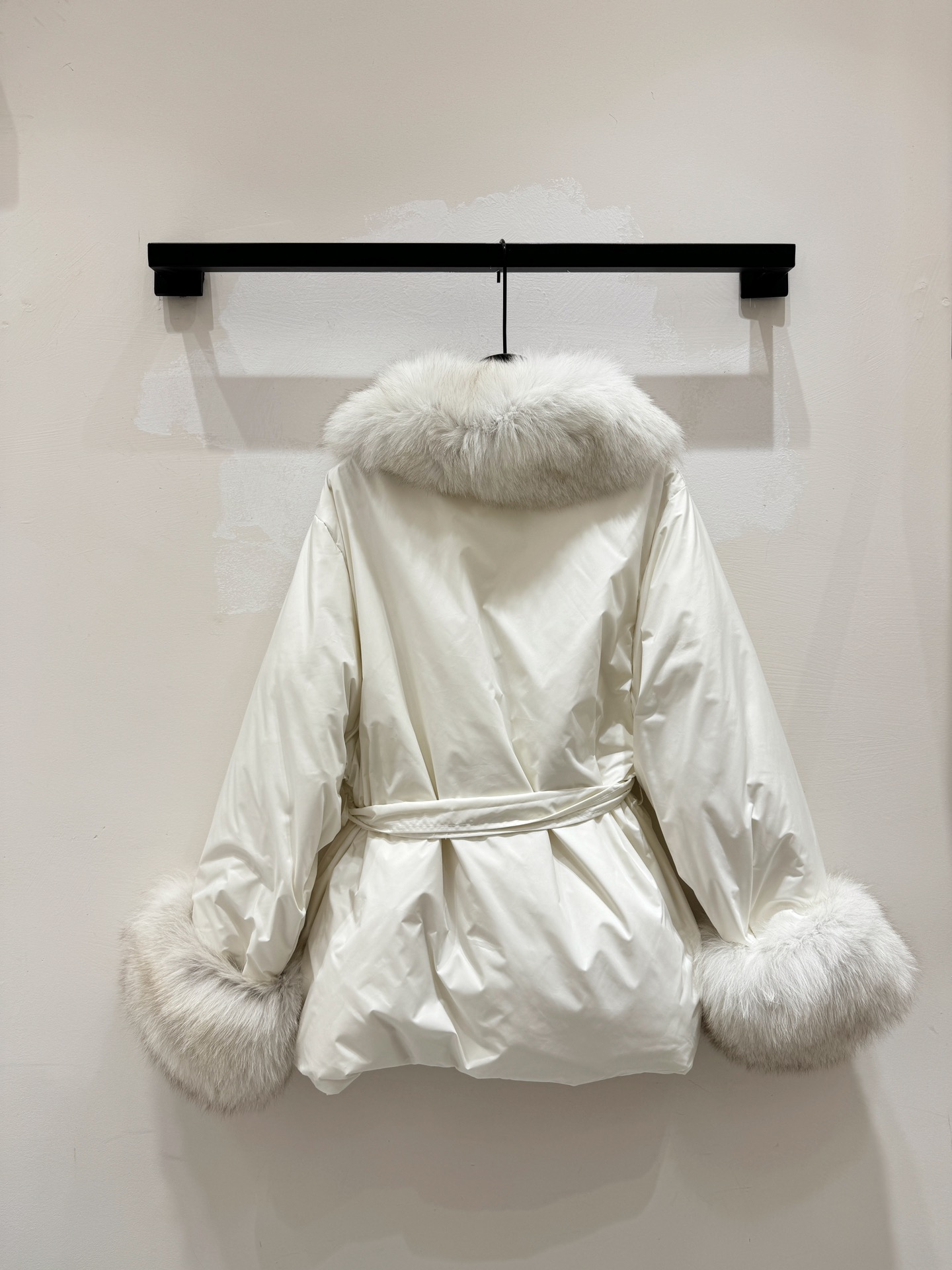 Details: Fox-fur trimmed, 90% goose down filled, waist-cinching winter coat with removable cuffs and collar, 3 colors, S - XL