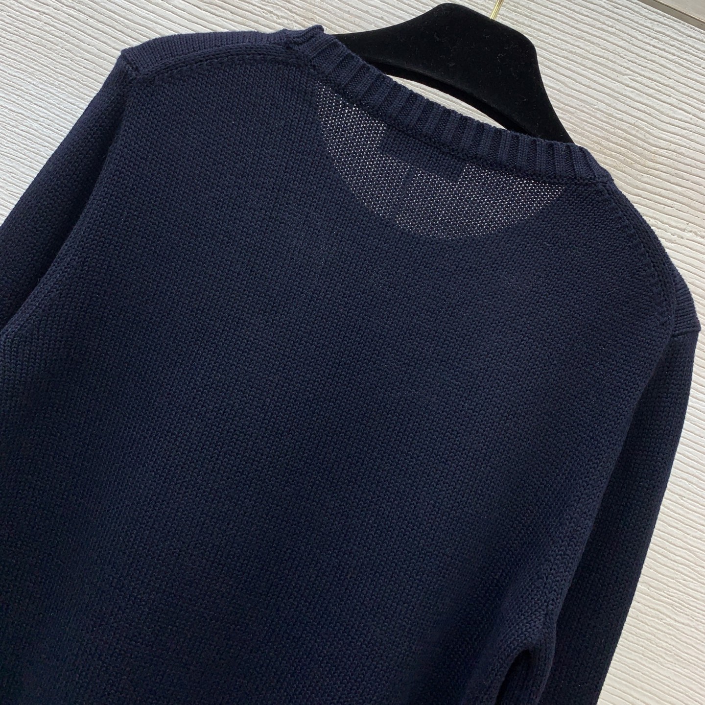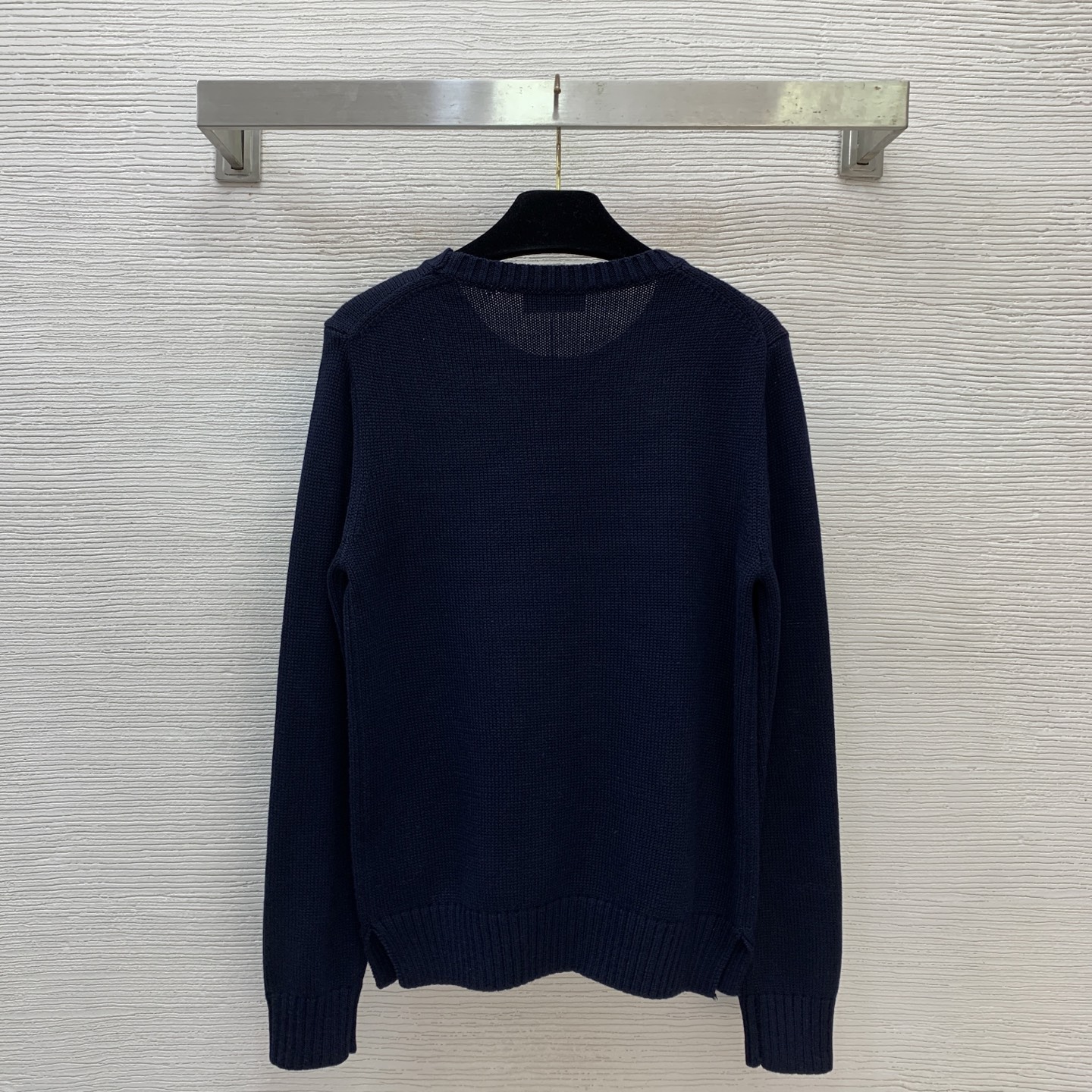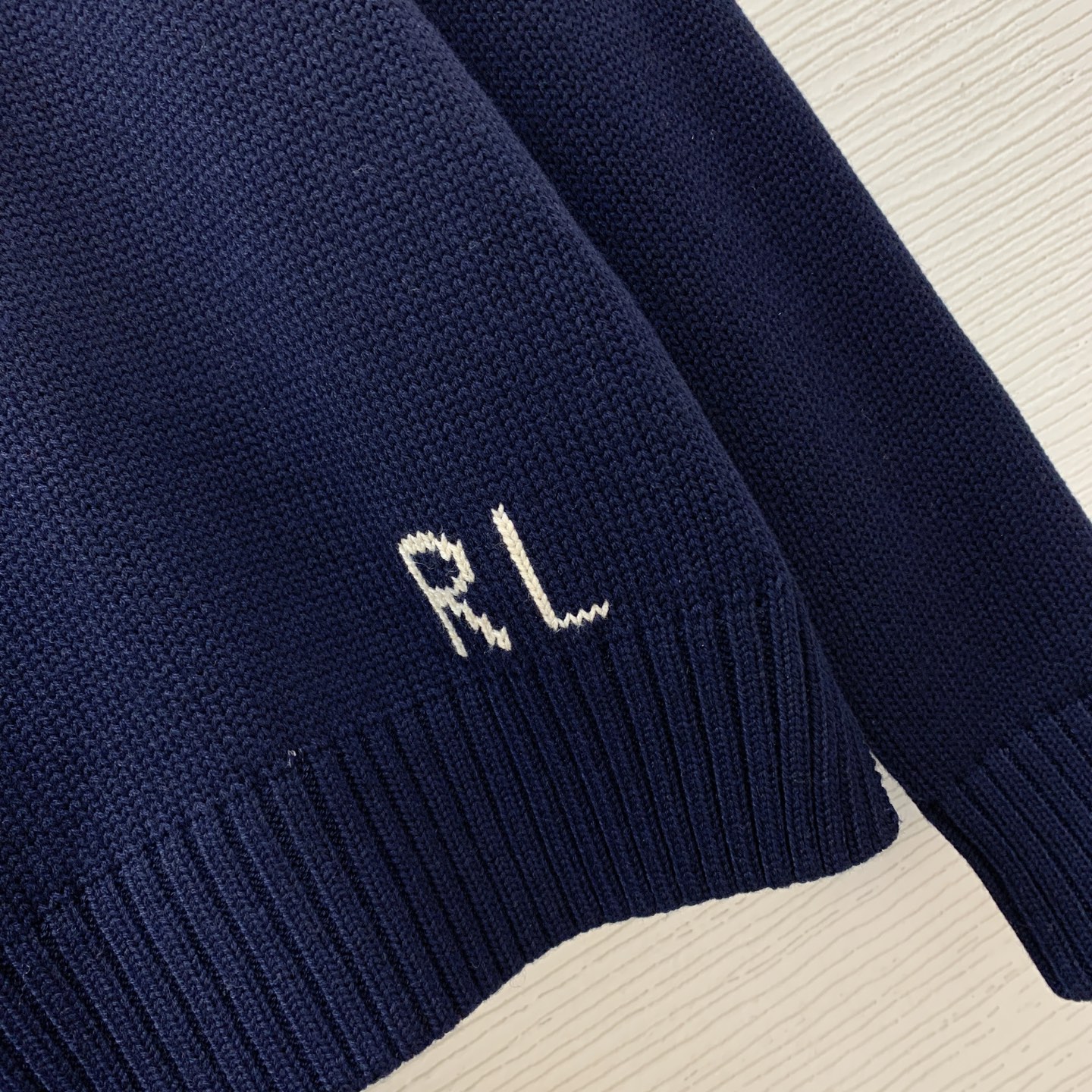 Details: Navy blue round - neck knitted top with POLO bear and RL logo. High - end custom, fine workmanship