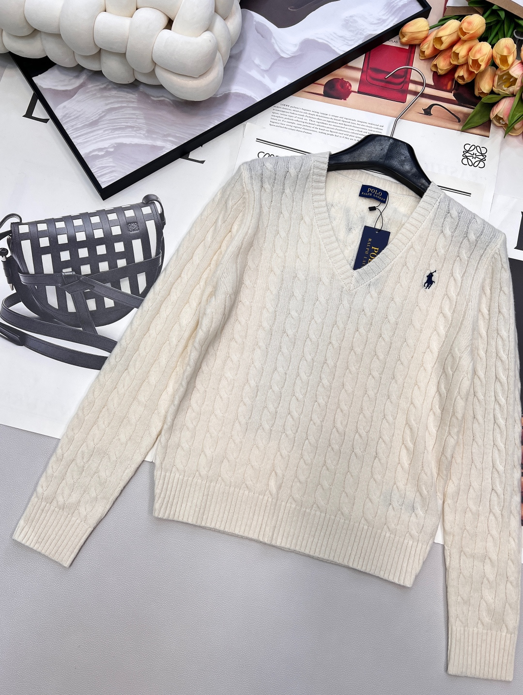 Details: Embroidered horse V-neck sweater in pure wool, soft and cozy for autumn and winter, versatile and flattering.
