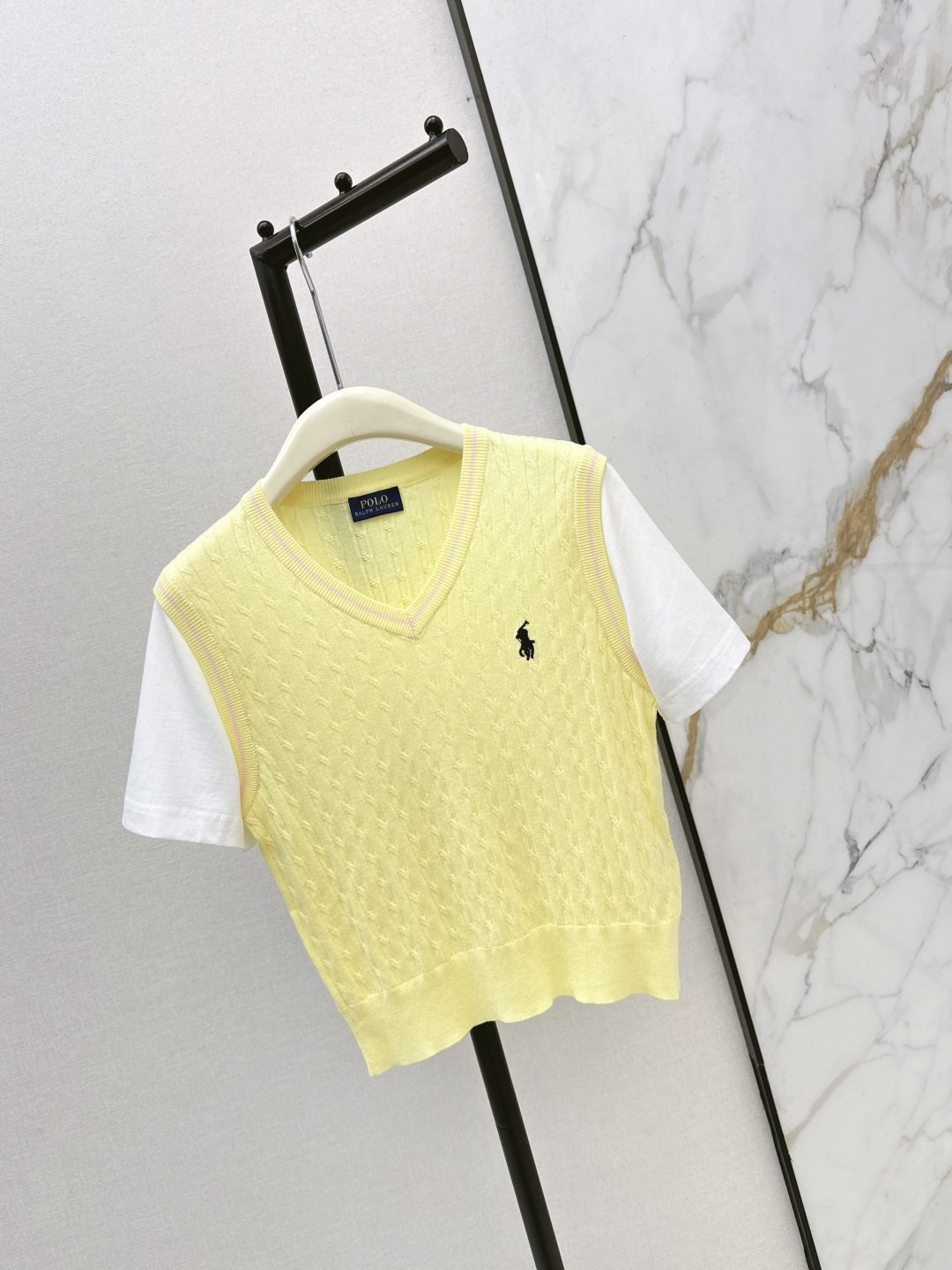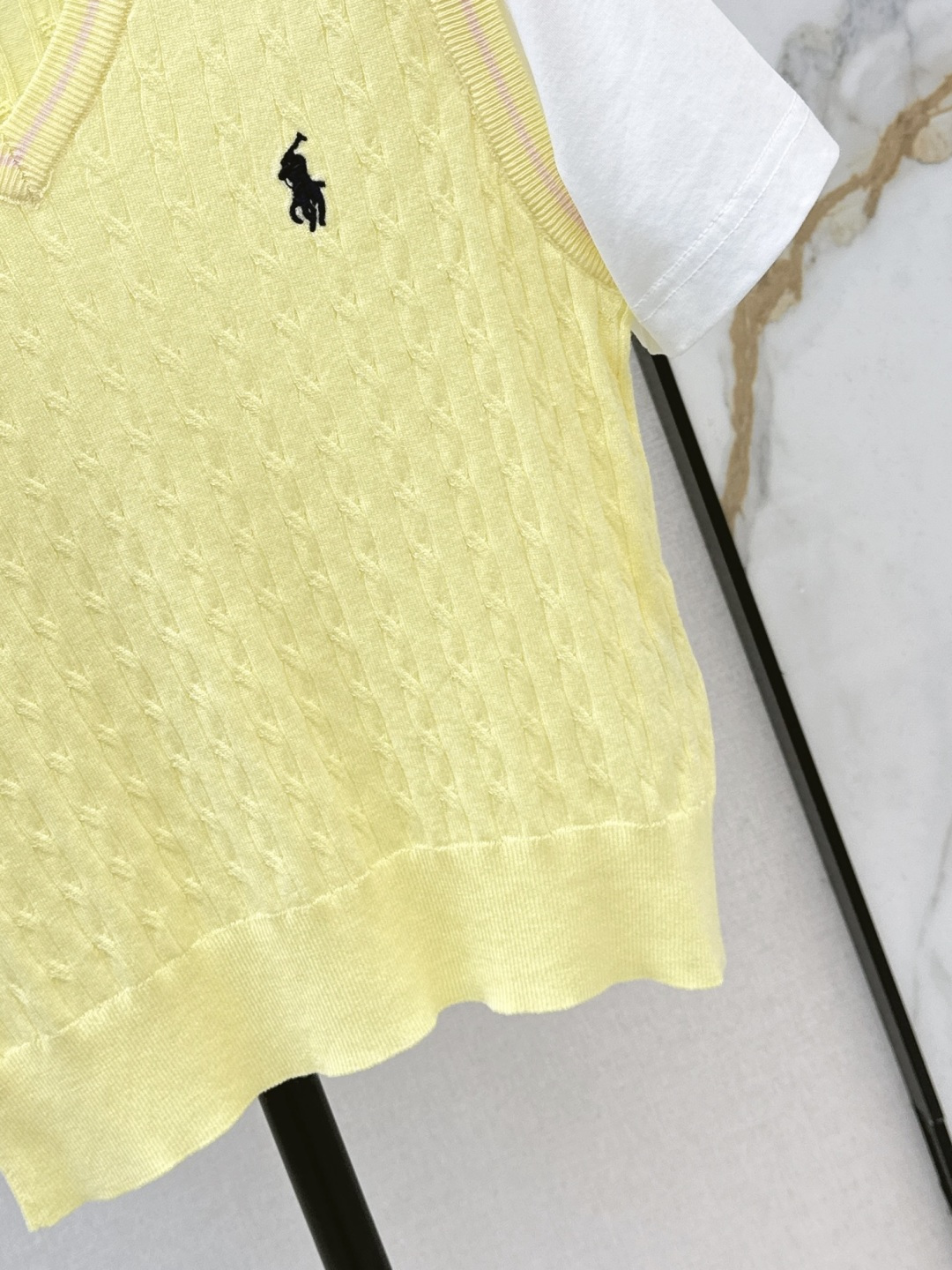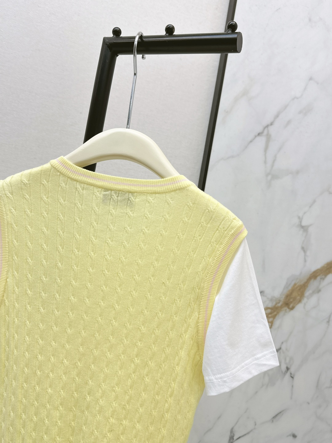 Details: Early spring cable-knit fake two-piece, charming colors, V-neck design, fine craftsmanship, breathable for summer, three color choices.