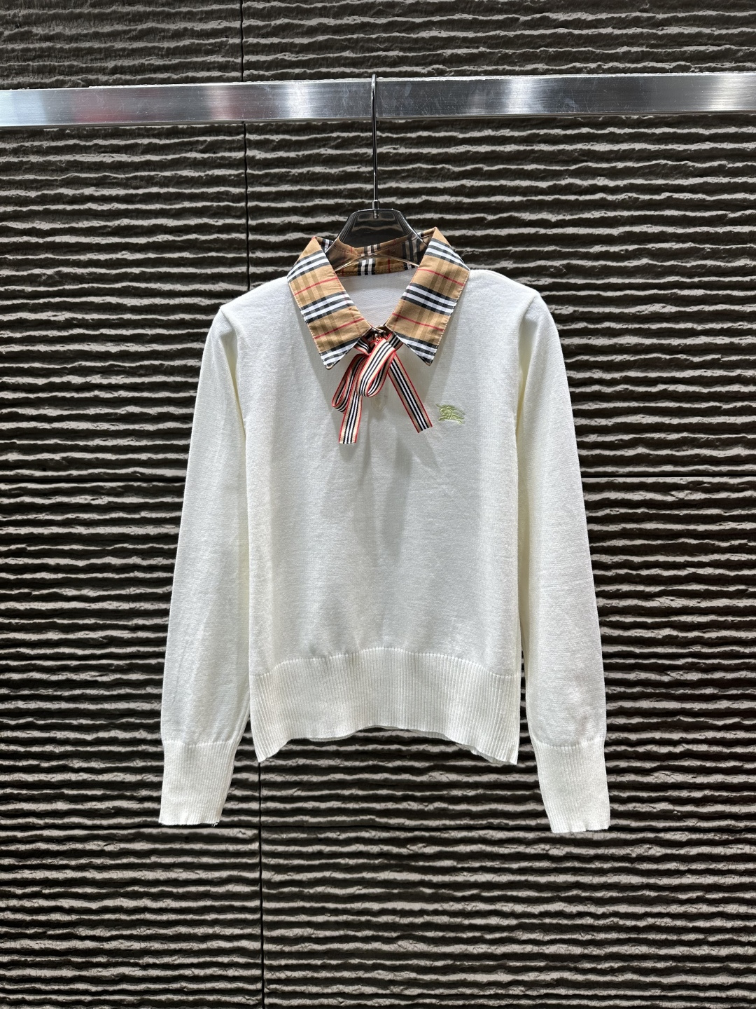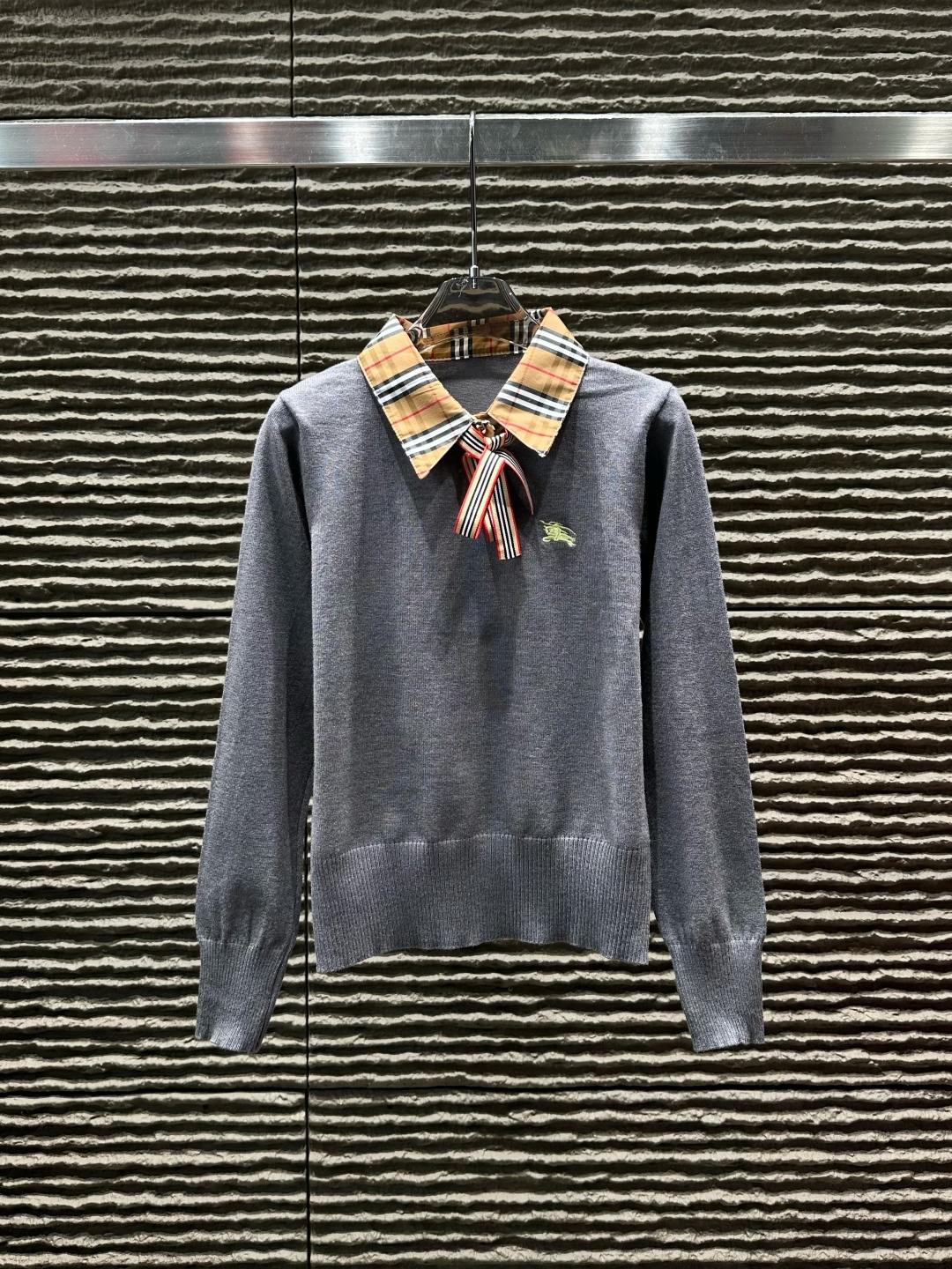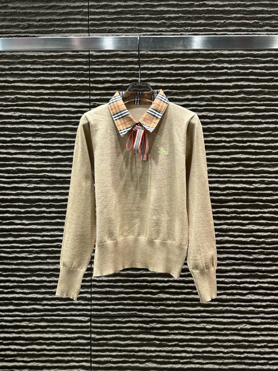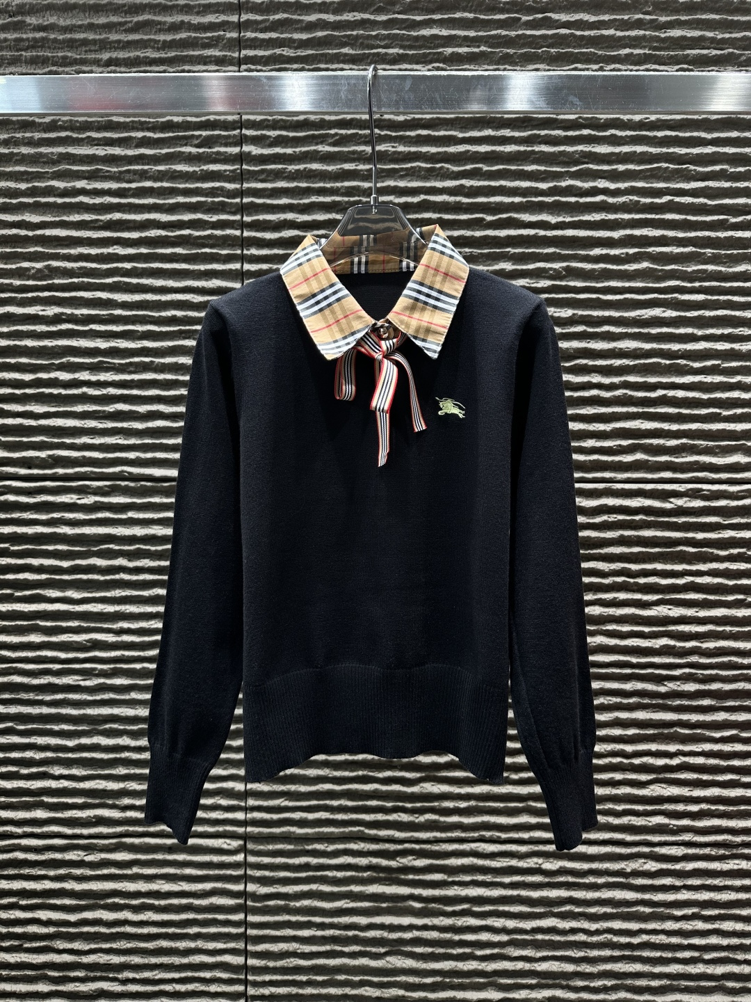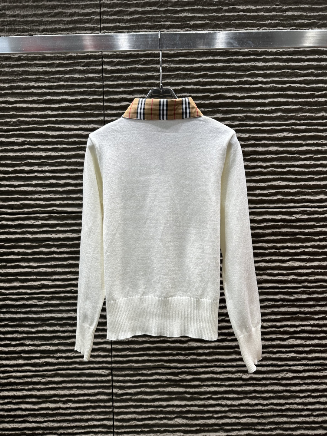 Details: Collar Spliced Fake Two-piece Knitted Long-sleeved Top, High-end Customized