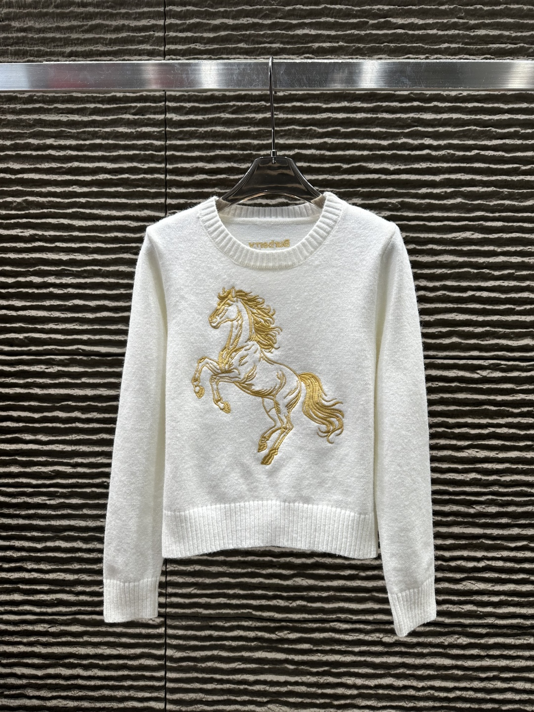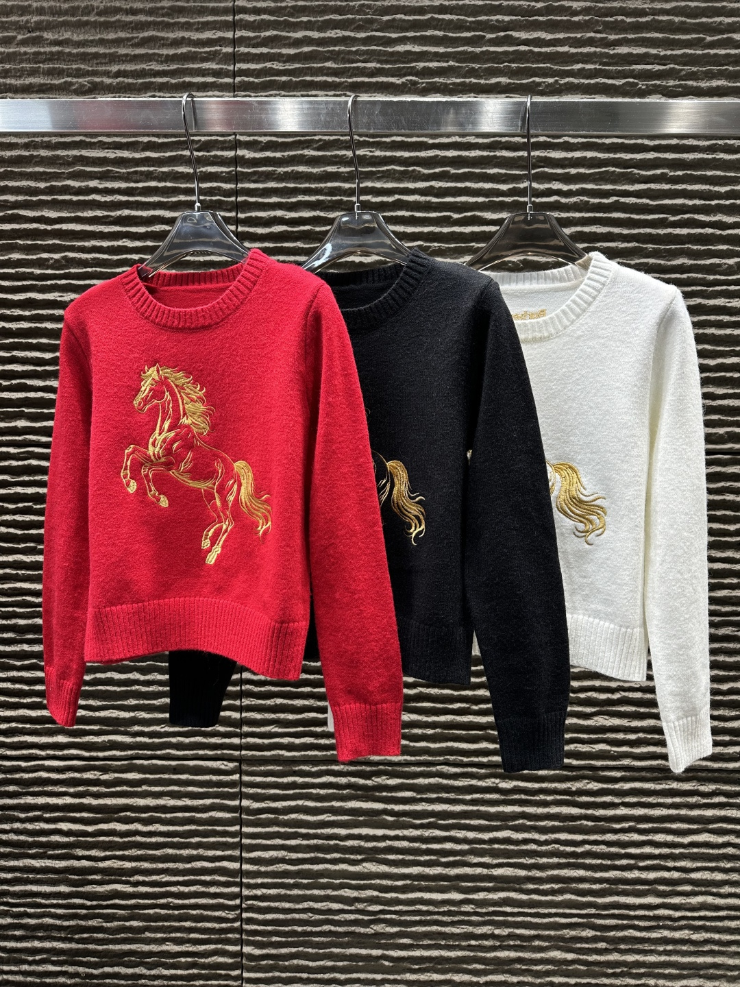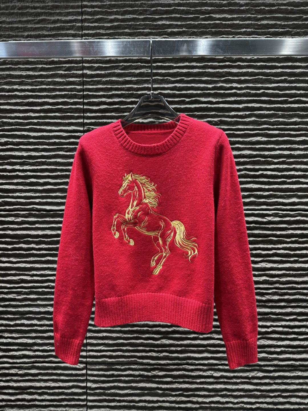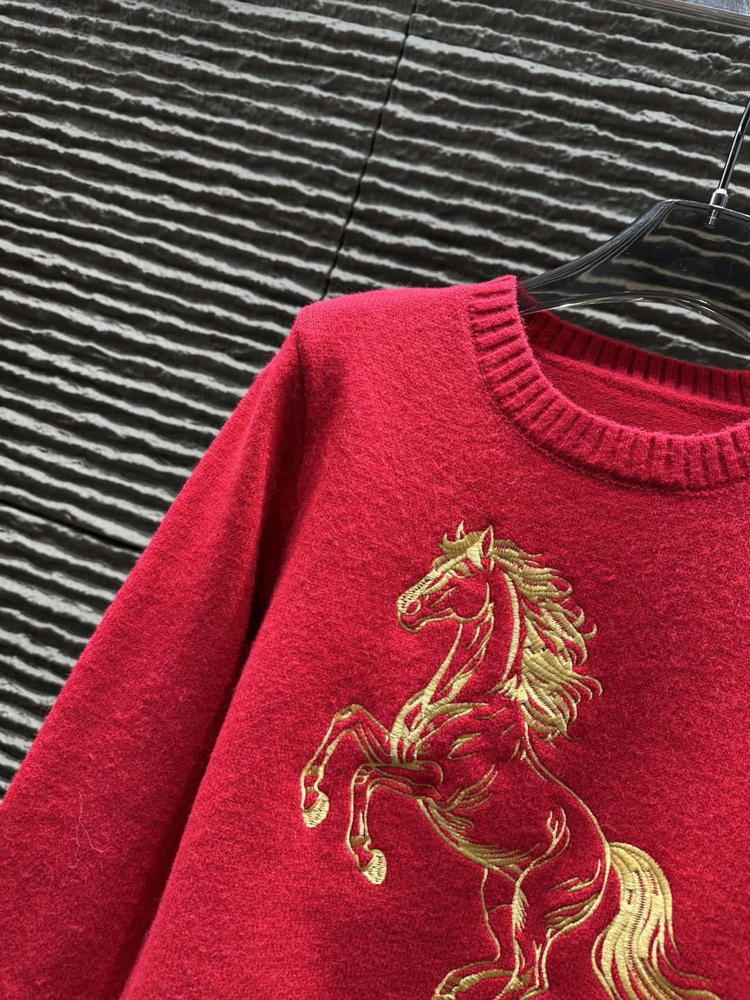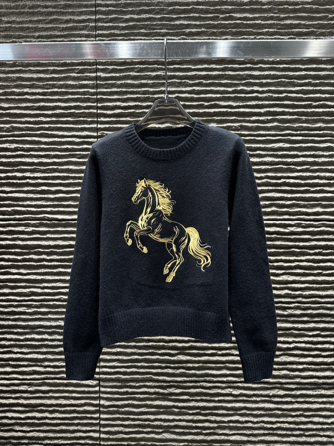 Details: Heavy - work embroidered horse pullover sweater, high - end customization