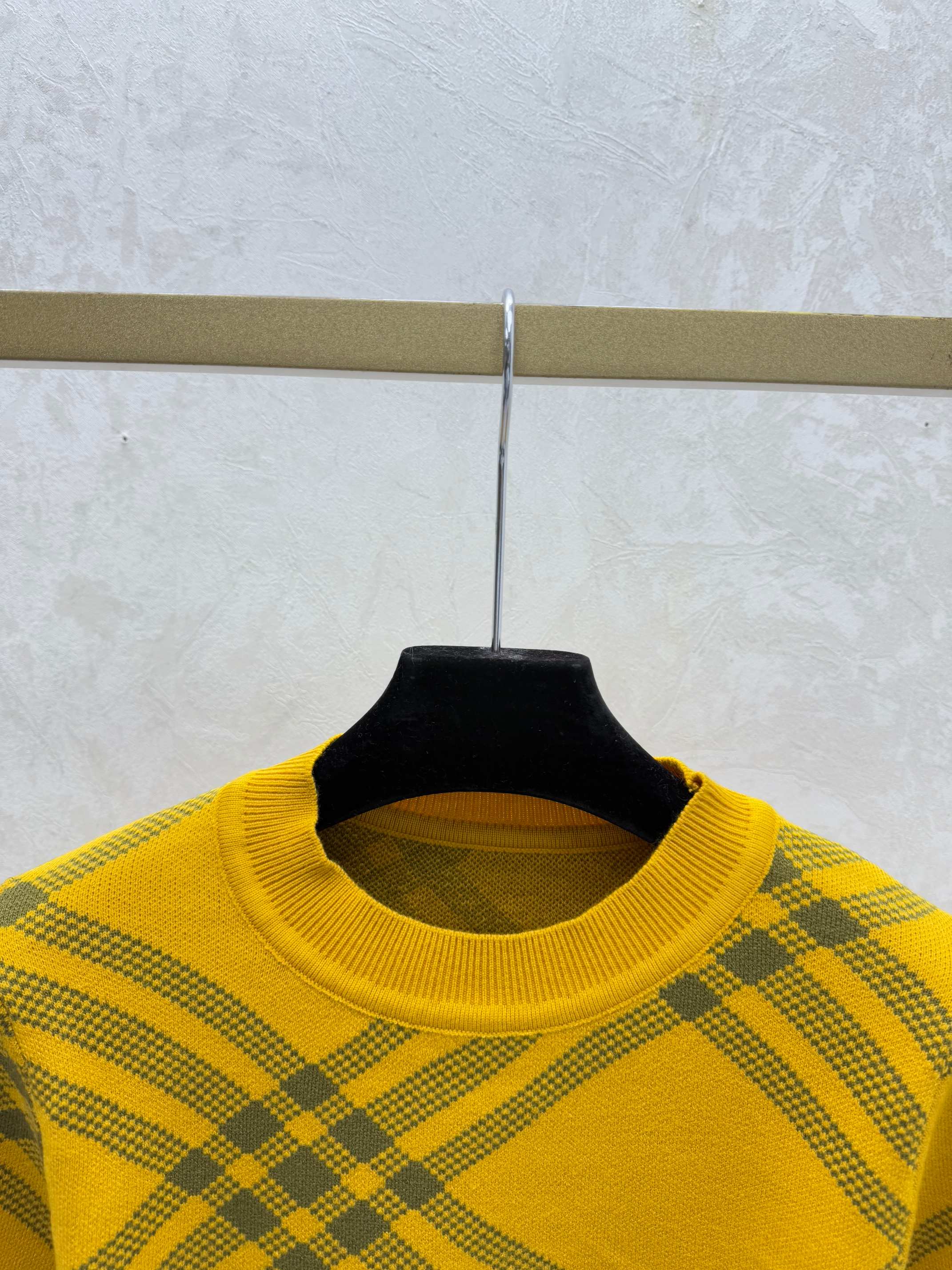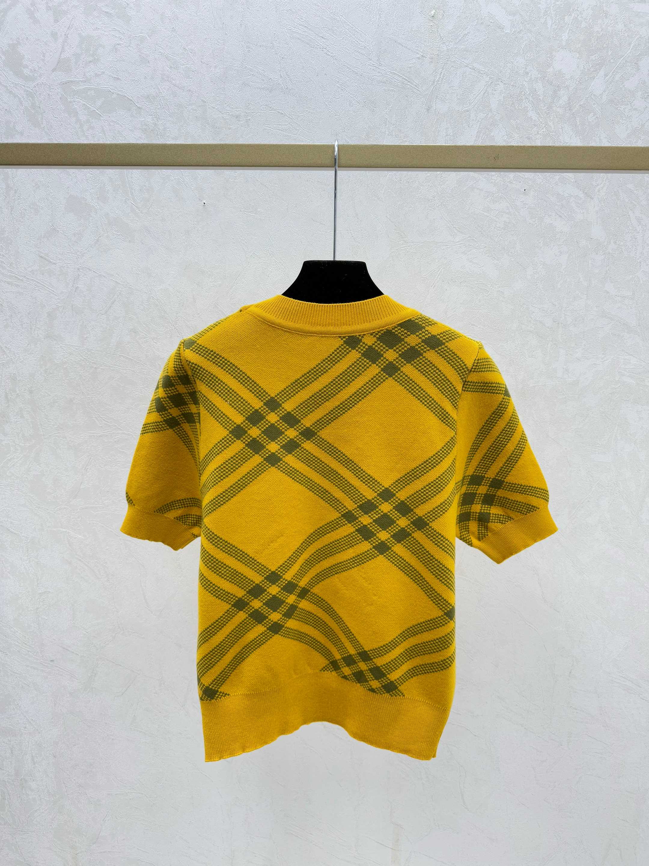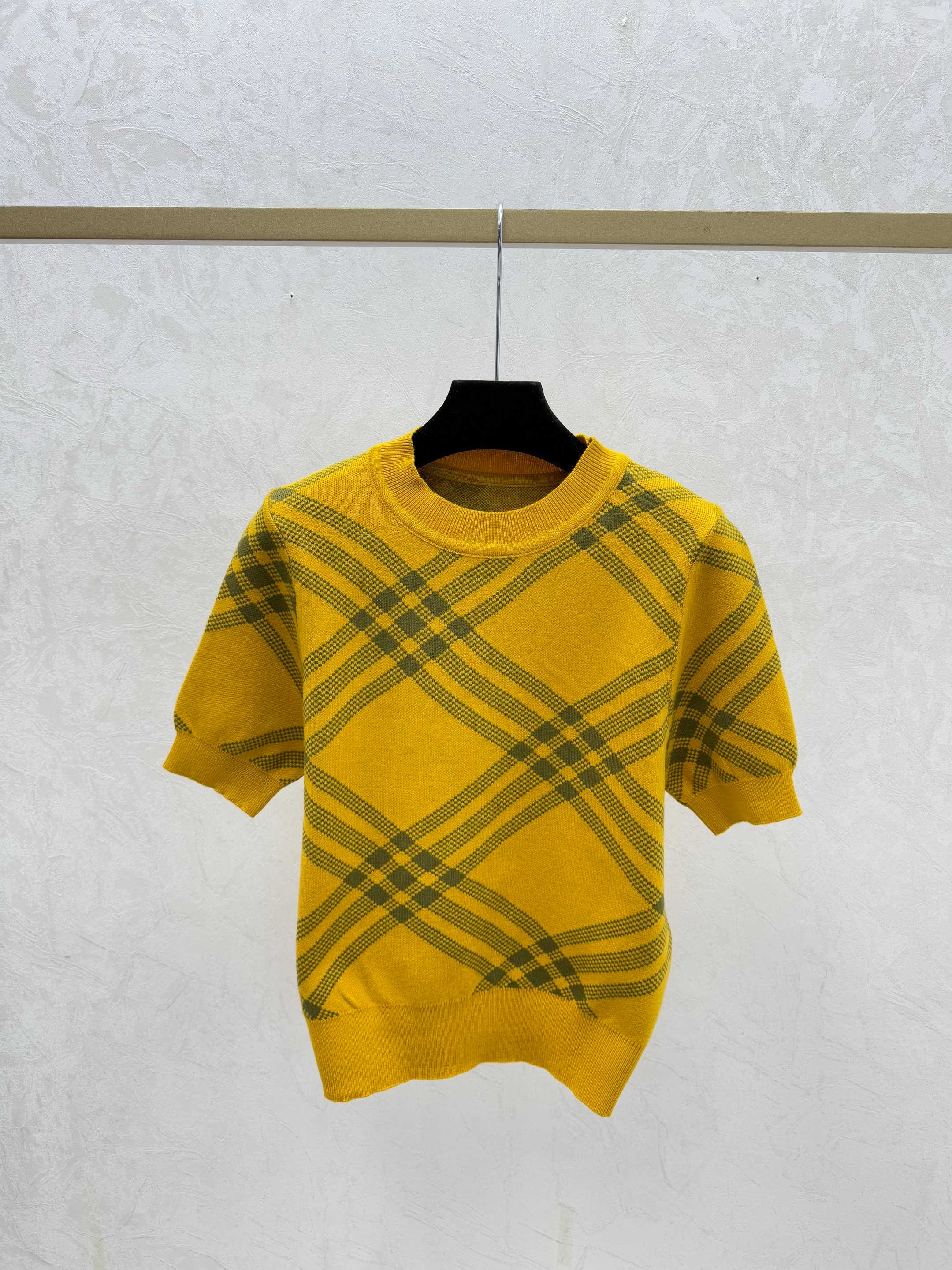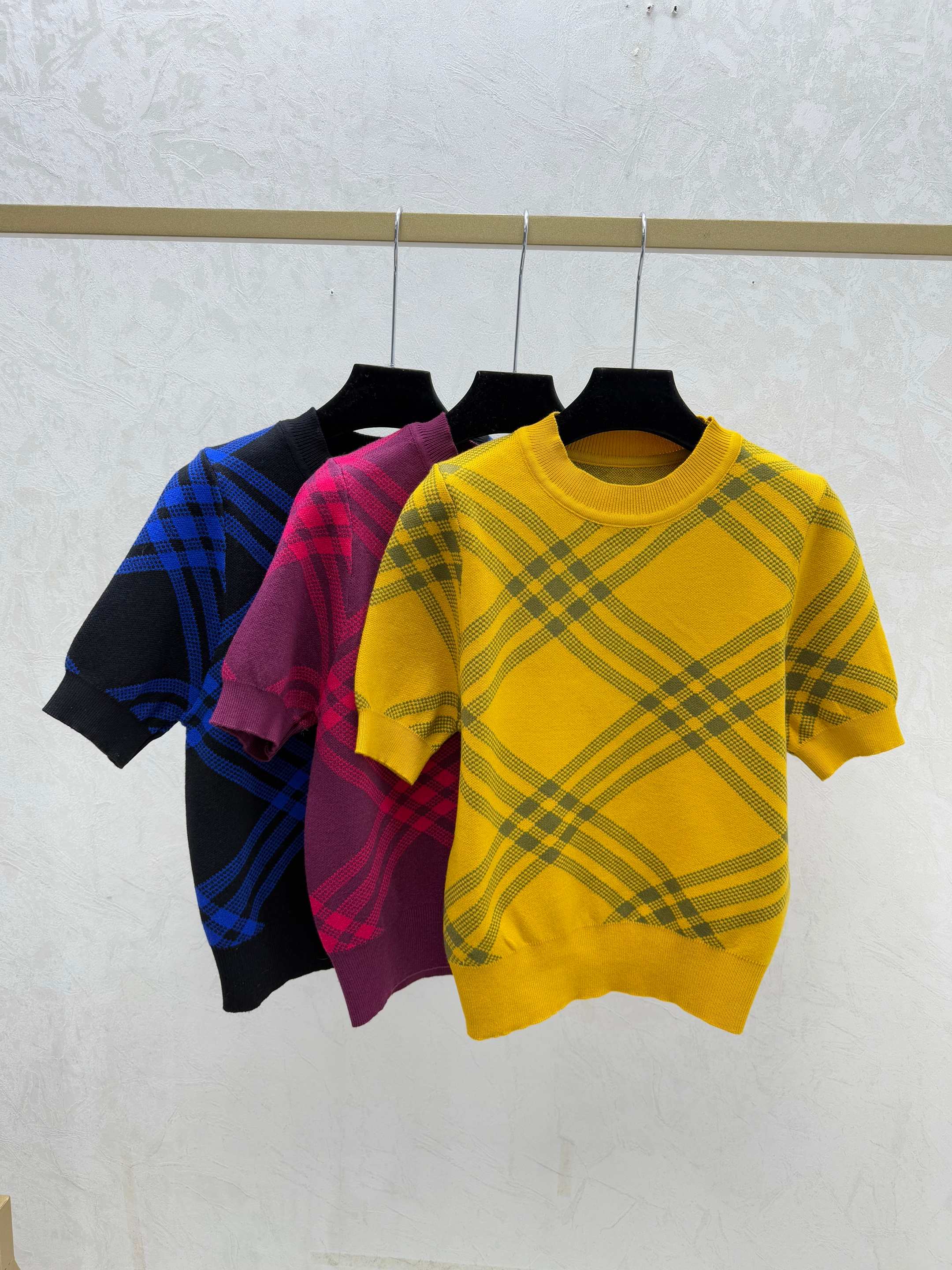 Details: Early spring color-blocked plaid striped round-neck knitted short-sleeve, in colors yellow, red, black, available in sizes 36, 38, 40