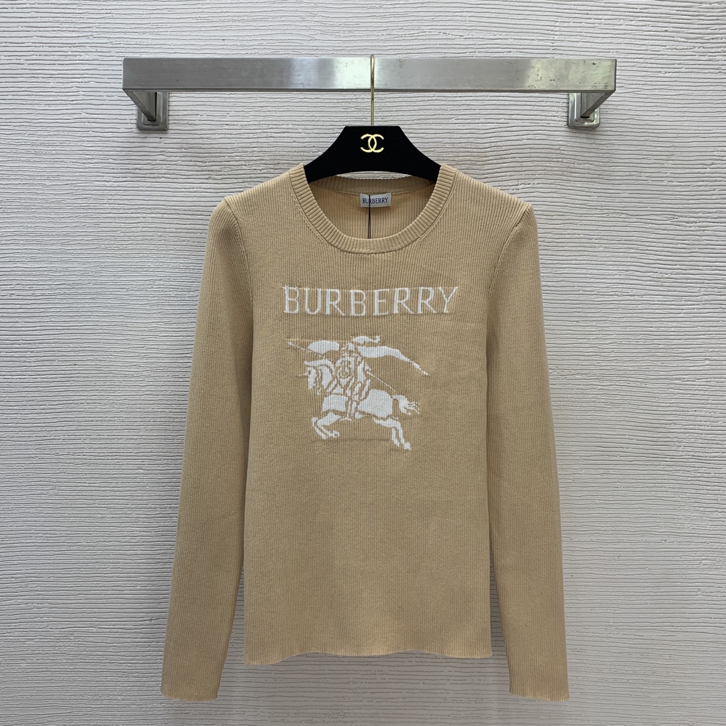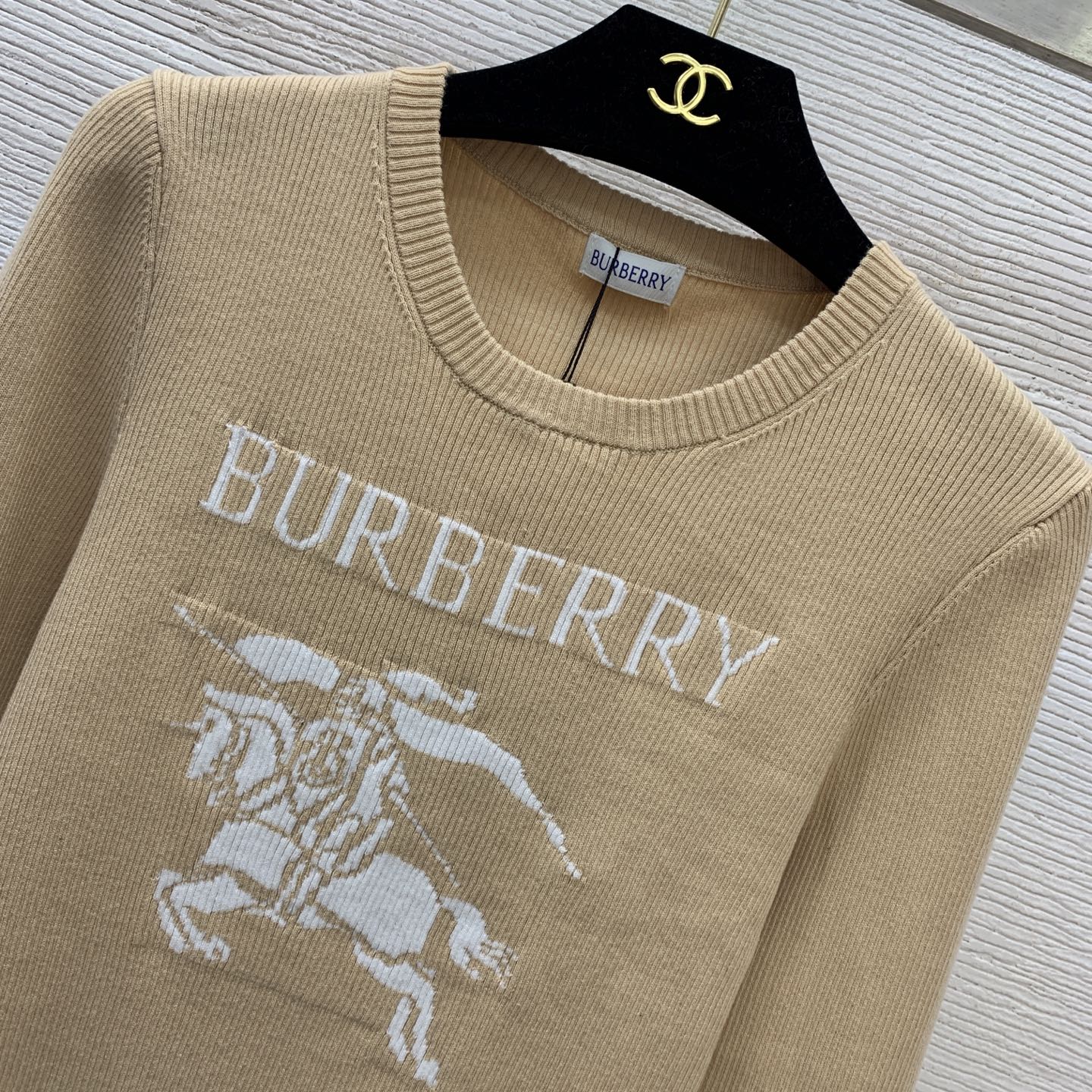 Details: New slim - fit round - neck knitted top with knight logo, in khaki & black, size M. High - end custom, fine workmanship